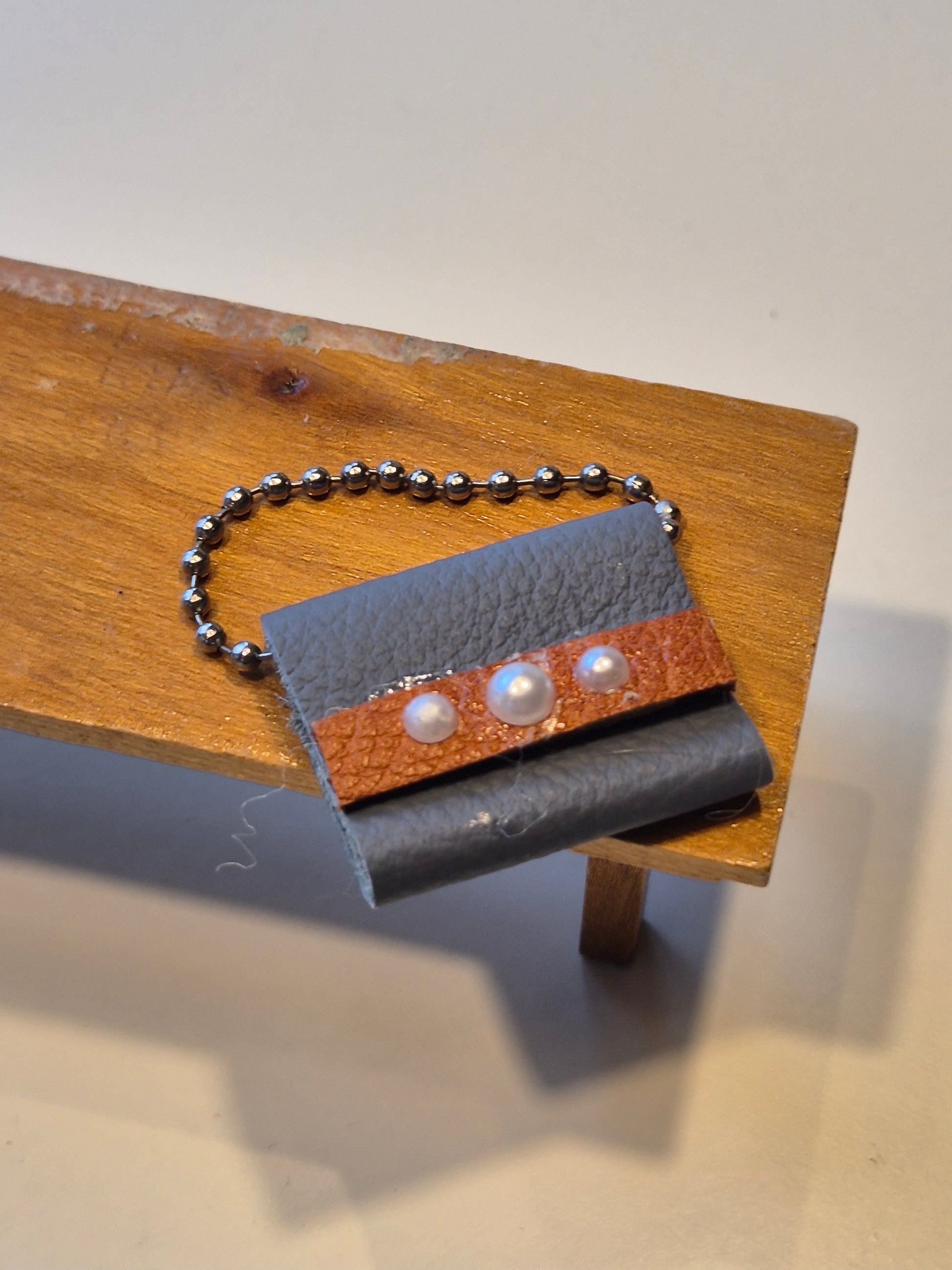 Taske af blå læder eller imiteret ruskind. Den er hjemmelavet af ukendt designer og udmærket stand, pæn.