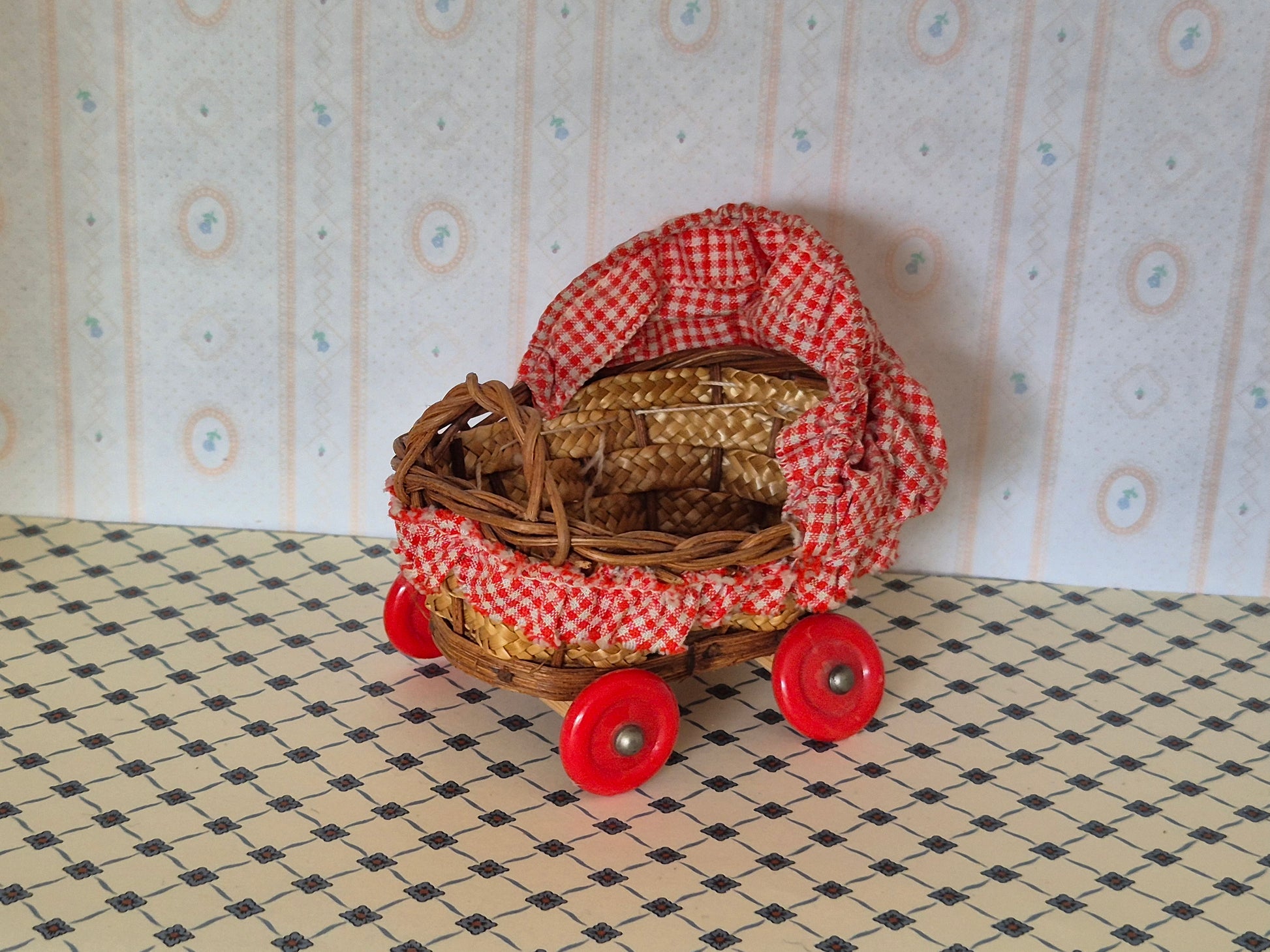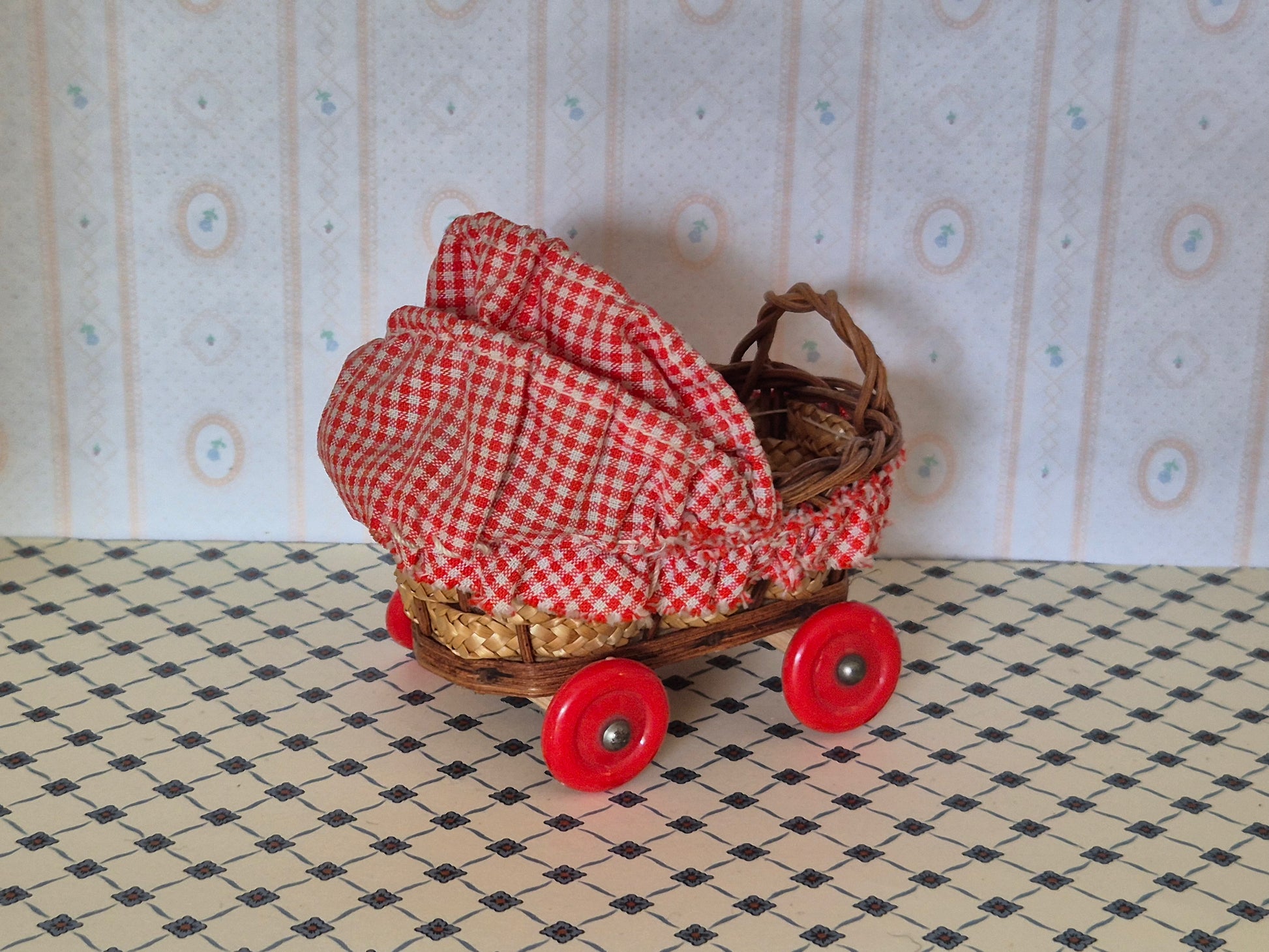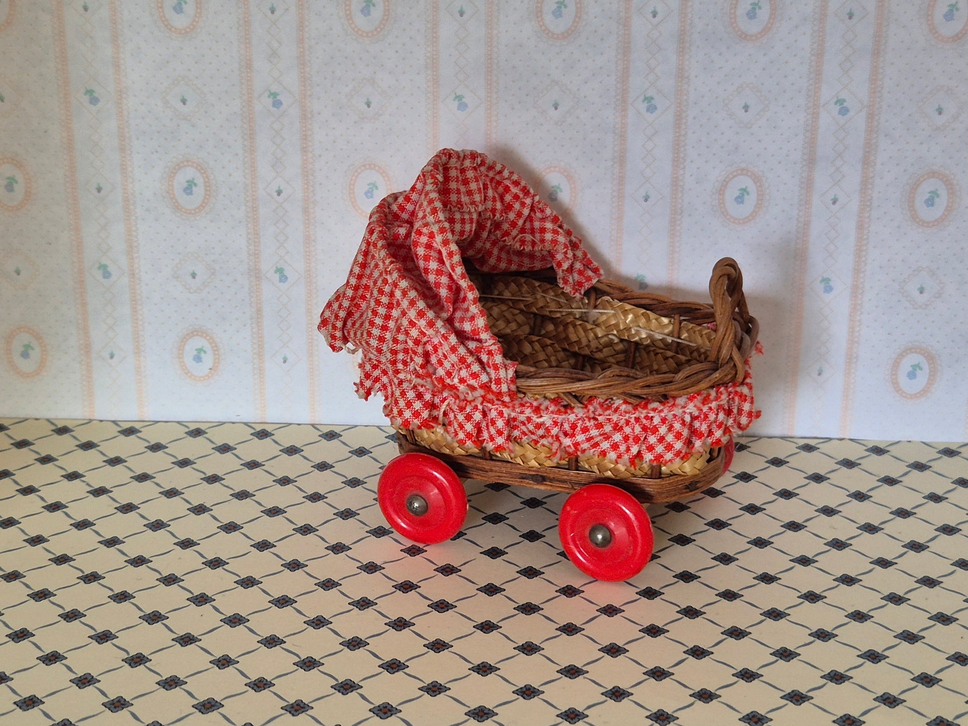 Fin vintage dukkevogn til børneværelset i dukkehuset 1:12. Kunne ligne en Caco dukkevogn.