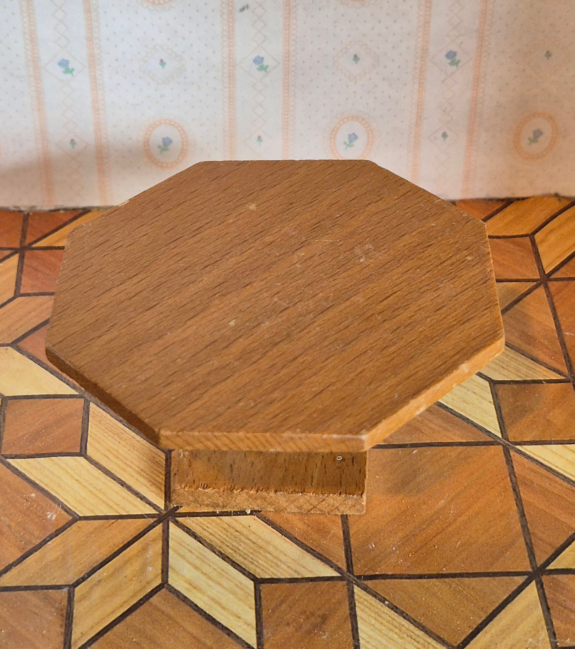 Retro dukkehus bord 1:16. Det er pænt, af træ og ældre med patina.