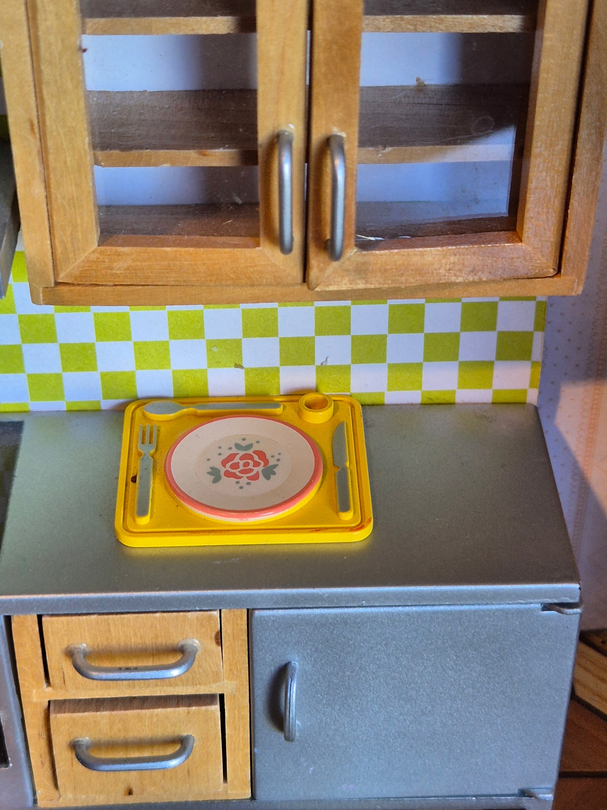 Plastik dækkeserviet med form efter tallerken, bestik og lignende. Pæn. 1:16.