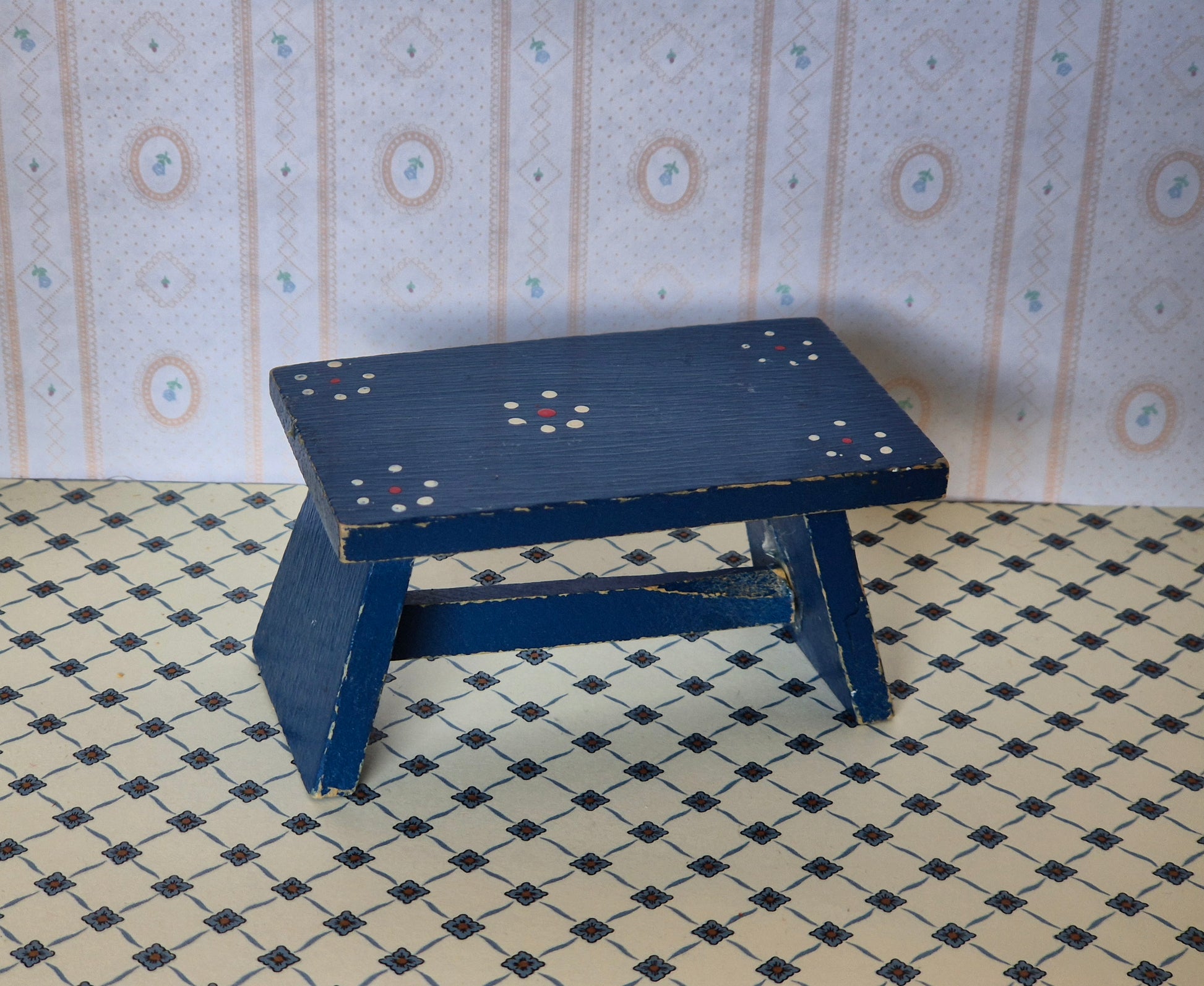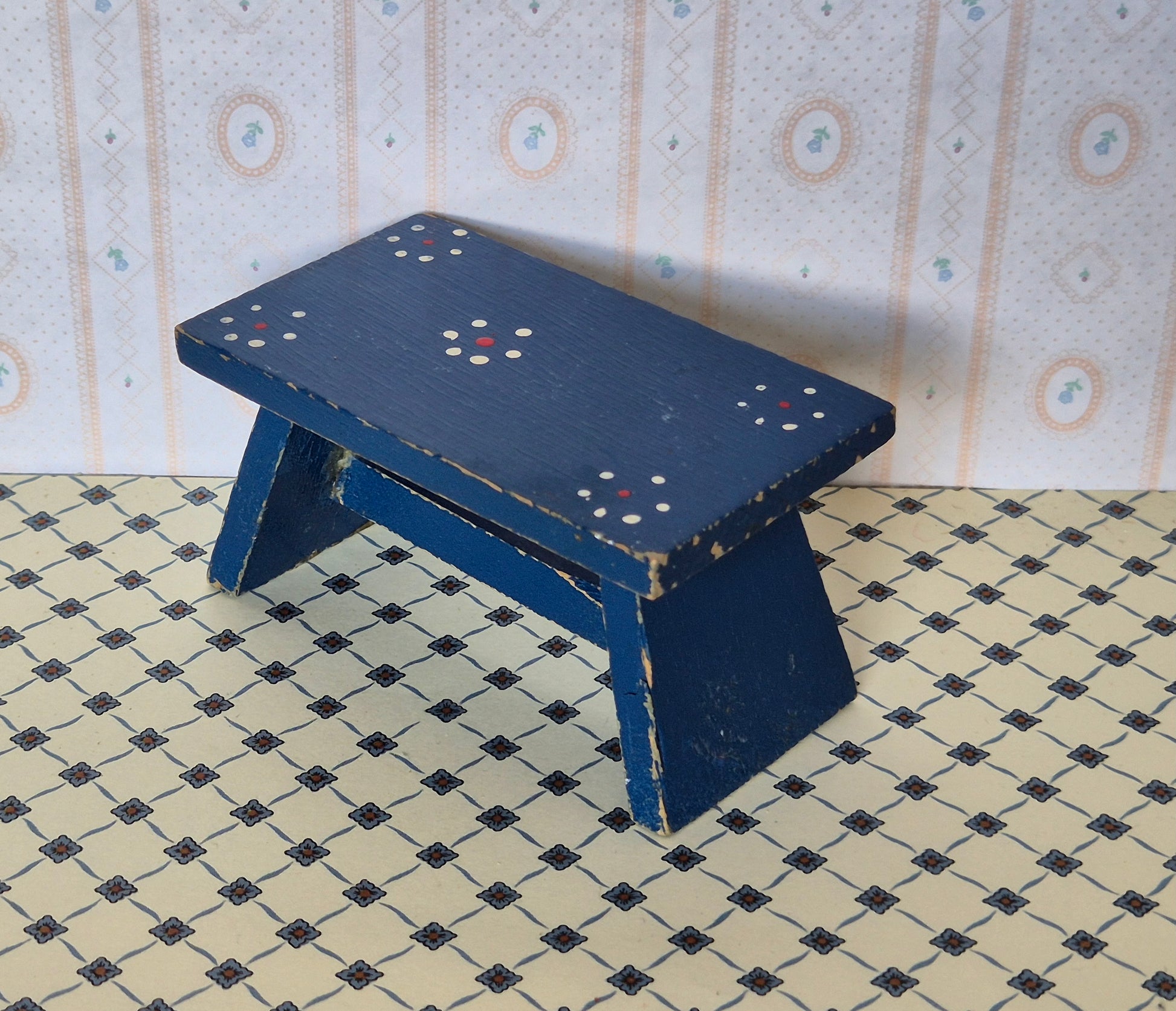 Mørkeblåt bord med mønster, vintage fra 1960erne. Det er Dora Kuhn. Str 1:16.