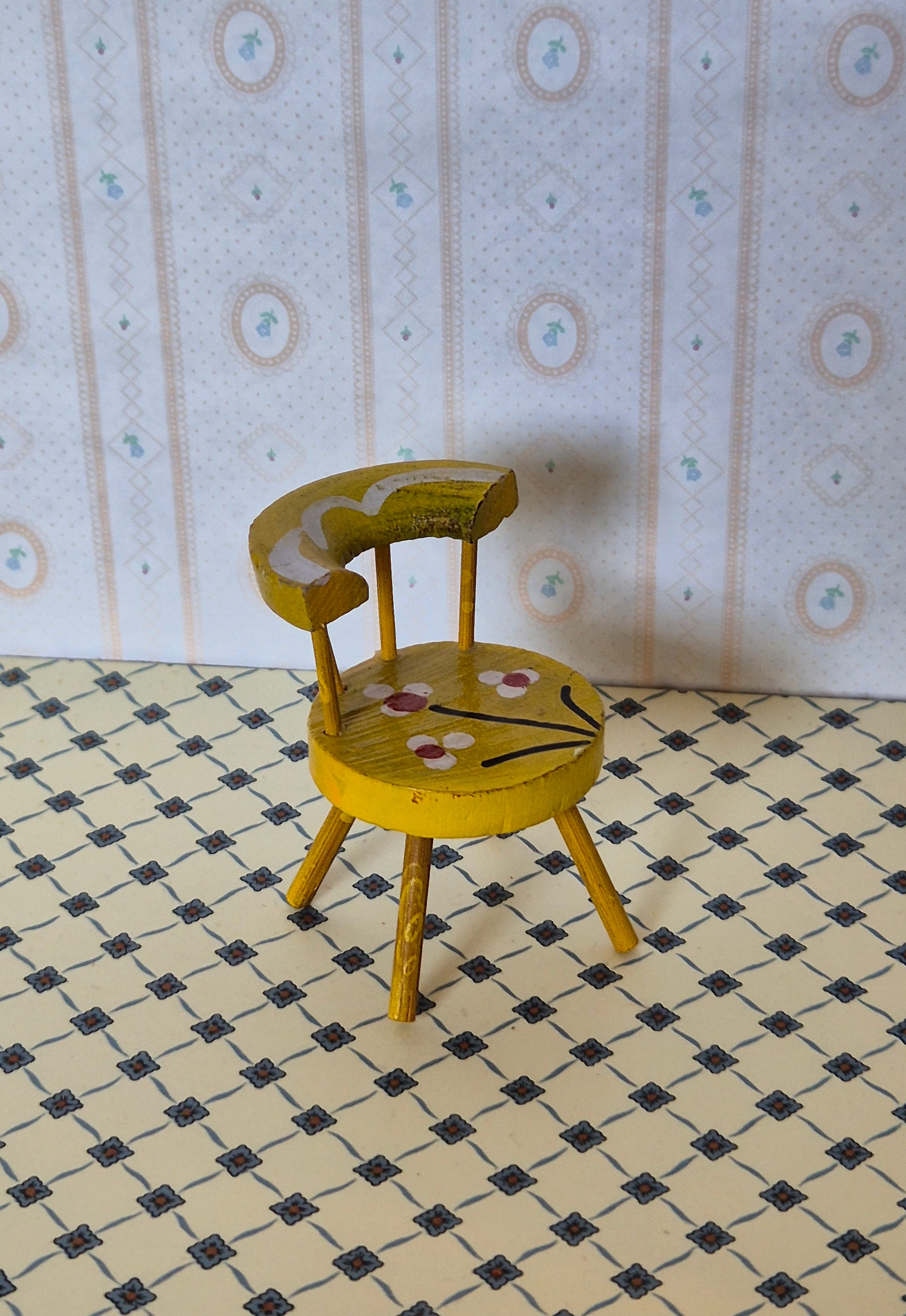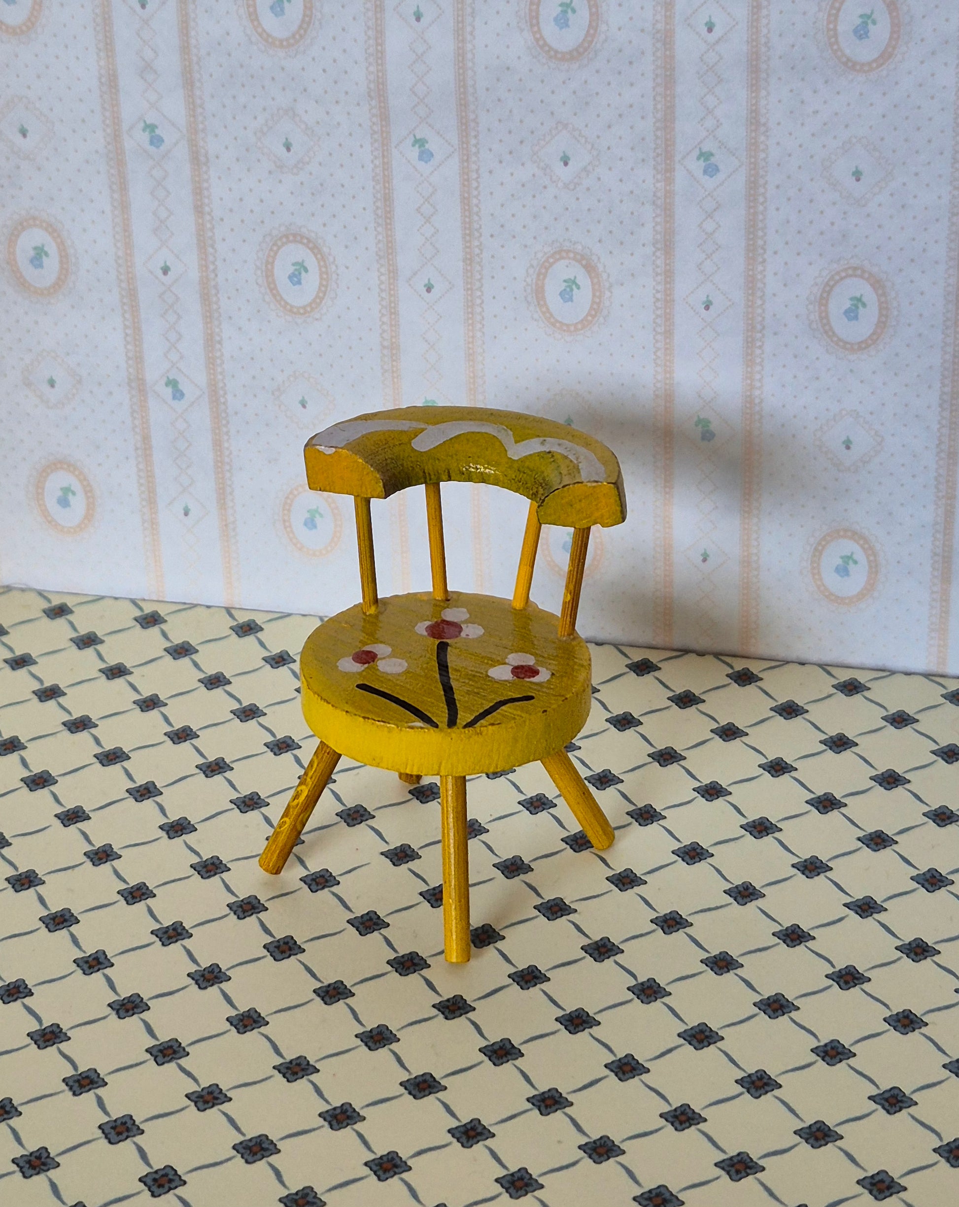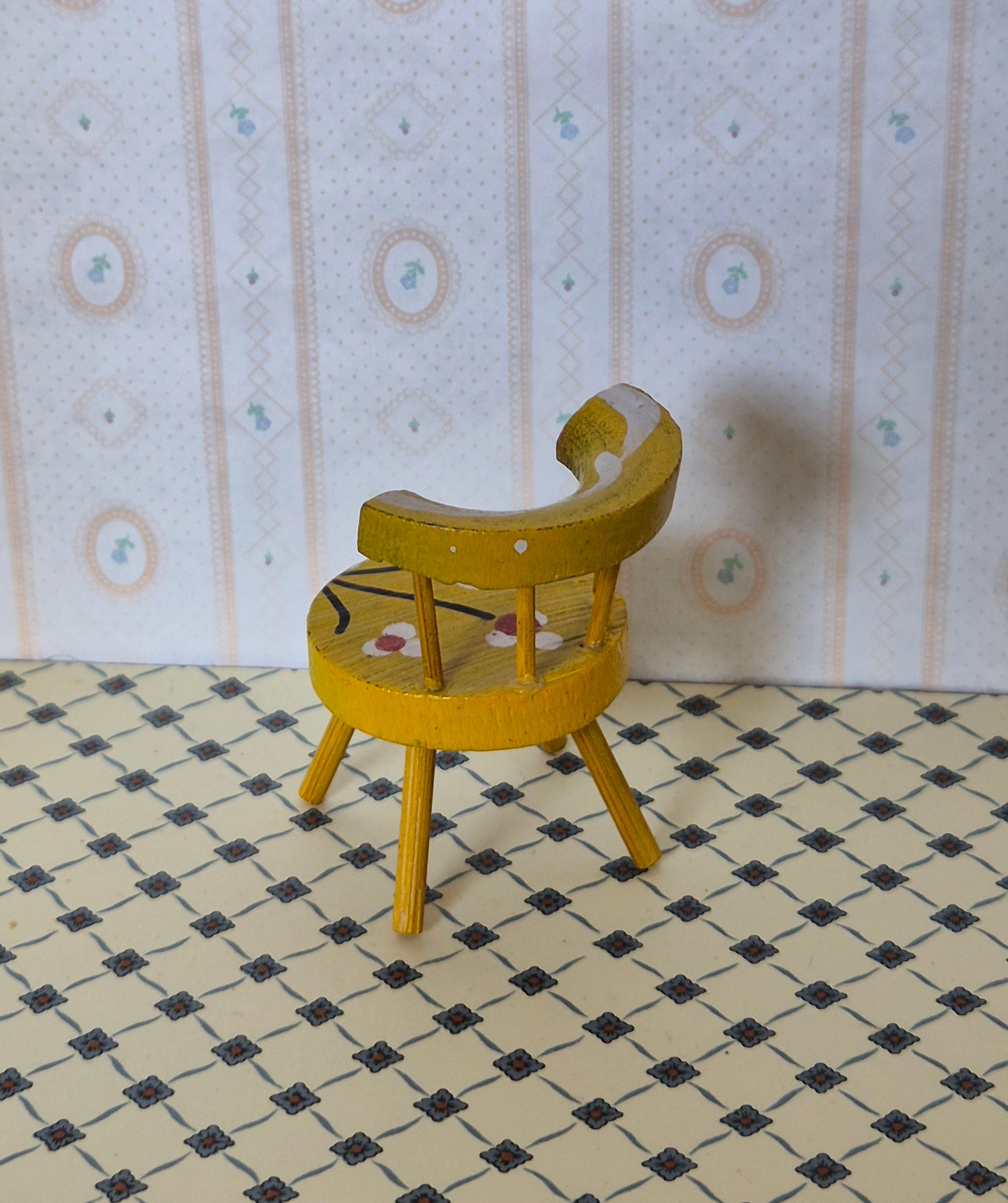 Pæn vintage gul Dora Kuhn stol 1:16. Den har patina og brugsspor.