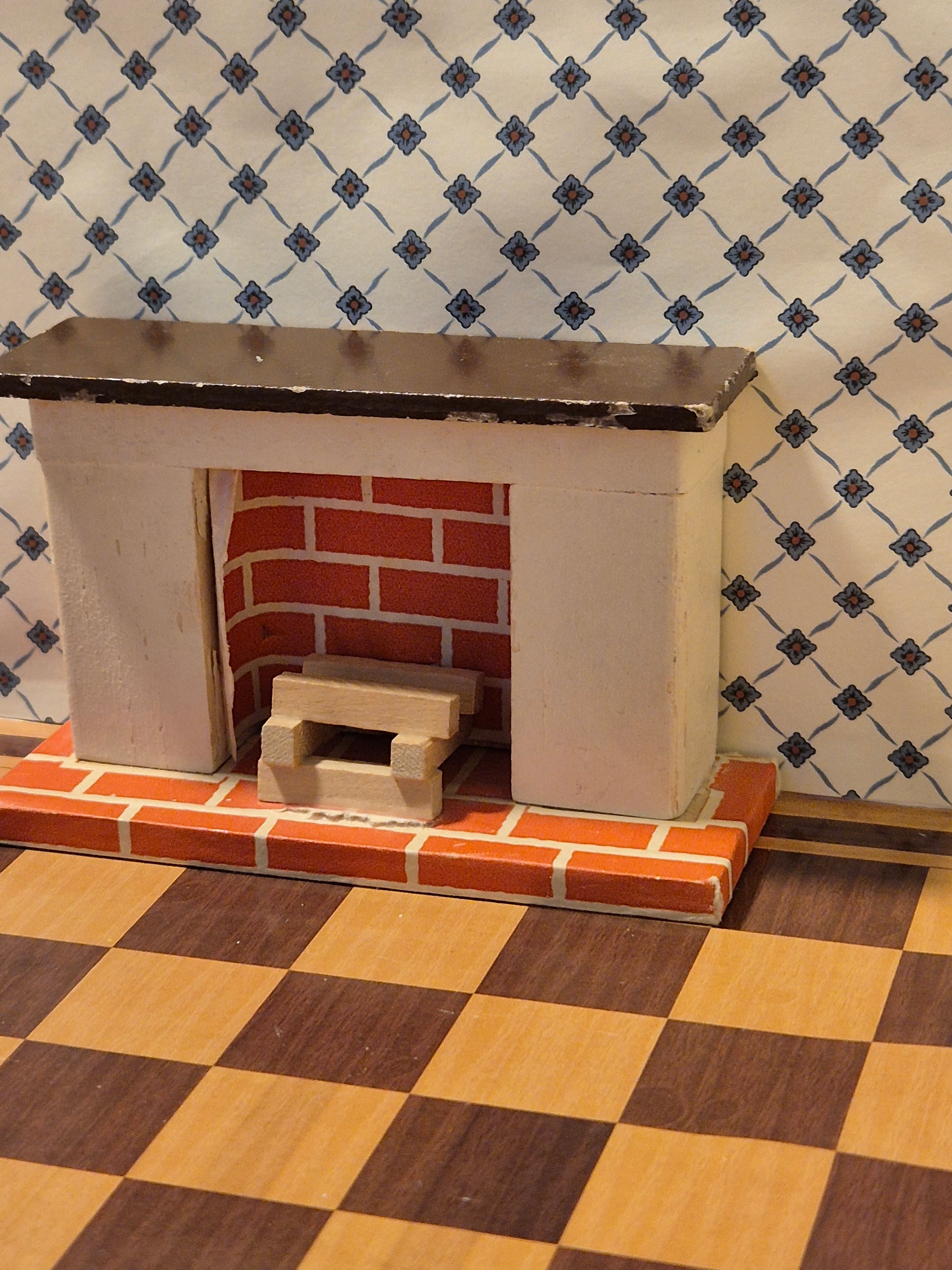 God og fin 1:16 kamin, vintage dukkehusmøbel. Der er patina og brugsspor