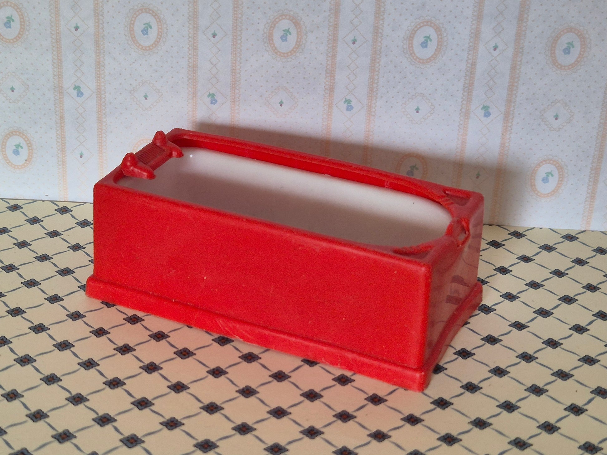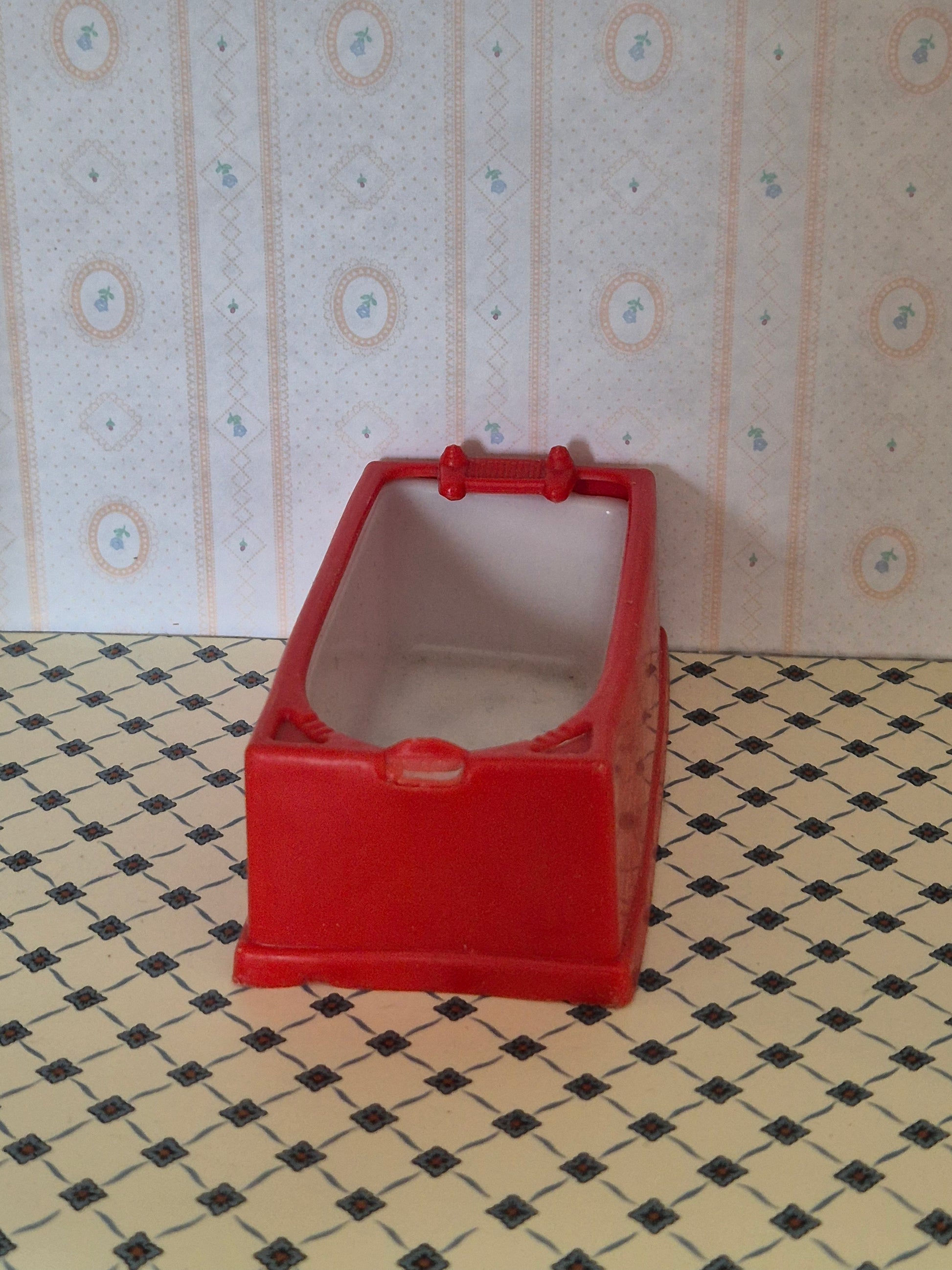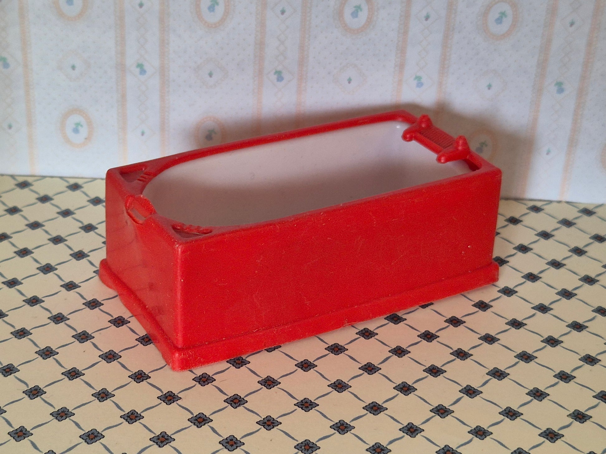 Pænt vintage 1:16 Kleeware badekar i rød og hvid. Pæn stand.