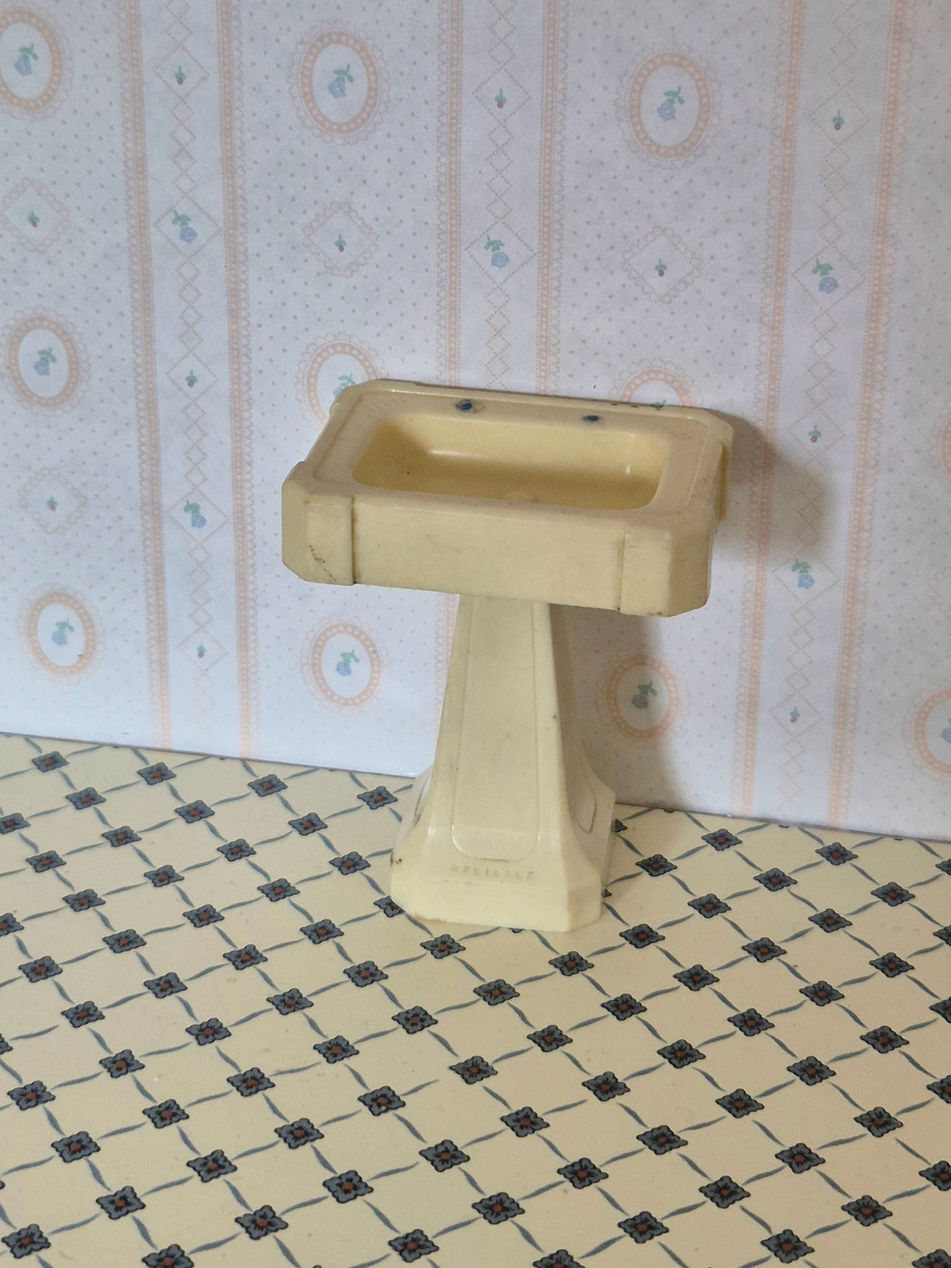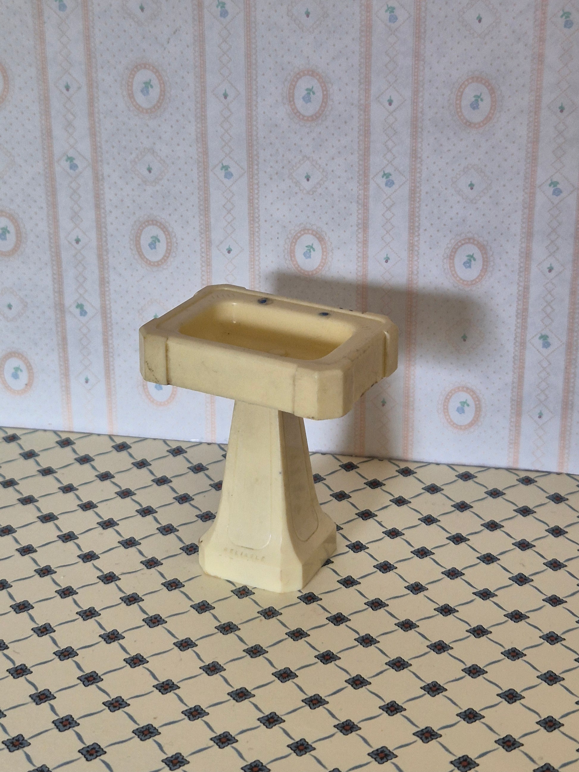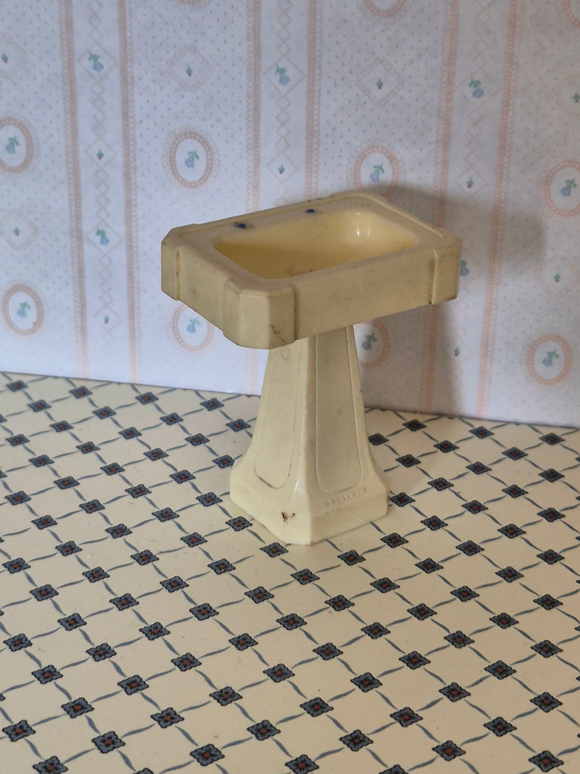 Vintage Renwal håndvask af plastik i beige uden armatur. Det er 1:16