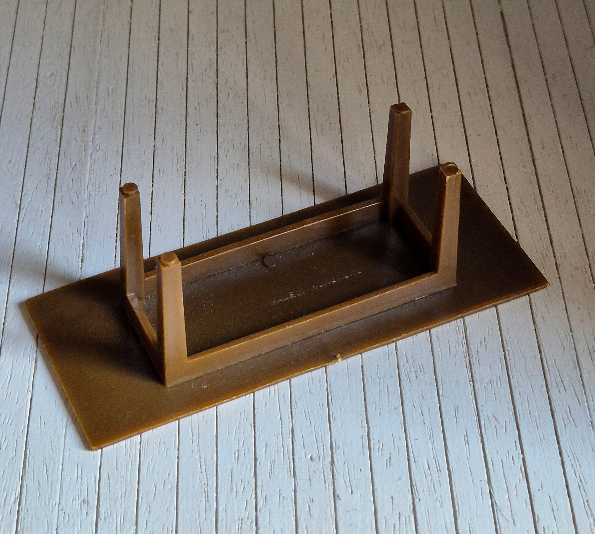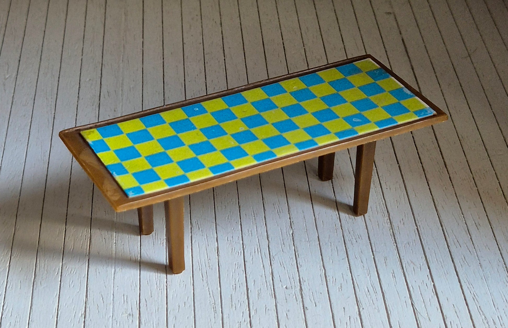 Sofabord i ældre stil med grønne og blå fliser. Det er af plast. Passer også til 1:18.