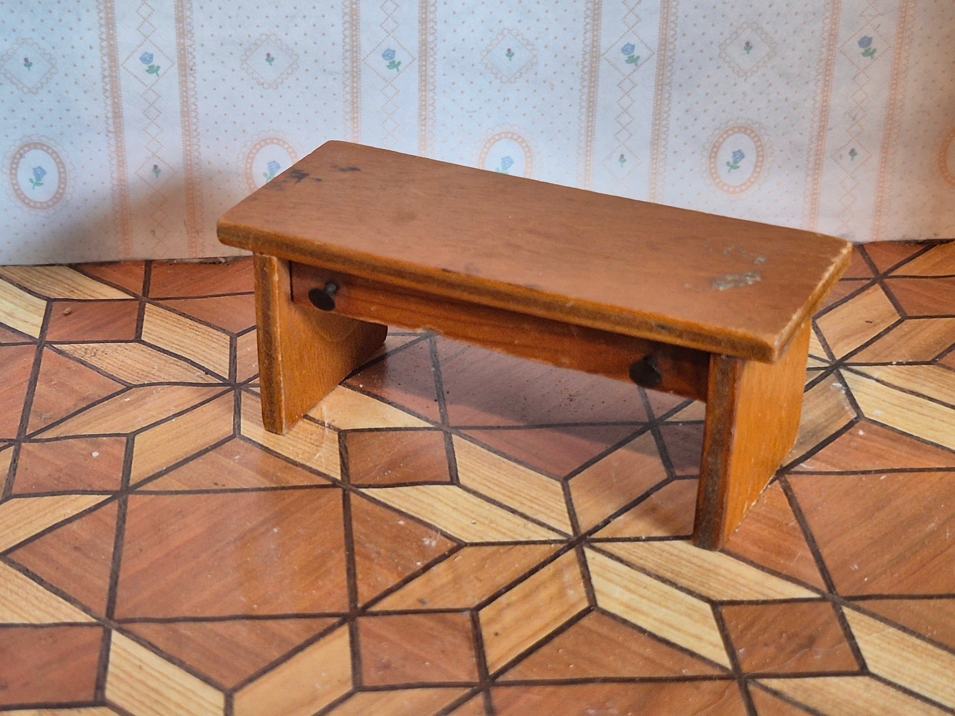Lille reol / sidebord i træ. Retro dukkehusmøbel