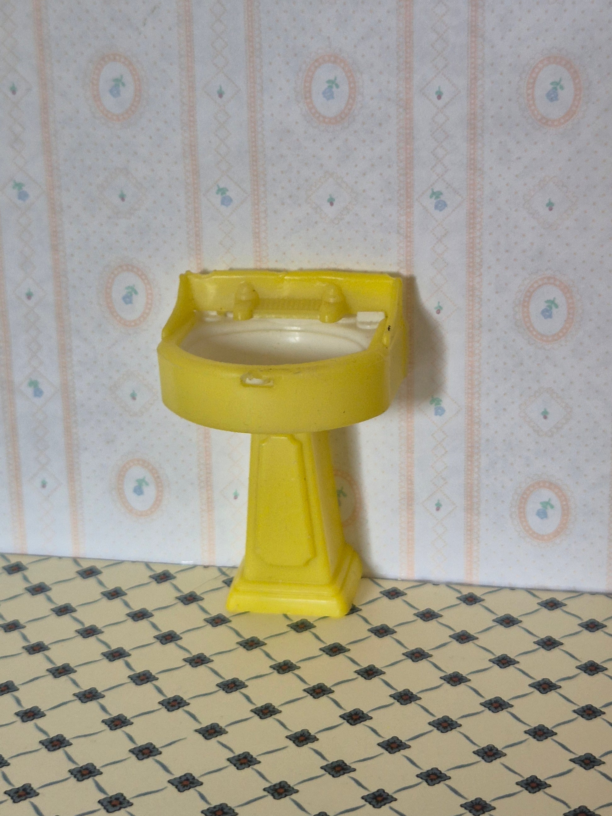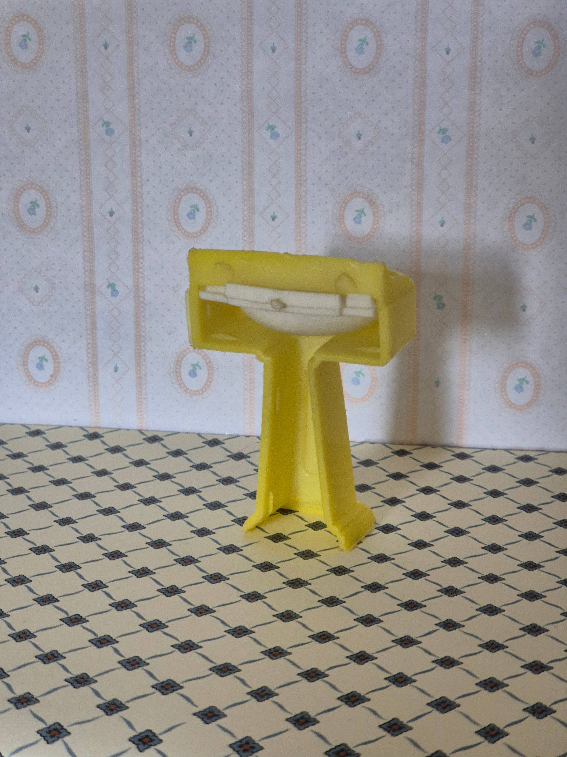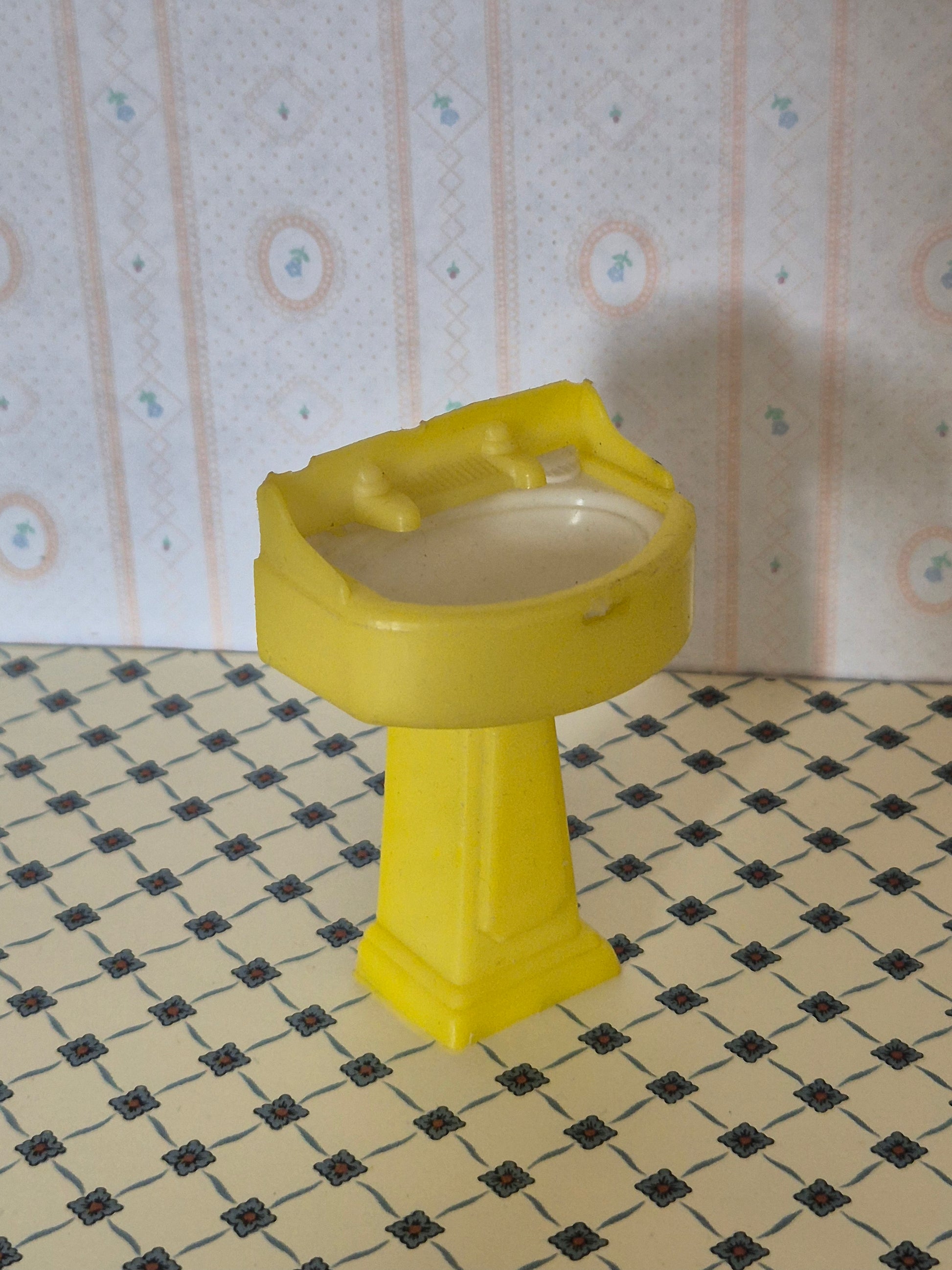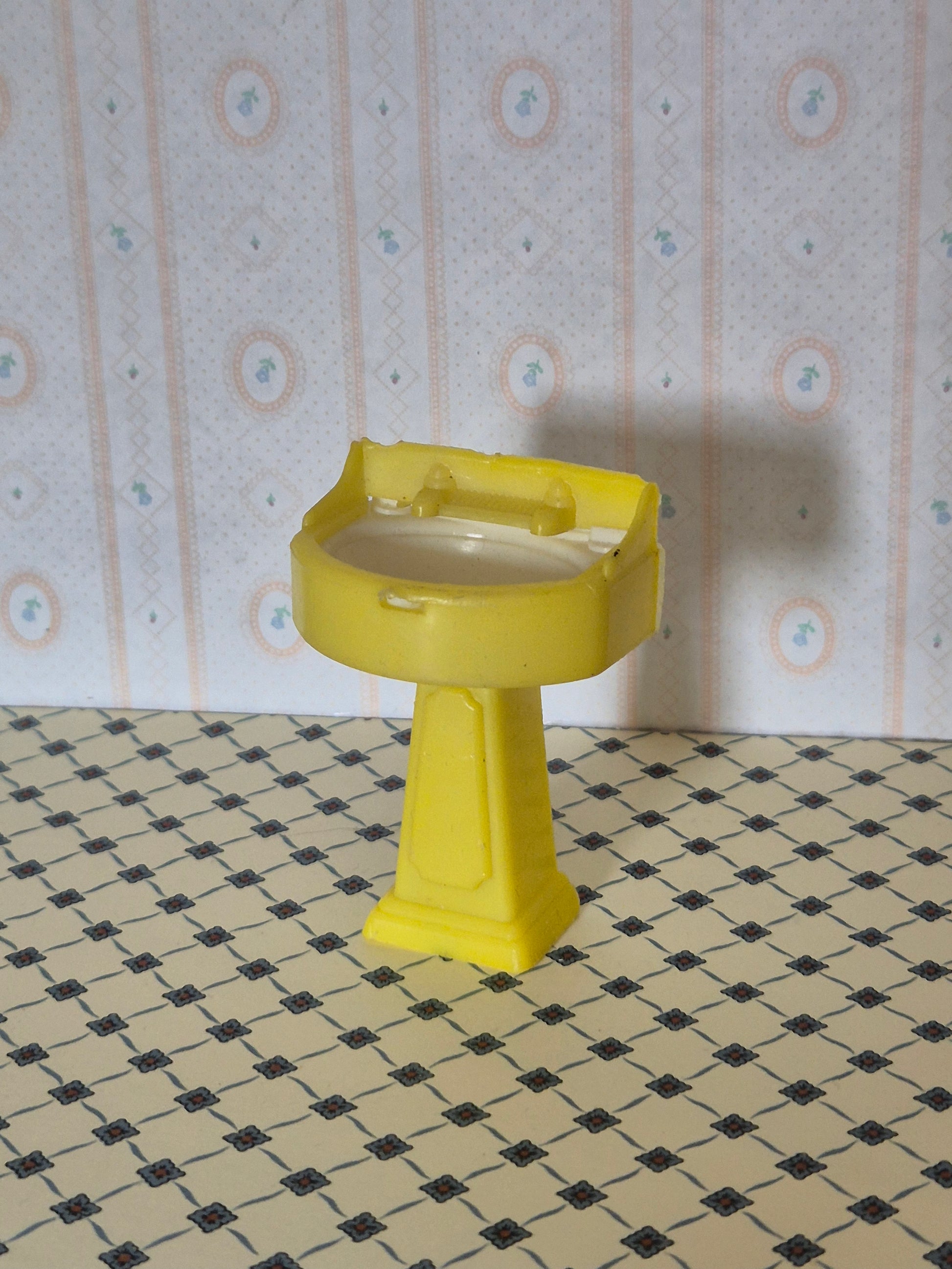 Fin gul vintage håndvask i 1:16 af mærket Kleeware.