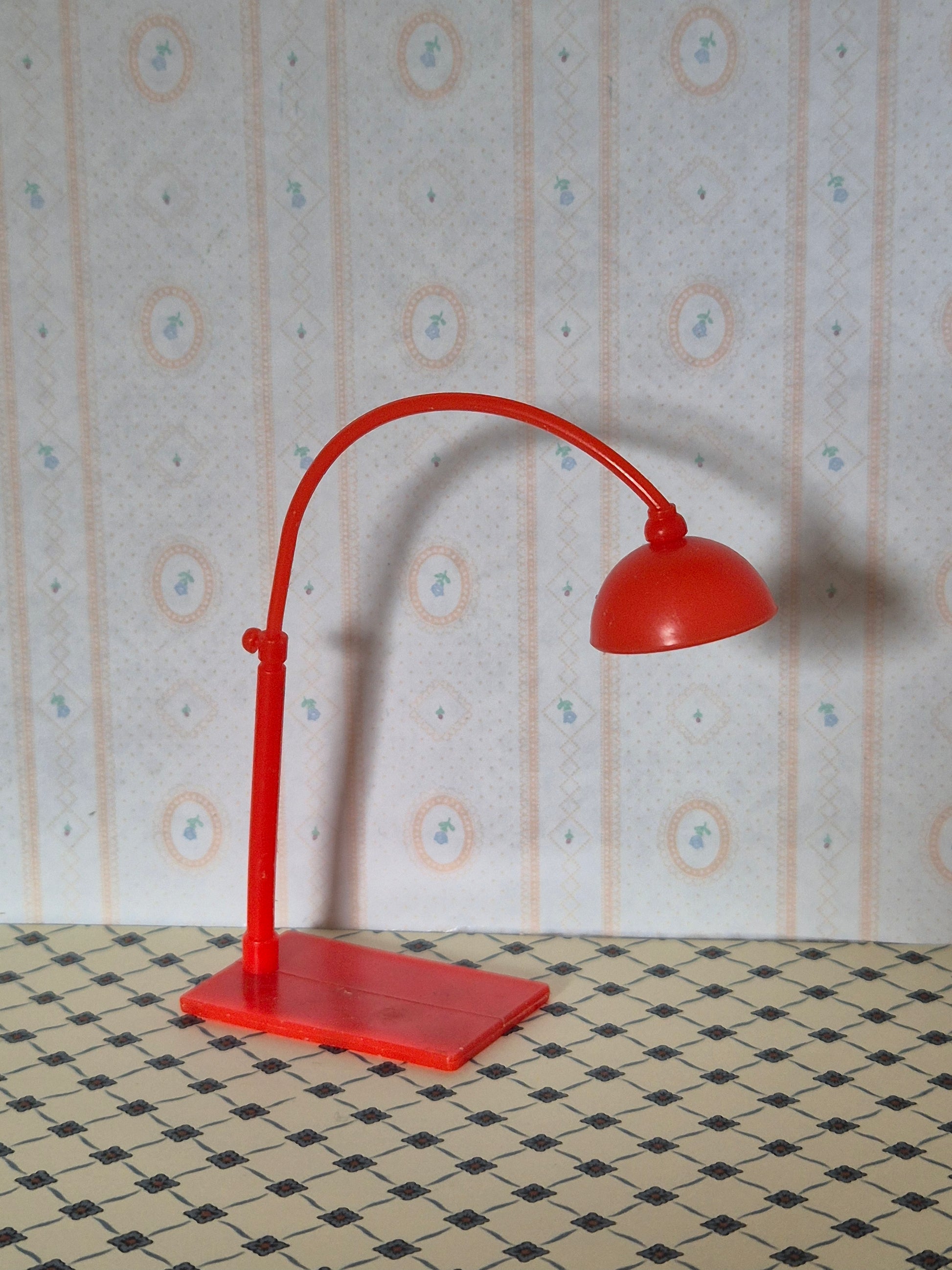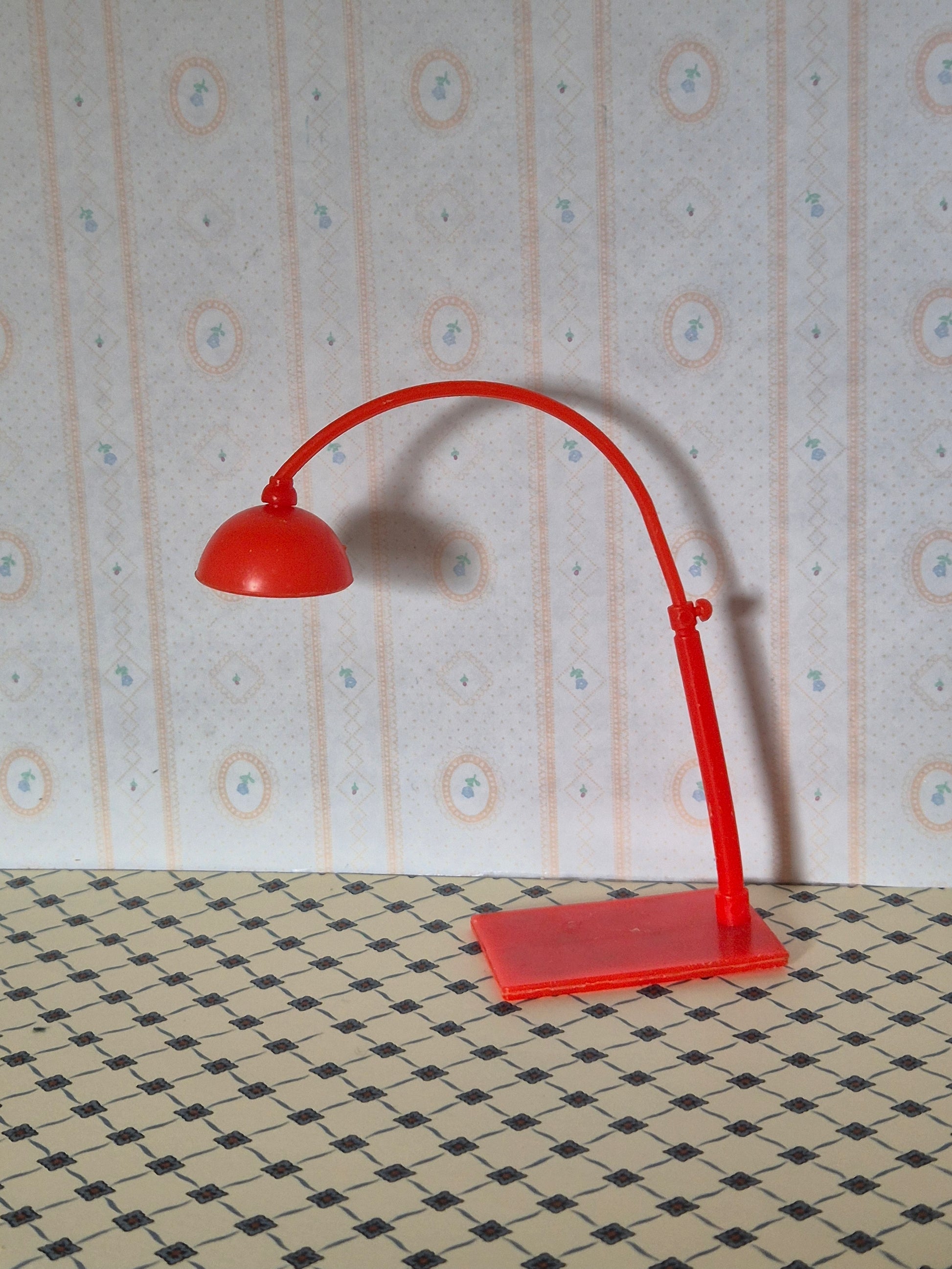 Pæn vintage standerlampe i orangerød nuance. Den er af plast. Udmærket god stand med lidt patina.