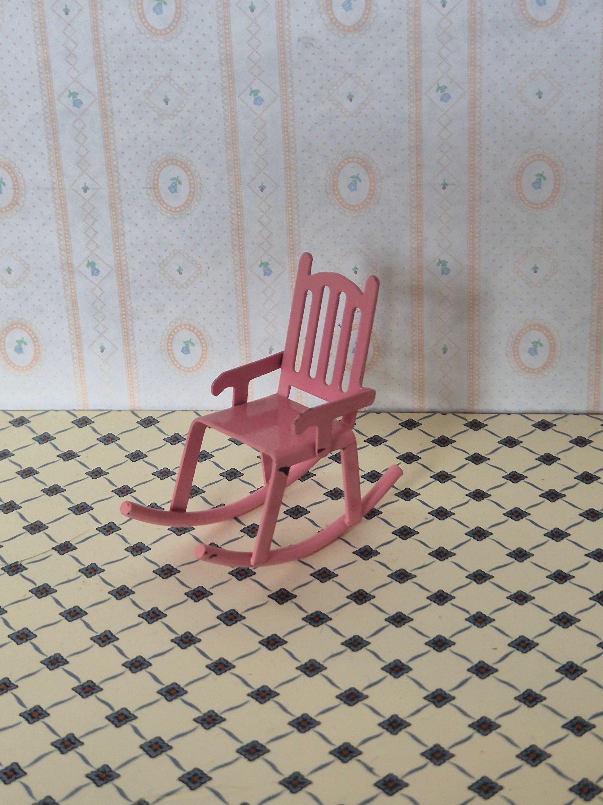 Lille pink gyngestol til dukkehuset, str 1:20. Der er patina og brugsspor.