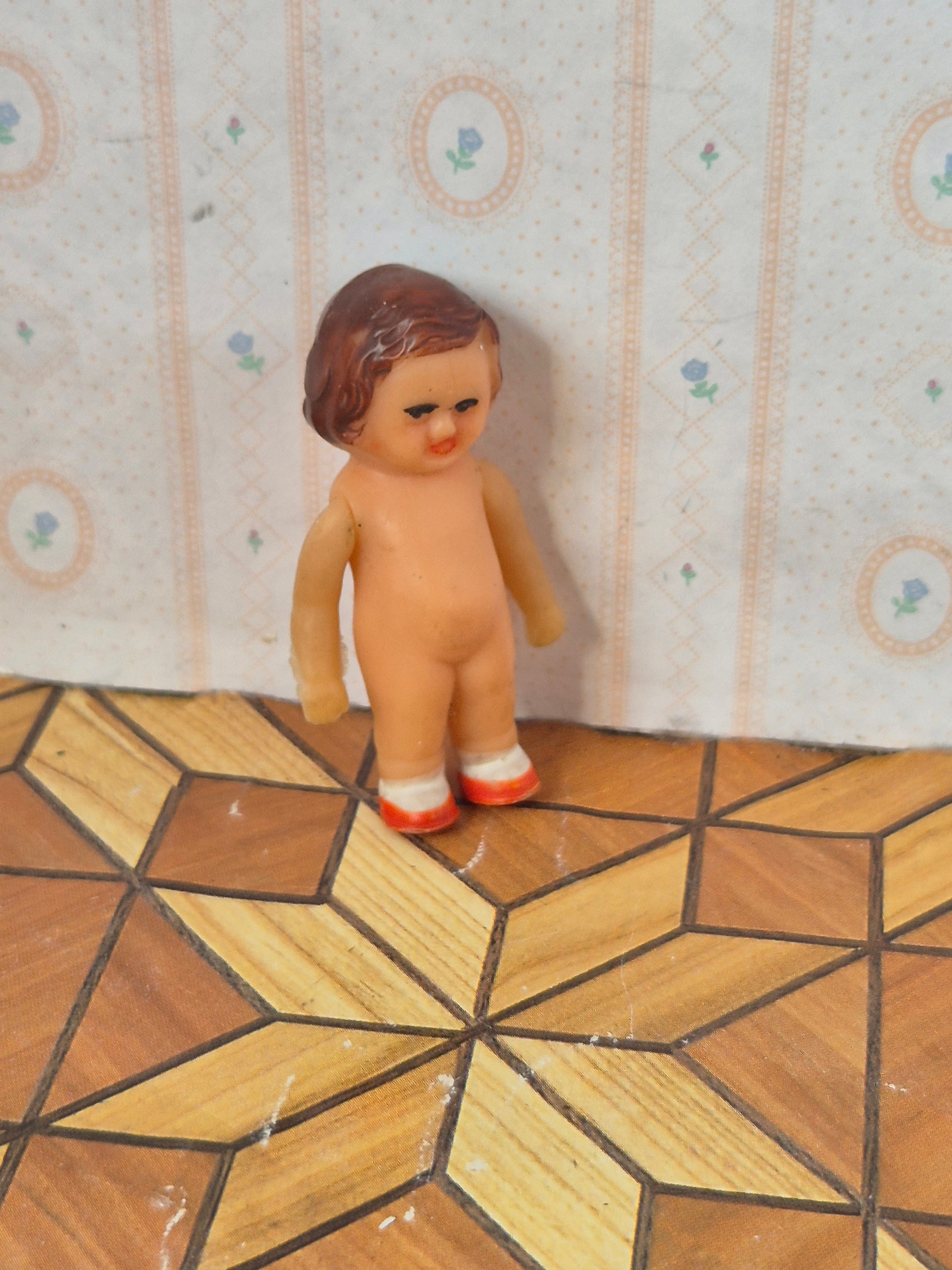 Ari dukke uden tøj på. Den er ca 3-4 cm høj.