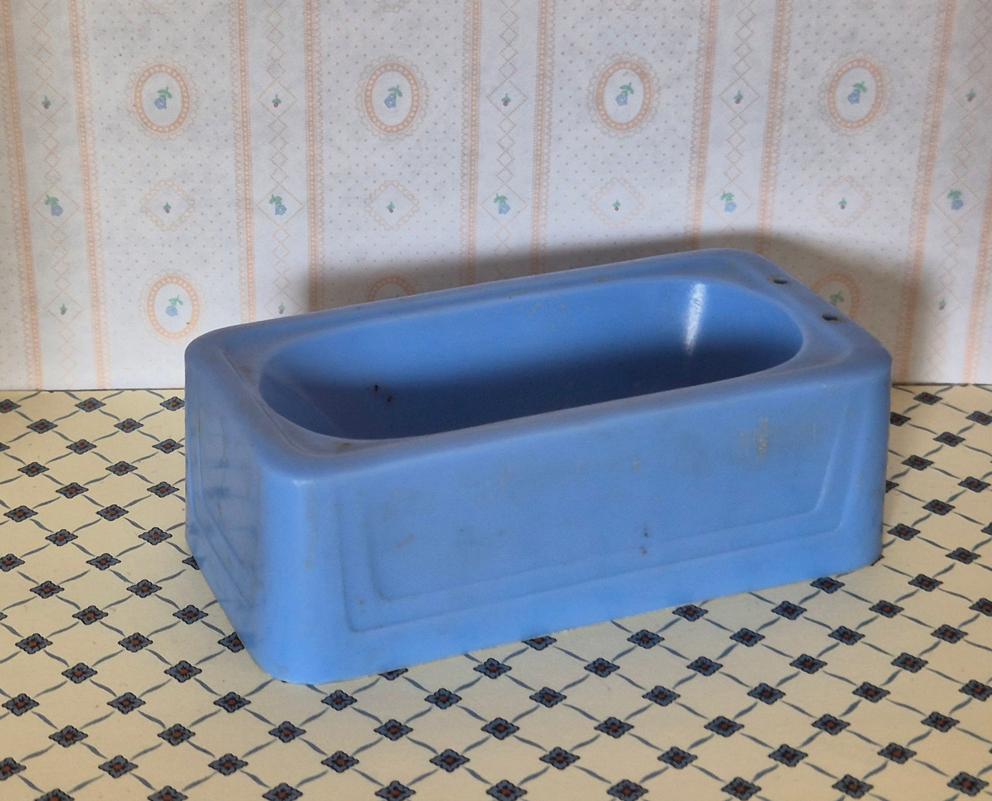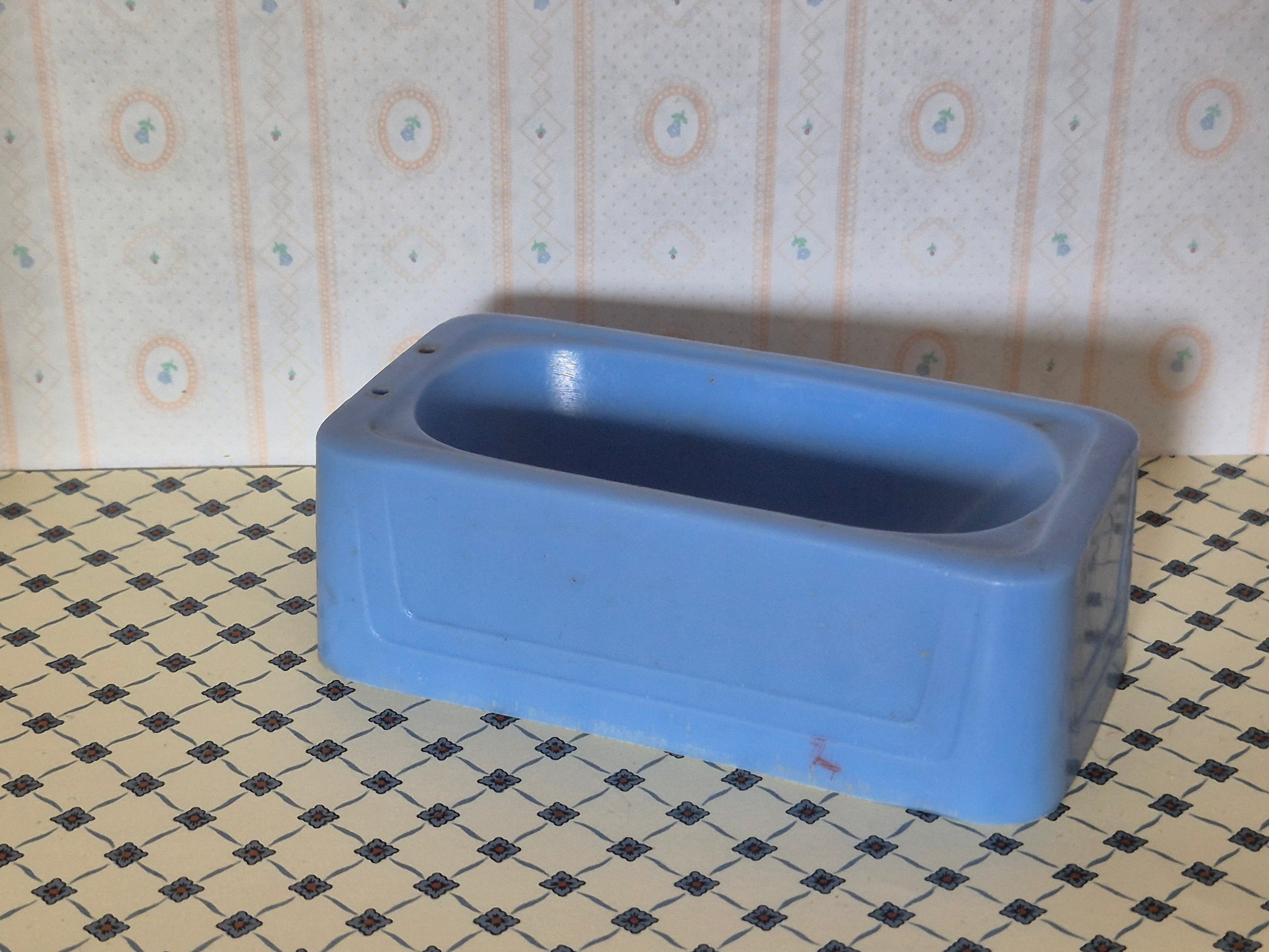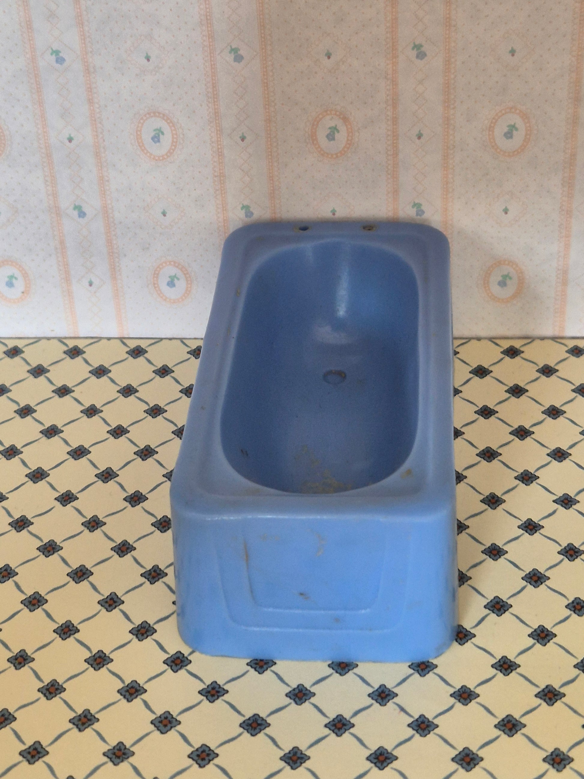 Vintage blåt badekar 1:16 til dukkehus badeværelset. Det mangler armaturet.