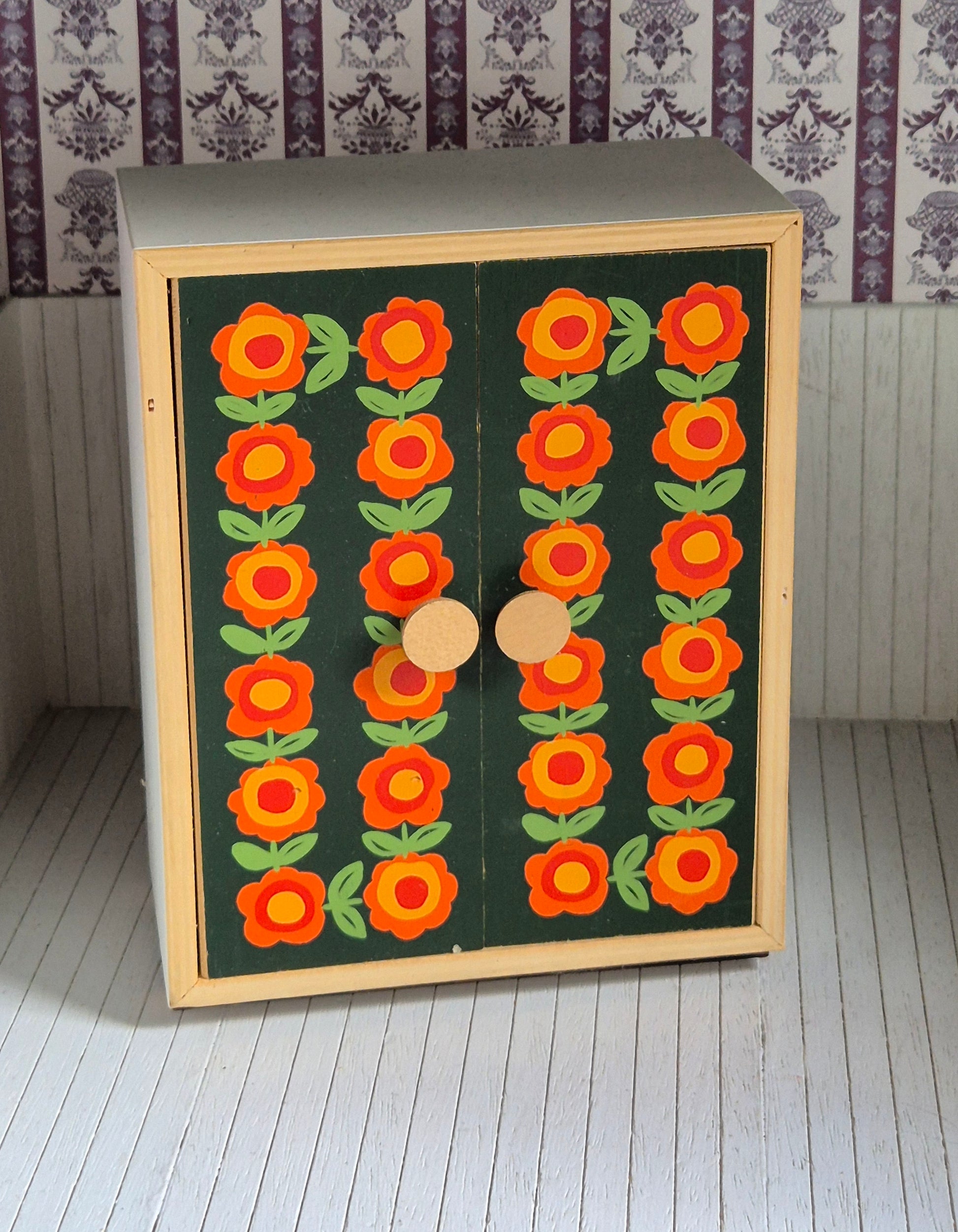 Stort og flot klædeskab af træ med fint retro print på forsiden af det tyske kvalitetsmærke Bodo Hennig.