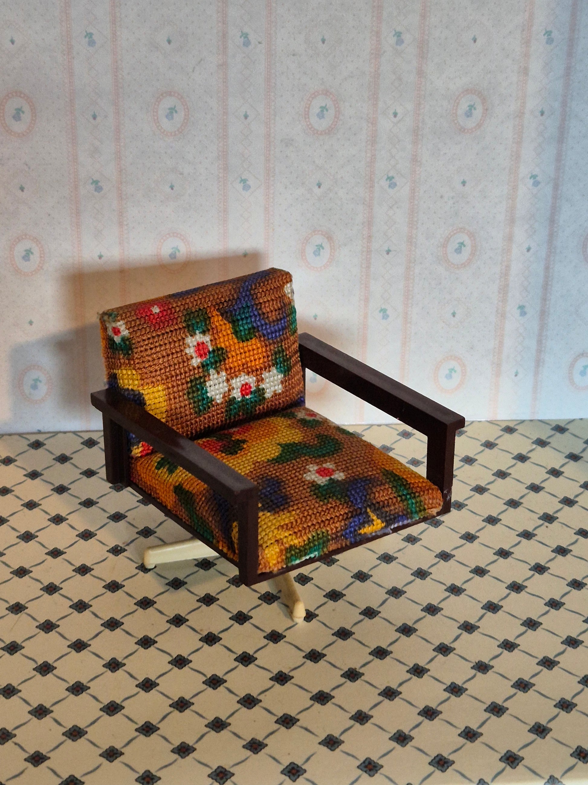 Den er original, pæn og sjælden. Smukt dukkehusmøbel. Det er 1:10 eller ret stor 1:12.