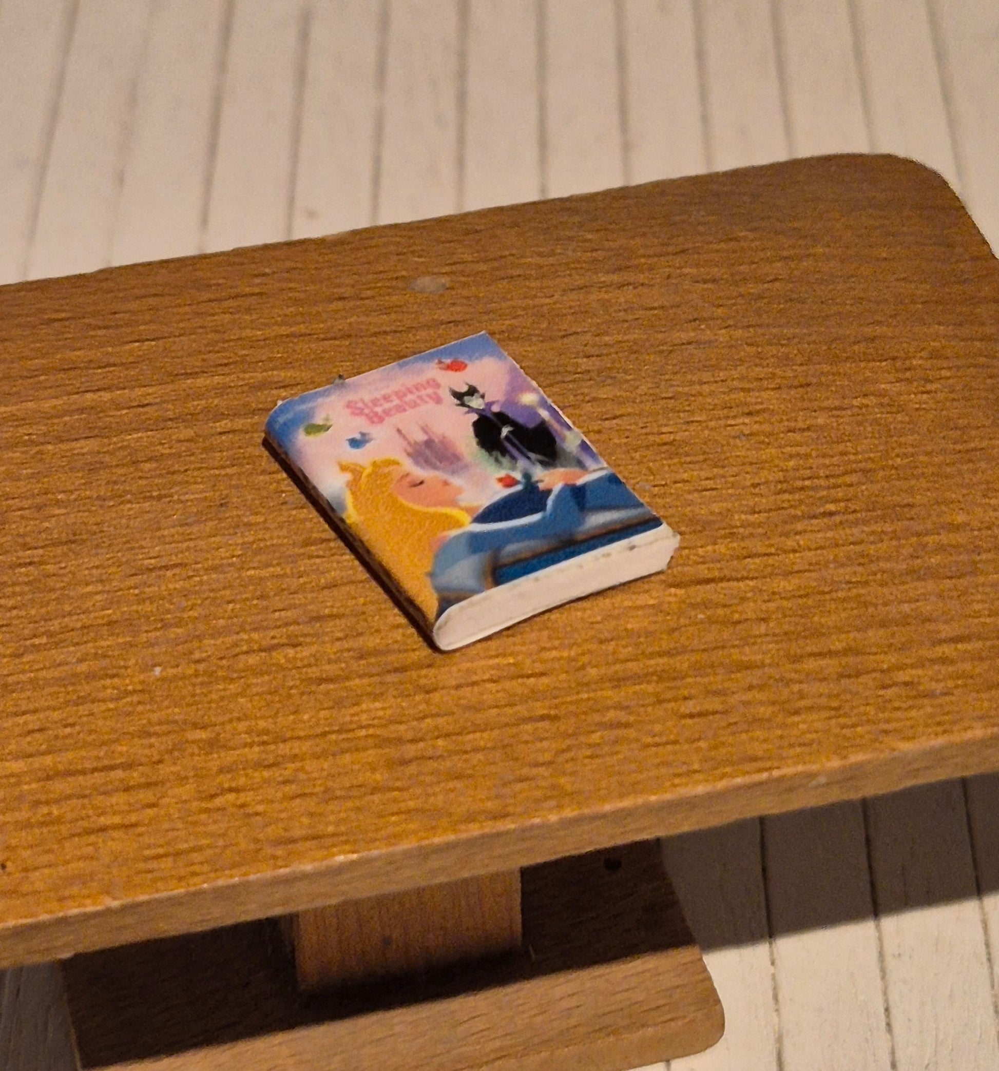 Pæn Tornerose bog til dukkehus. Børneværelse tilbehør. Den er brugt, men god stand. Den kan ikke åbnes.