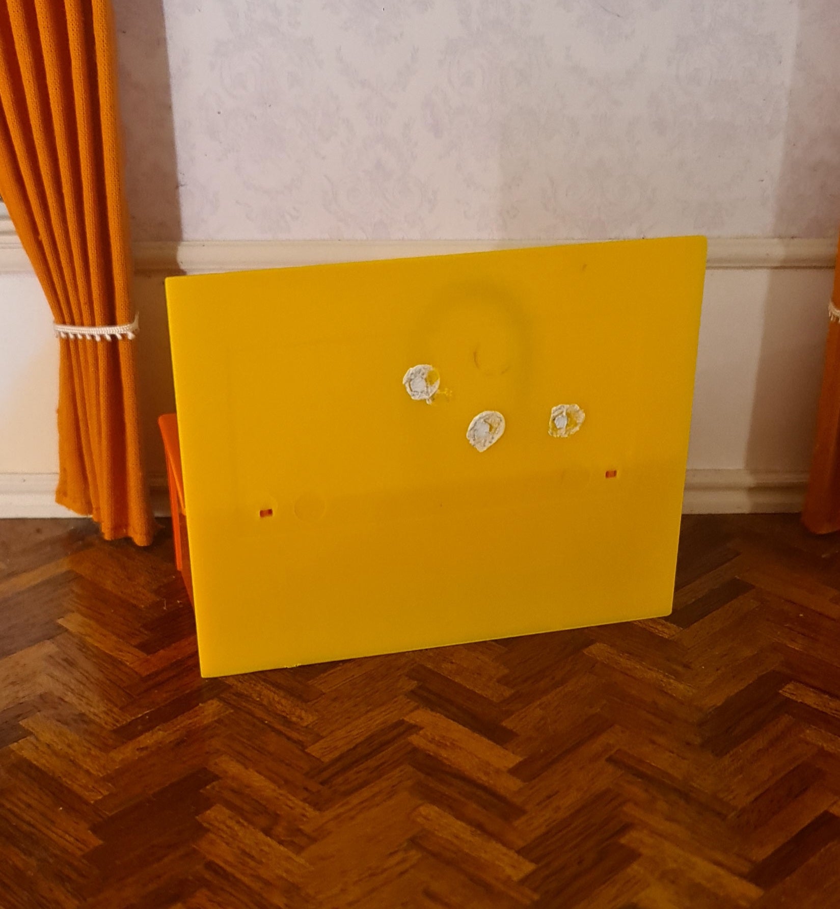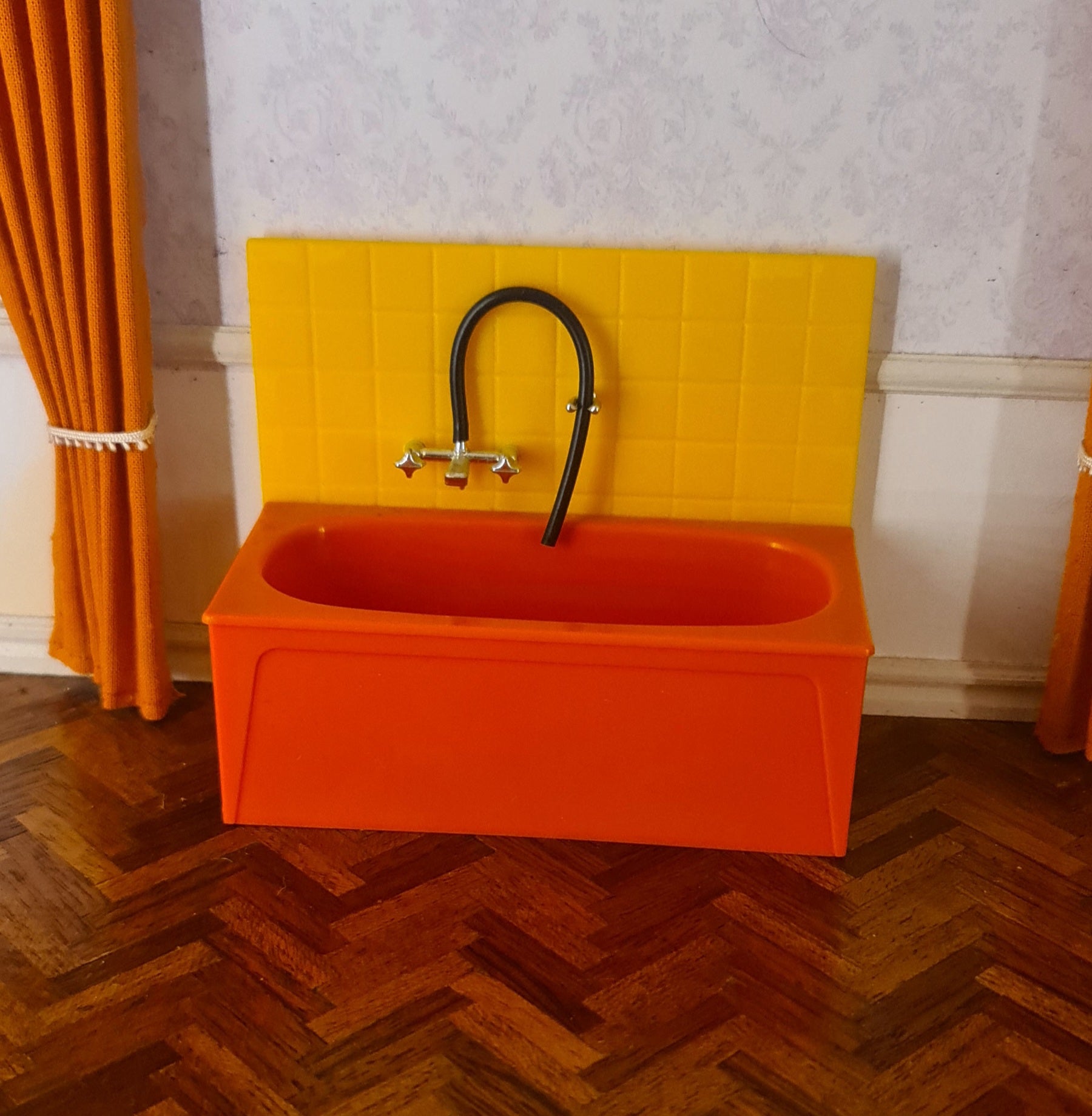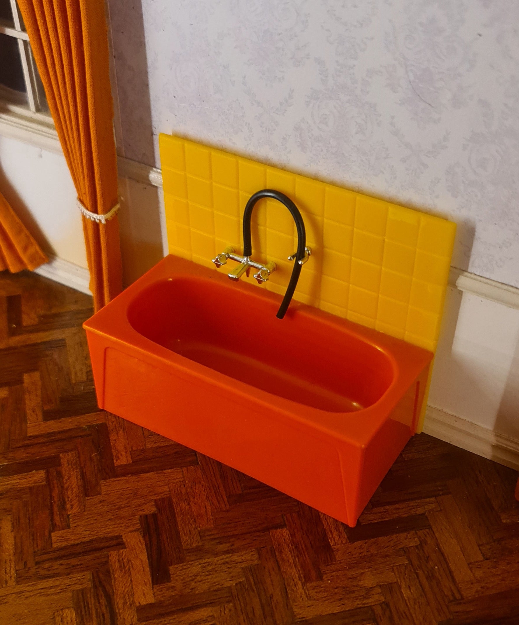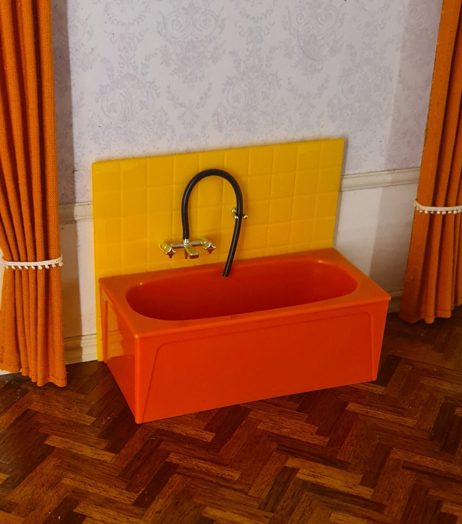Det er af plast og brugt, derfor mangler brusehovedet og håndklædet.