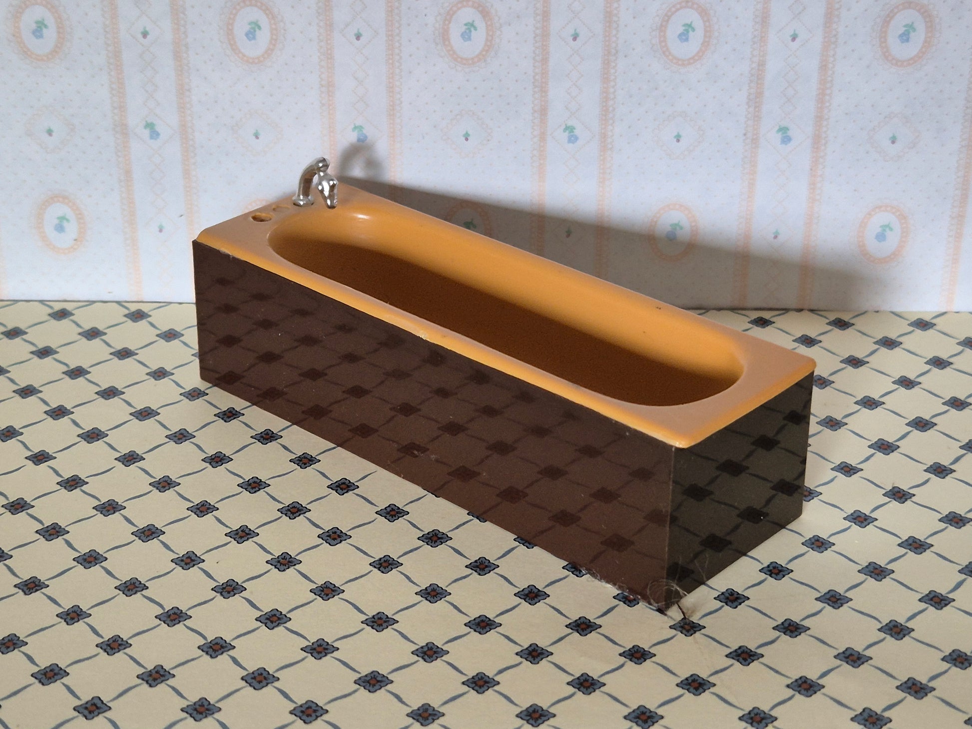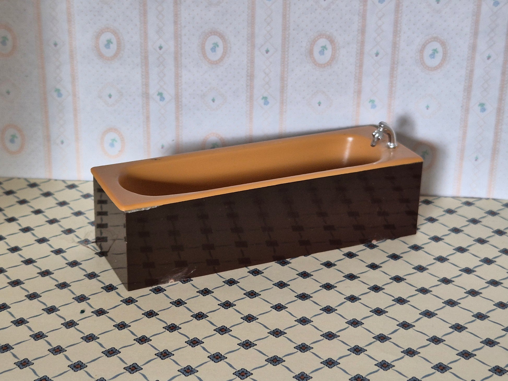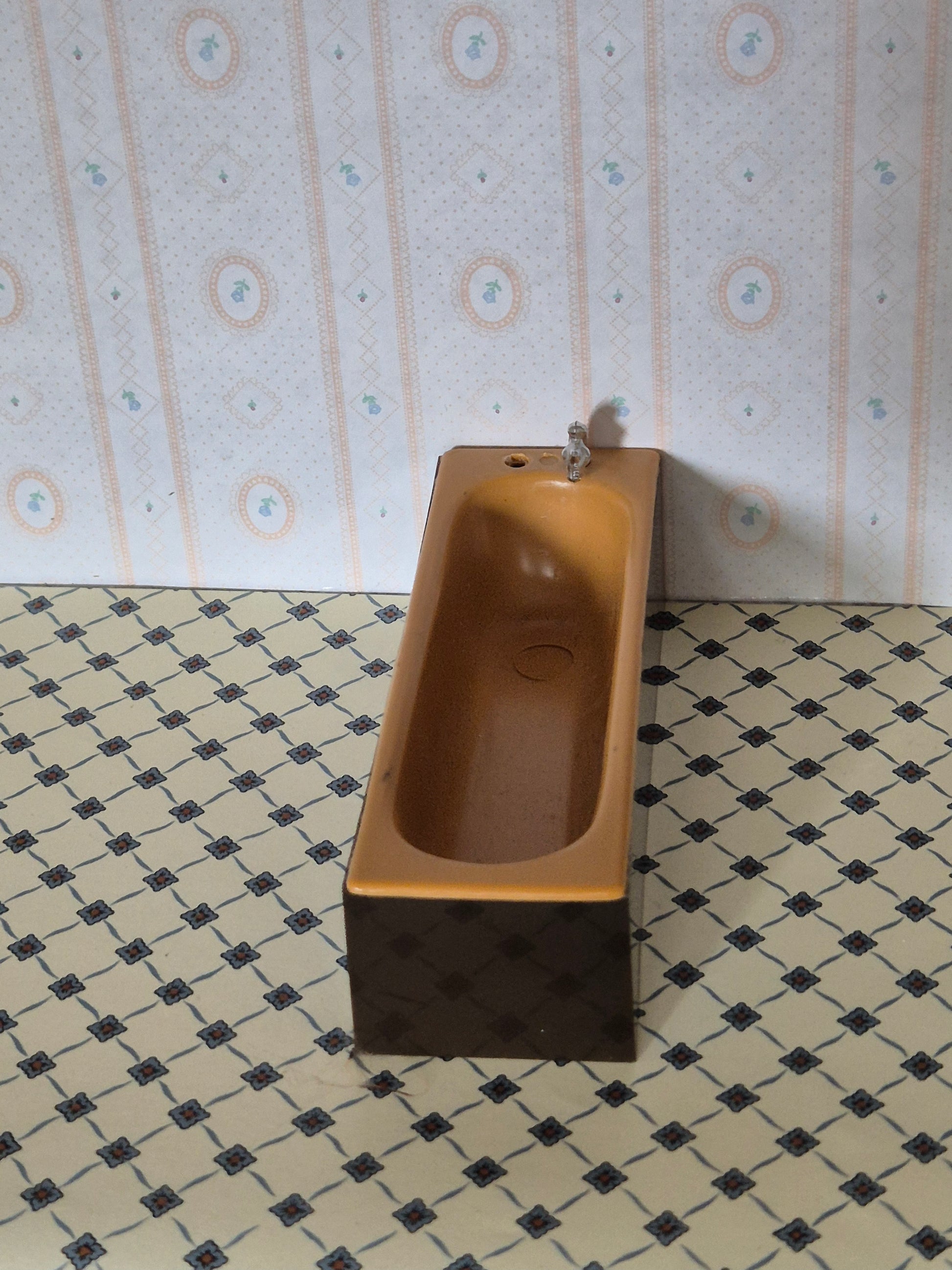 Pænt brunt vintage badekar af britiske Caroline Home i 1:18. Det mangler en del af armaturet, håndtag. Ellers pæn stand.