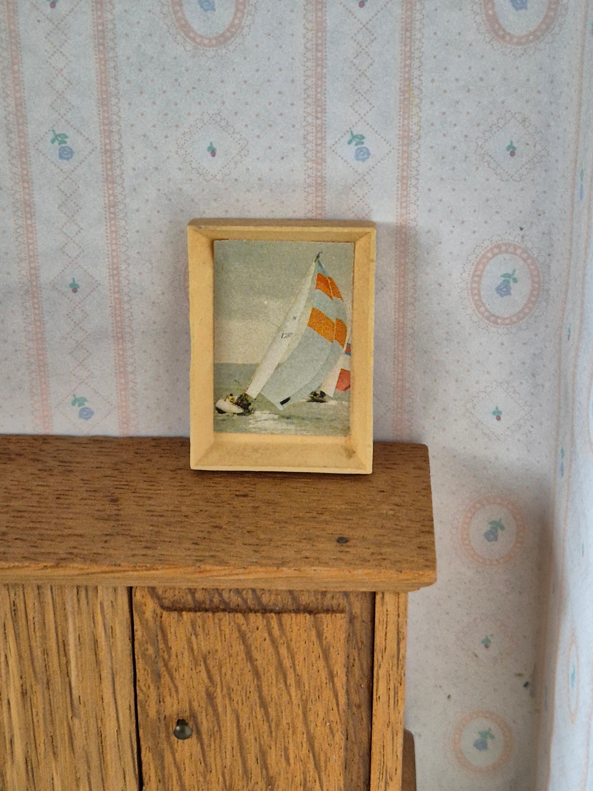 Vintage Caroline Home billede med gullig patina kant. Selve motivet er pænt.