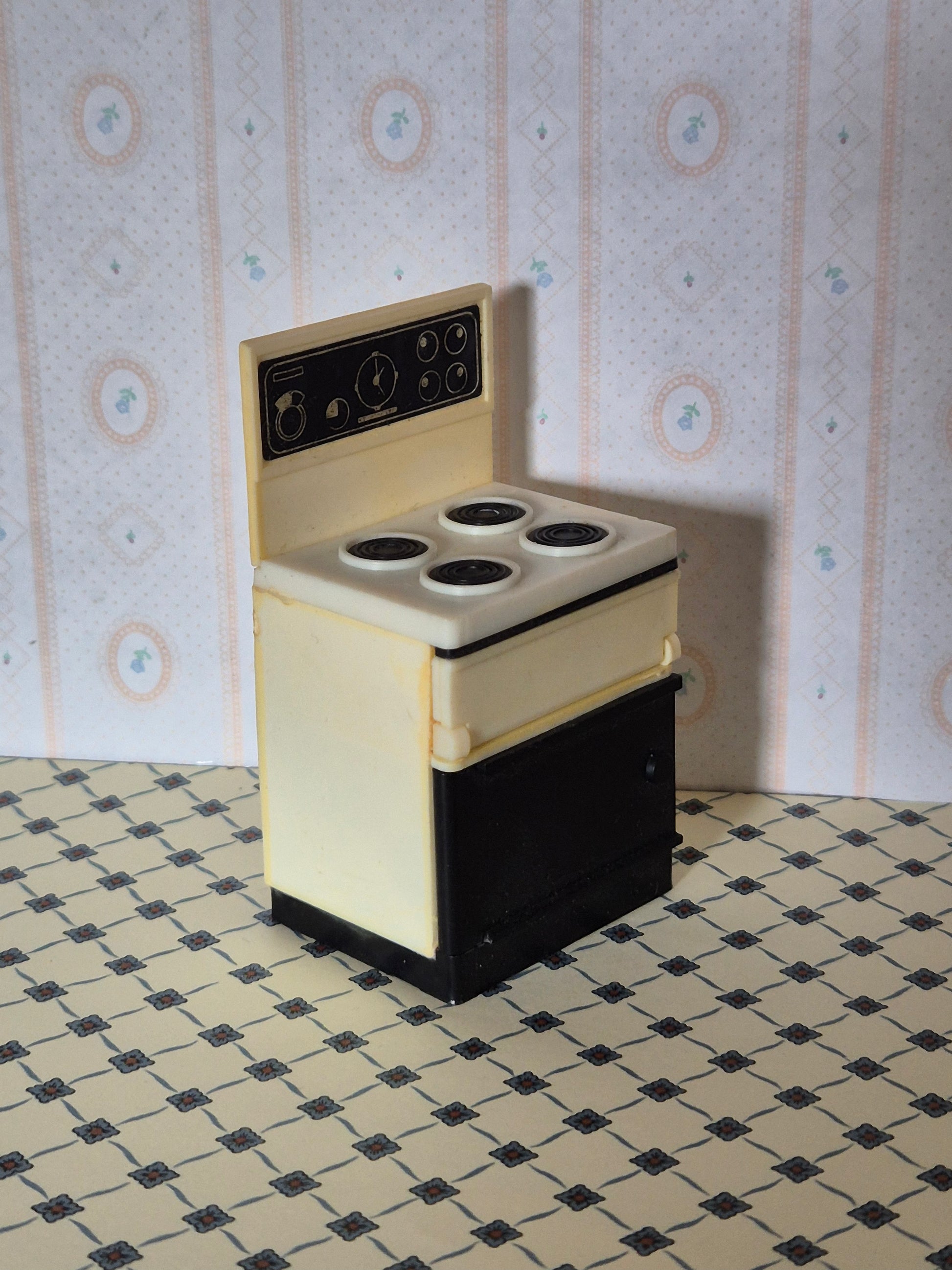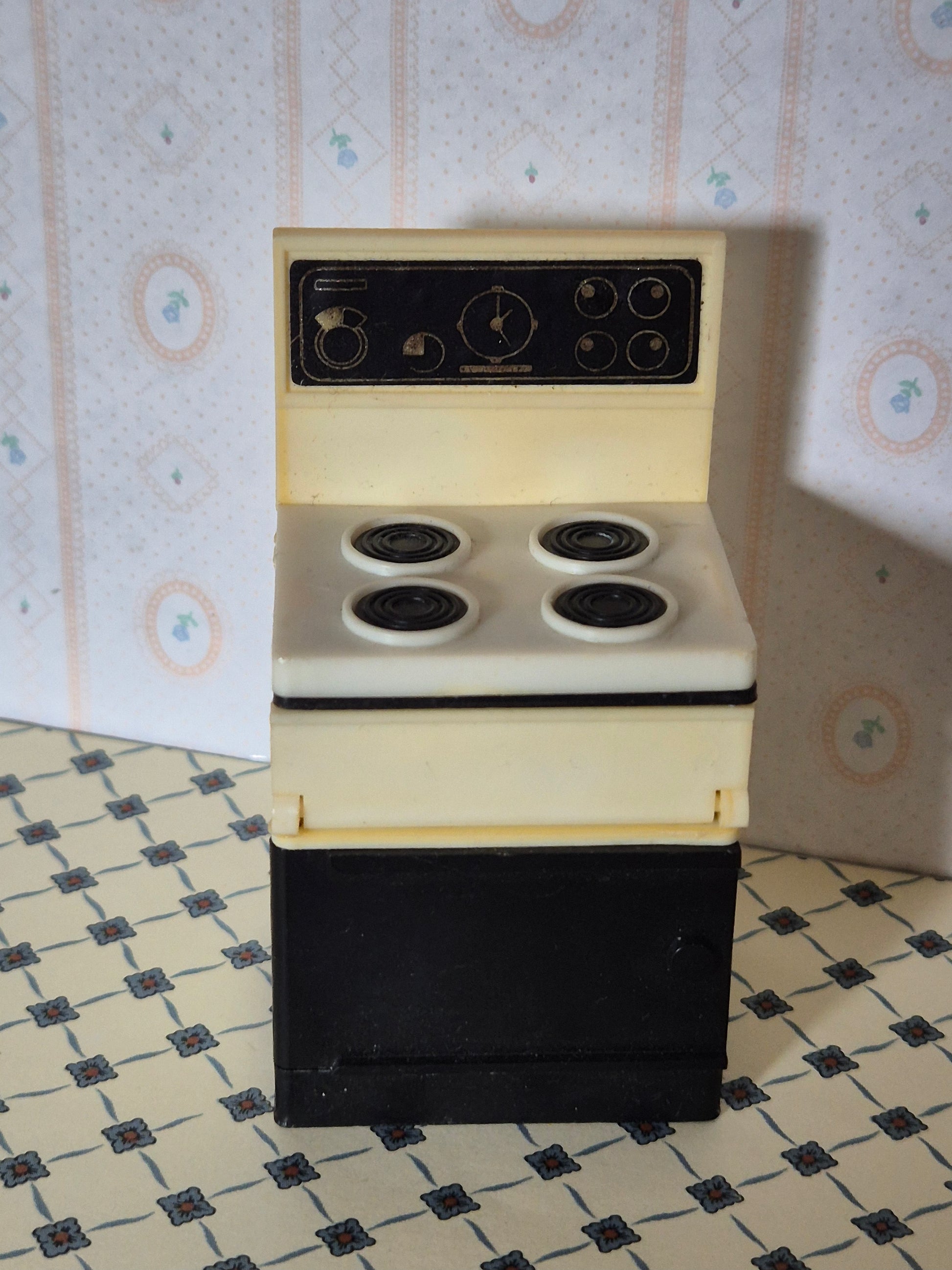 Rigtig pænt 1:16 Caroline Home komfur af plast til køkkenet. God stand. Intakt.