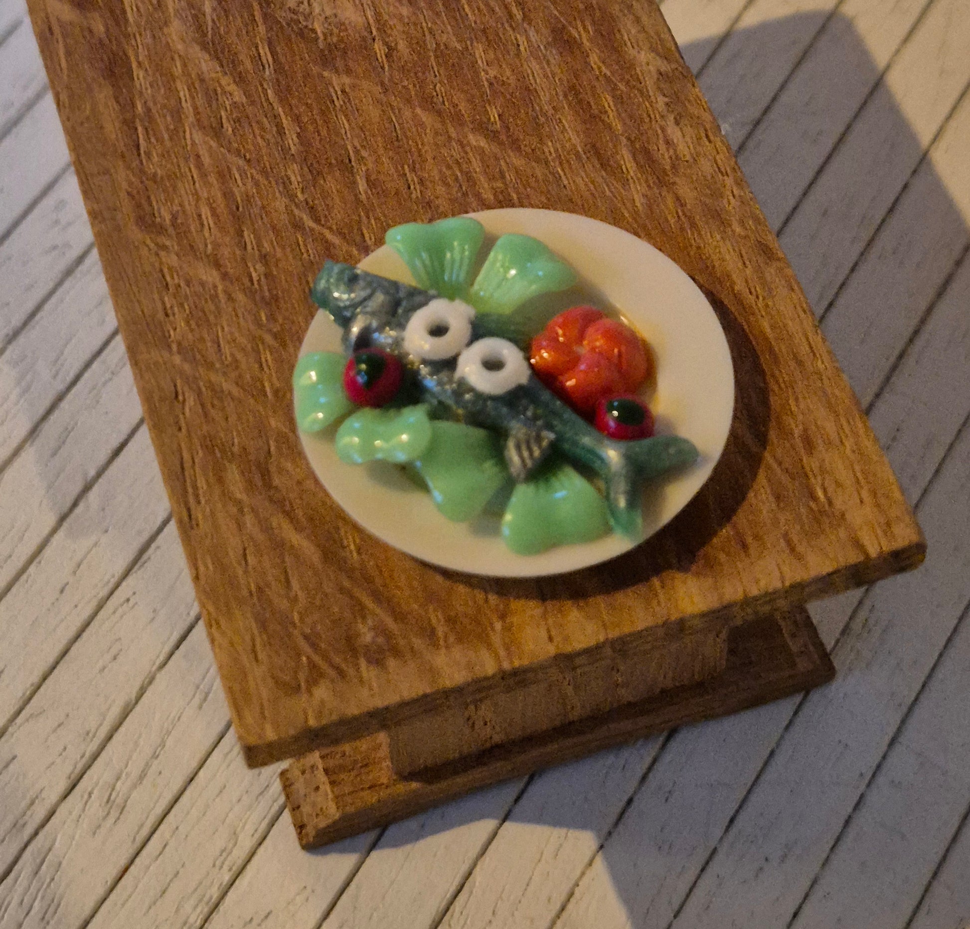 Den er vintage, ældre og af plast, men i fin stand str 1:16, men fint bruges til 1:12.