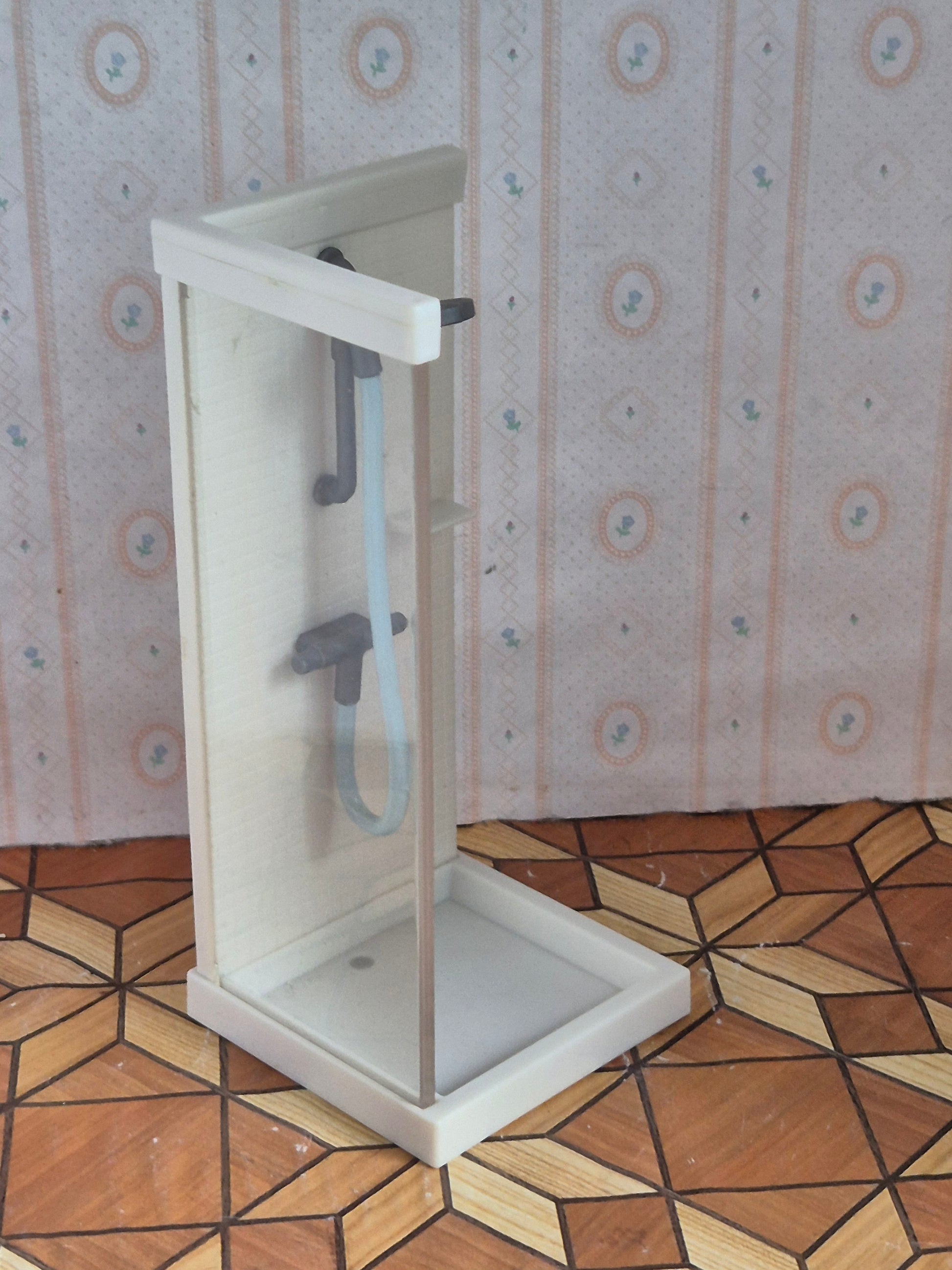 Pæn og fin, intakt Djeco brusekabine til dukkehus badeværelset 1:16. God stand