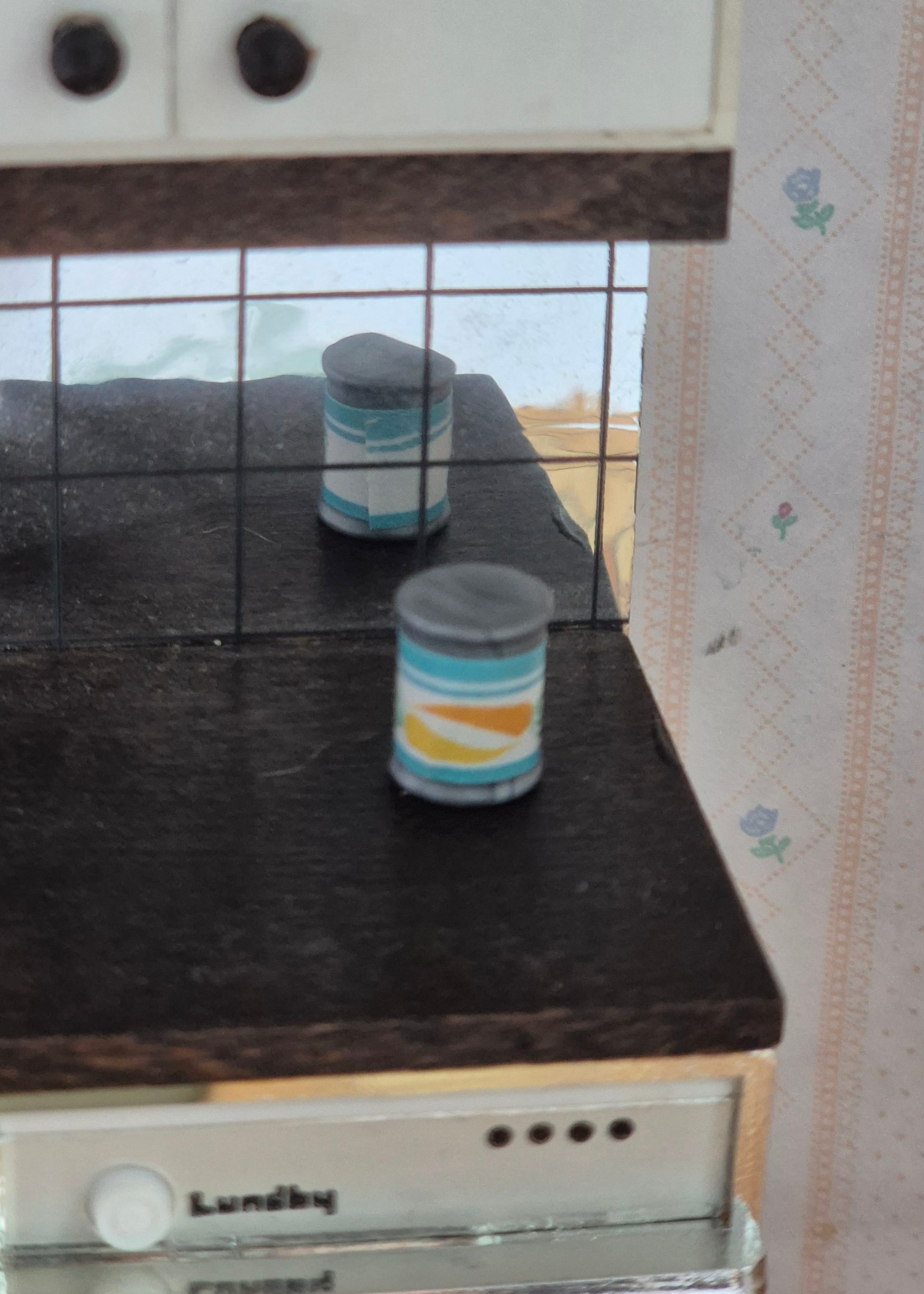 Fin lille konservesdåse med grøntsager af mærket Djeco til dukkehus køkkenet