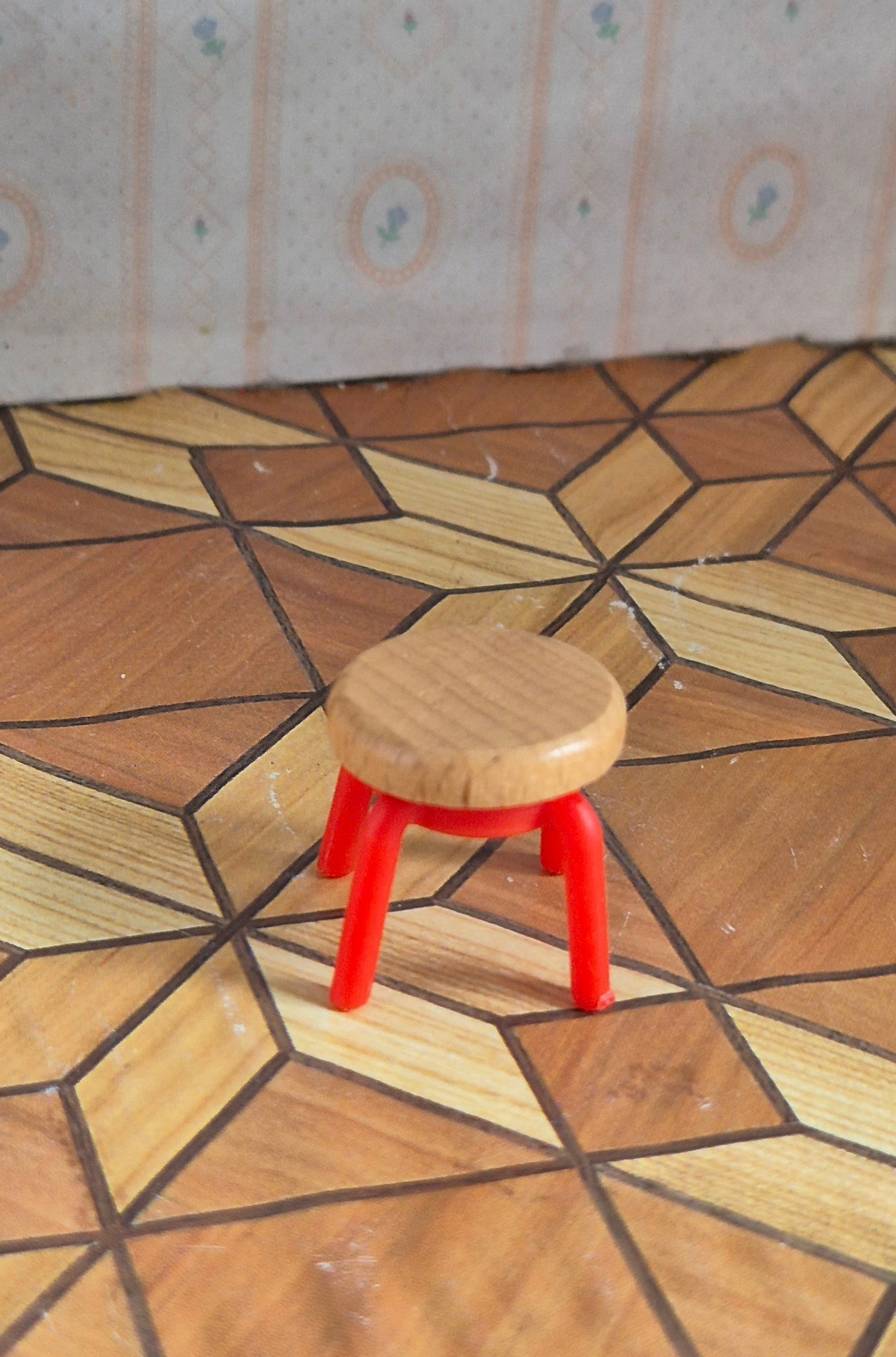 Lille fin taburet til Djeco dukkehus børneværelset.