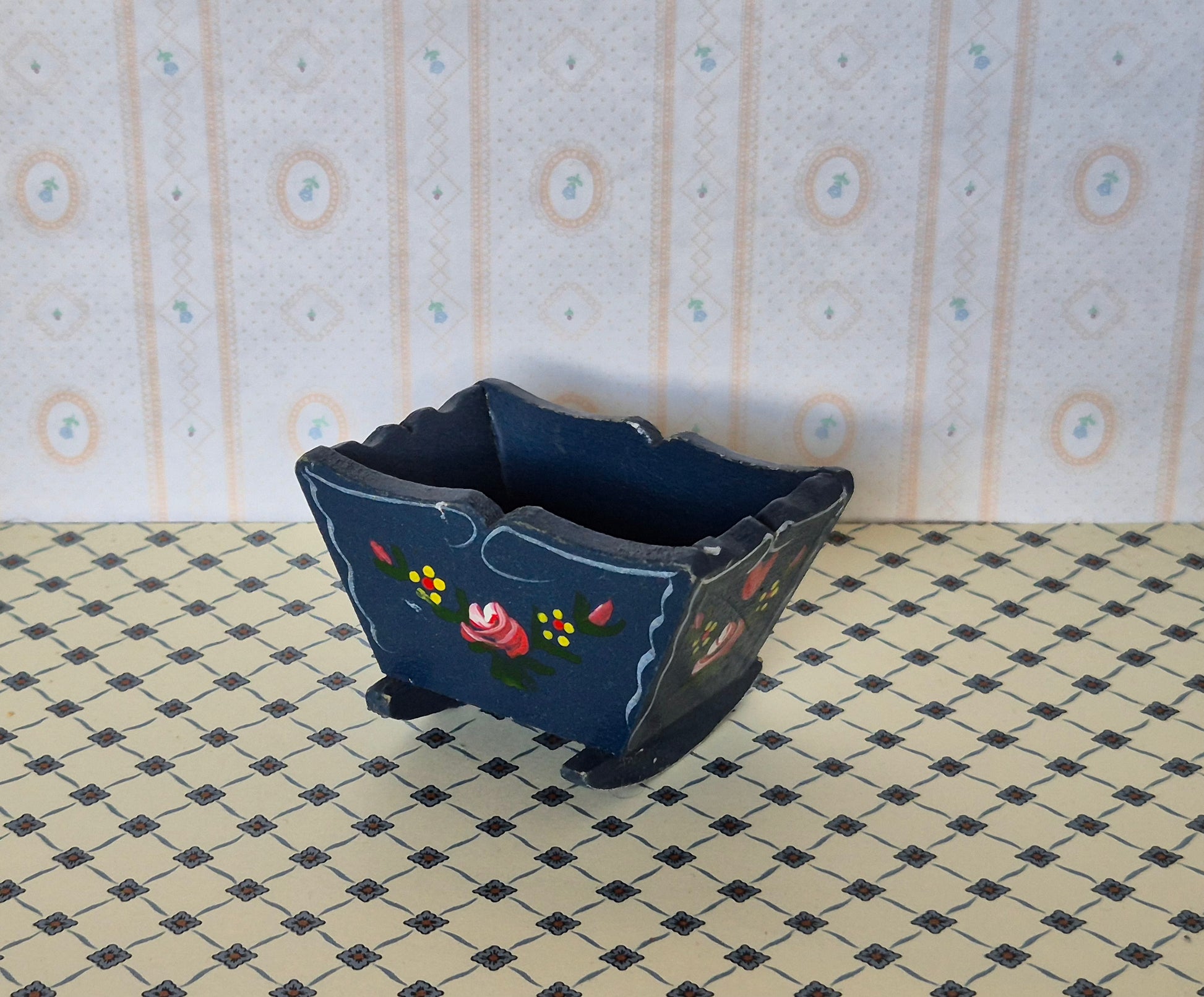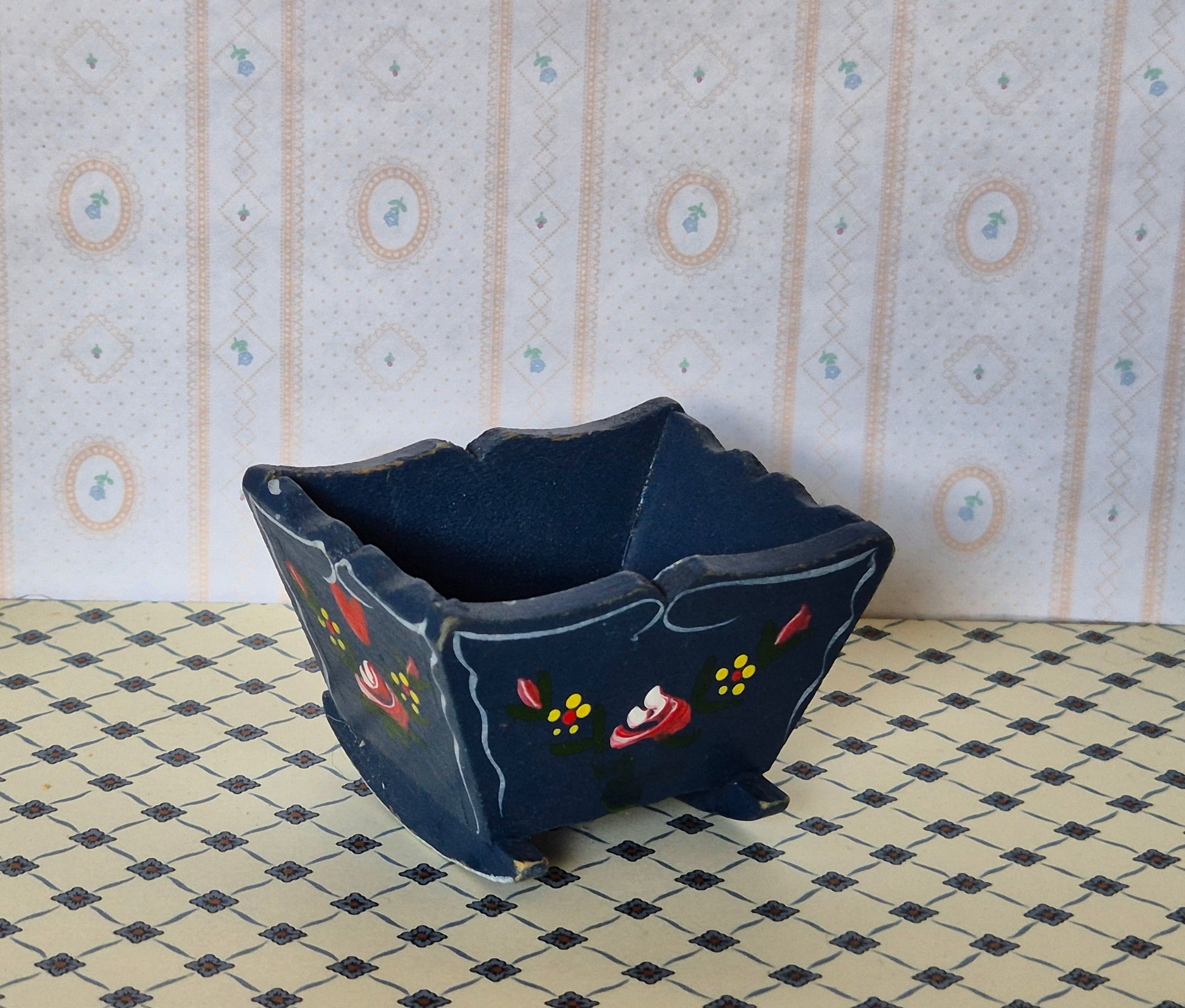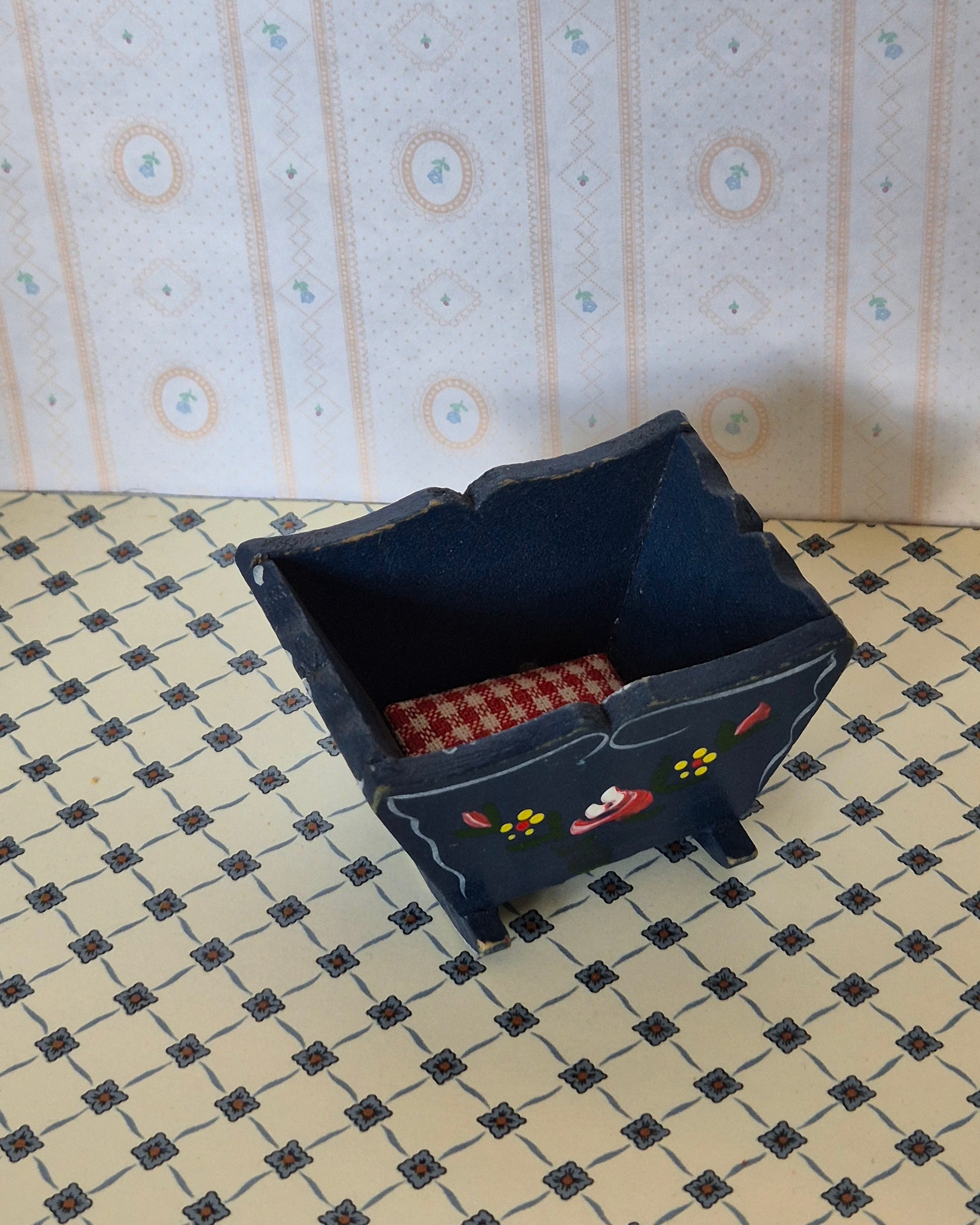 Mørkeblå Dora Kuhn vugge der kan passe til 1:16 - 1:12. Pæn og fin stand. Almue stil.