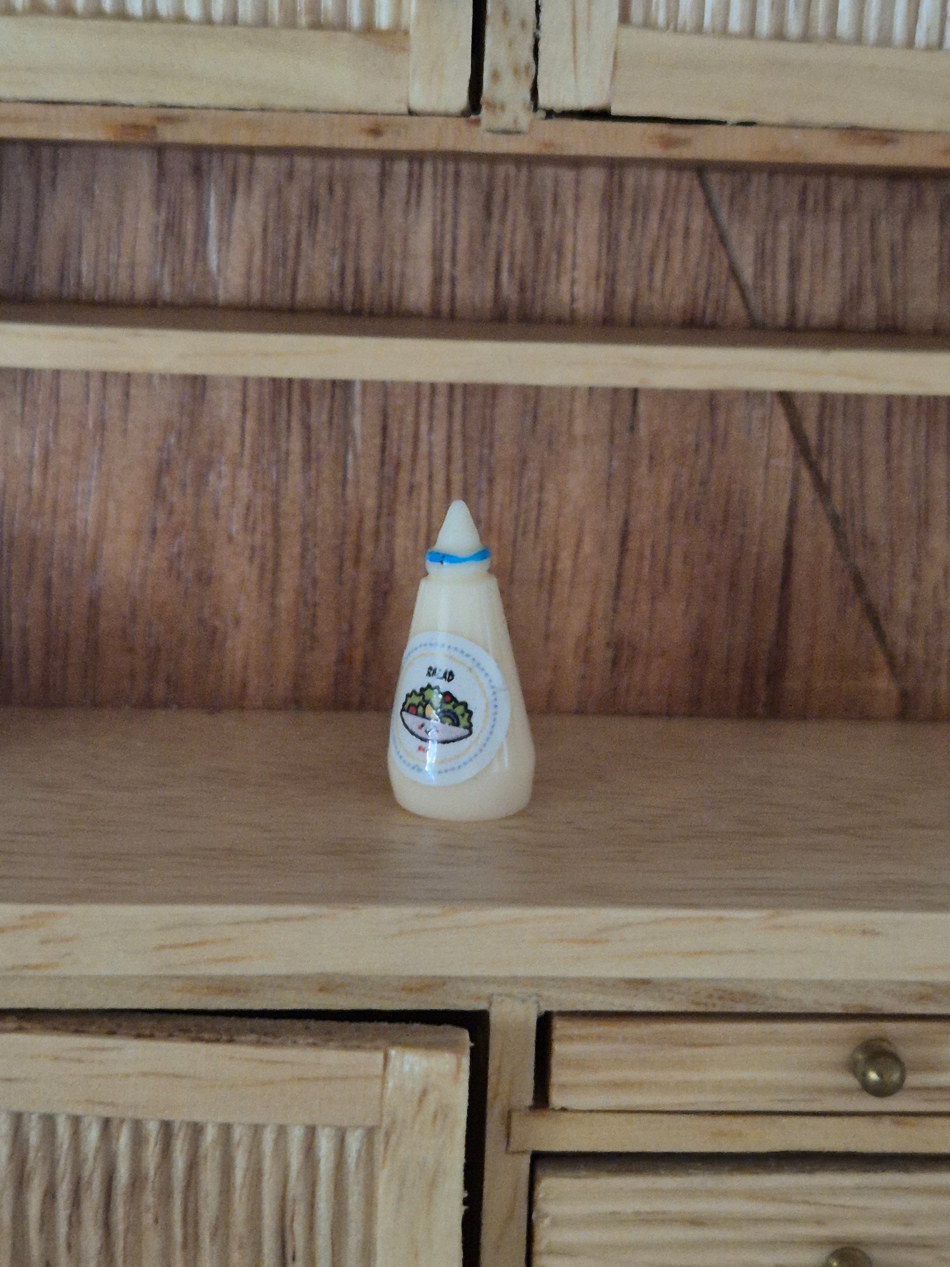 Flaske / tube med dressing eller mayonnaise til dukkehuset. dyppelse