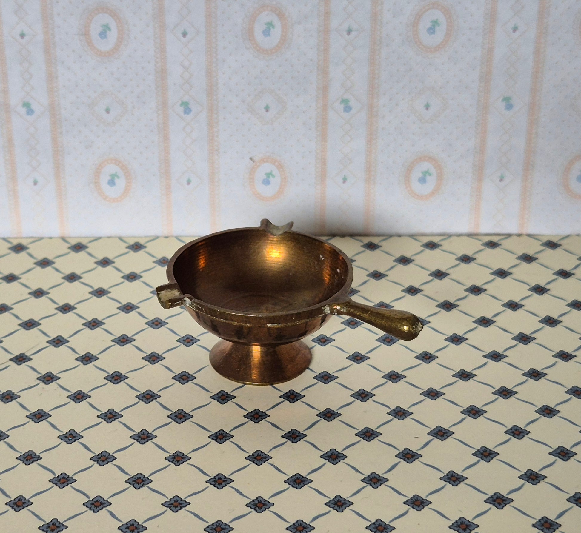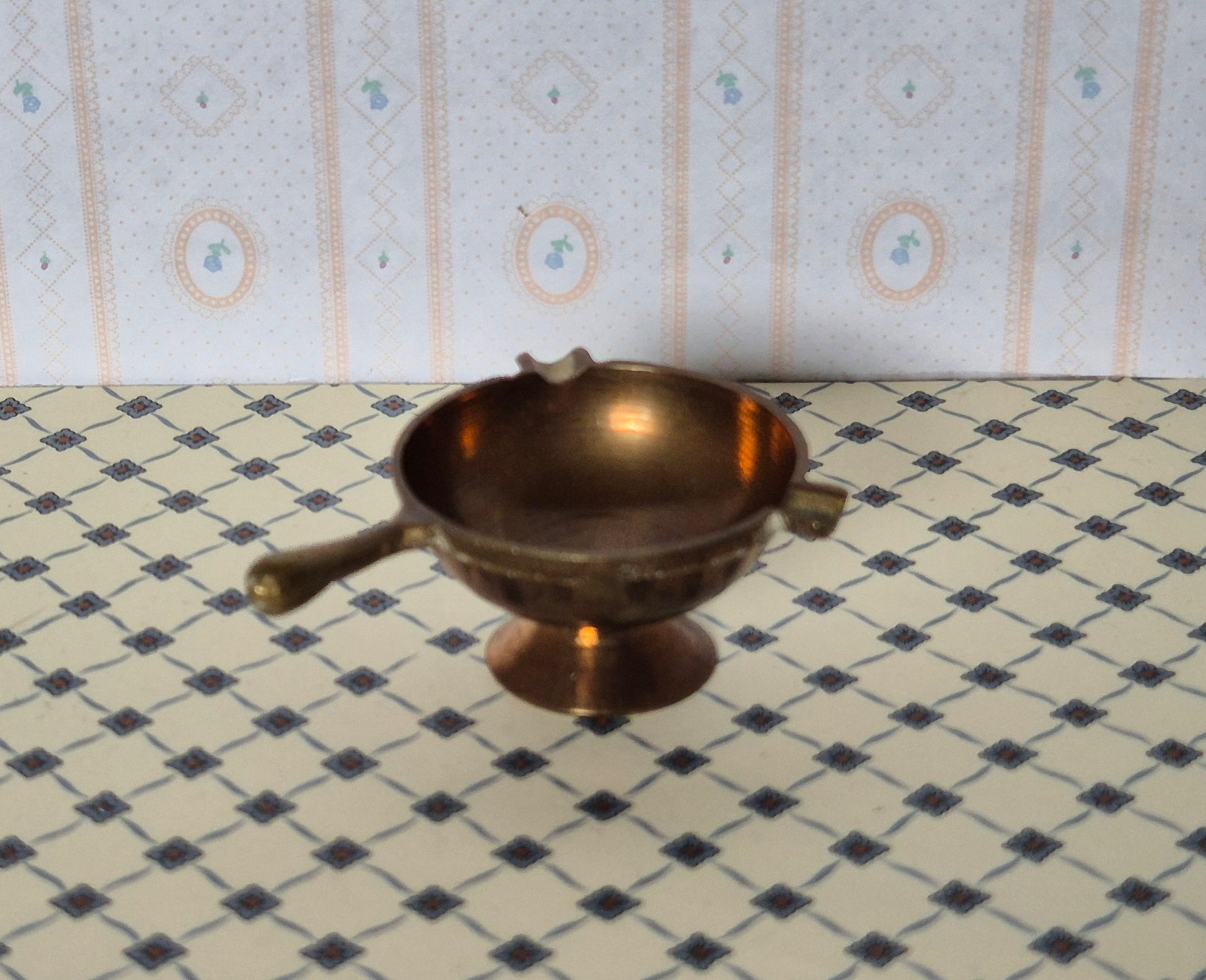 Større fad på fod med håndtag i messing / metal. Der er en del patina og brugsspor. Trænger til at blive pudset.