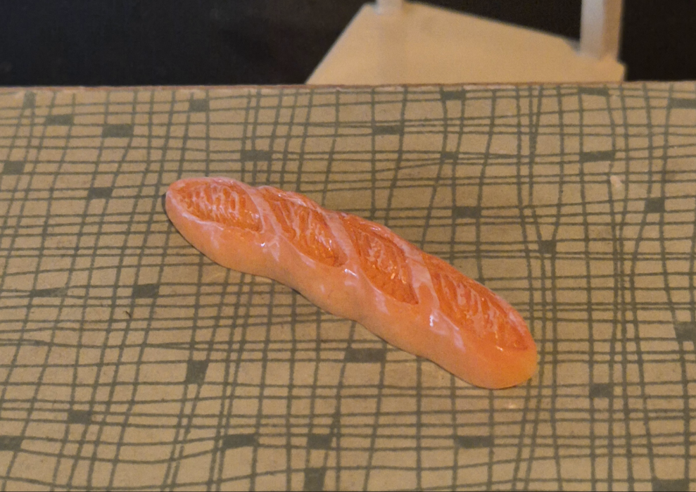 Godt langt brød, flutes til dukkehuset. Det er lavet af plast. Passer bedst til 1:12.