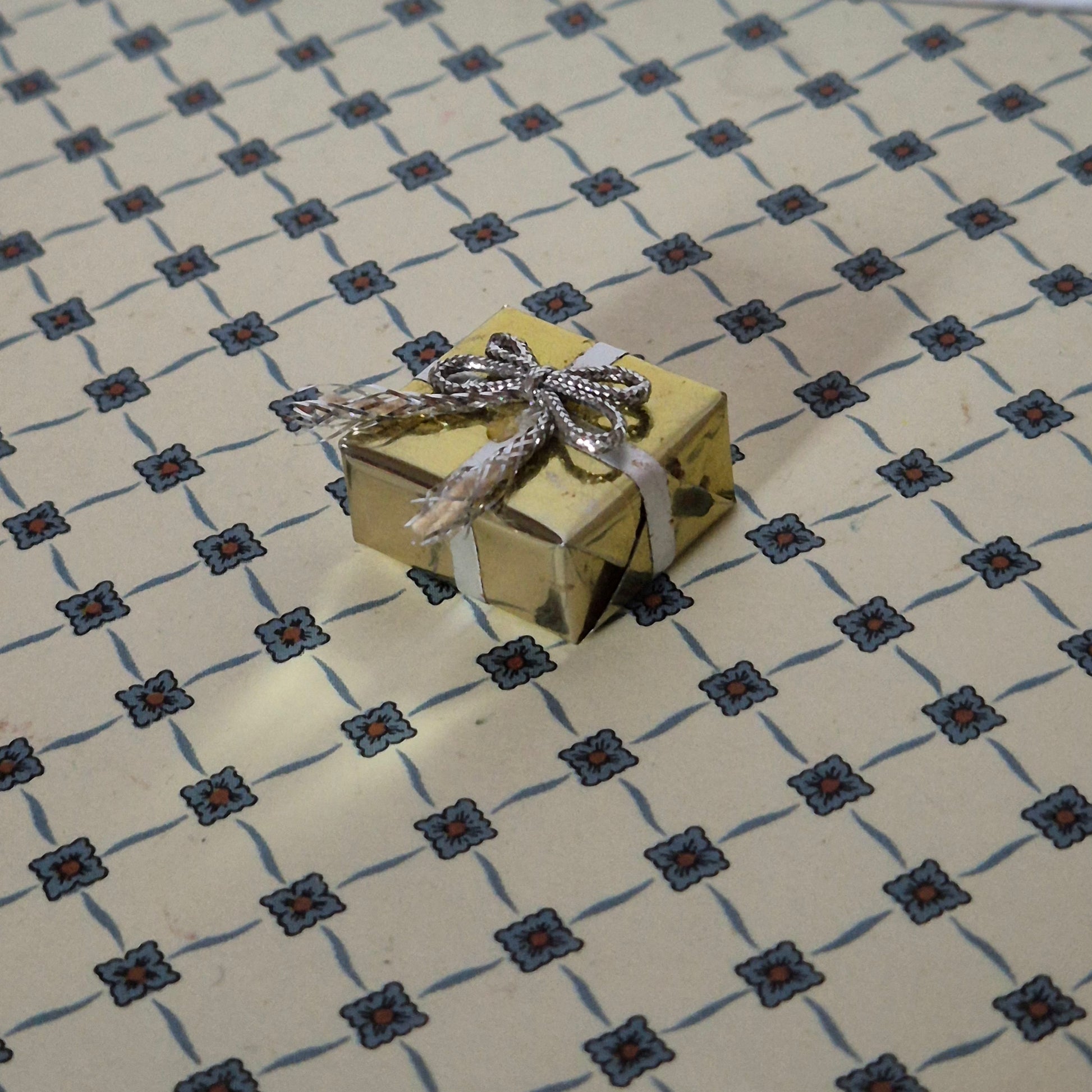 God gave i gyldent skinnende papir med sølv-bånd. Den er pæn og i god stand.