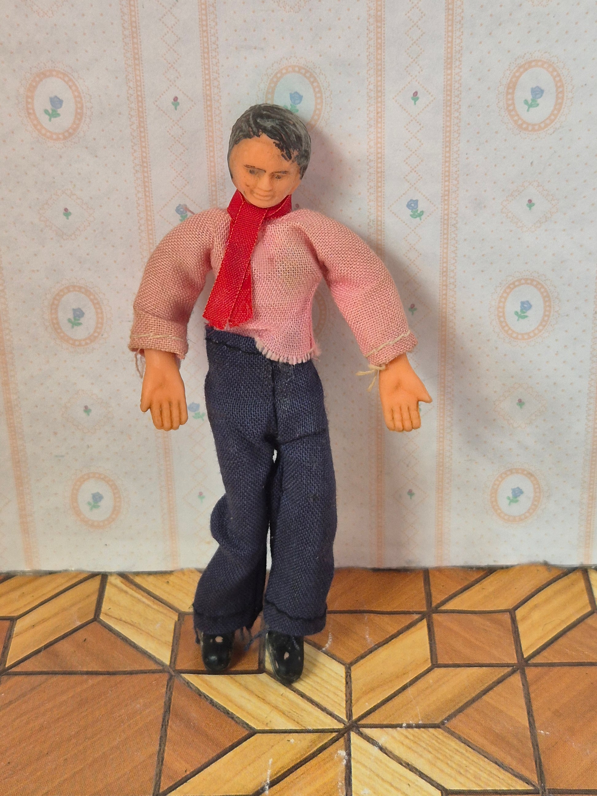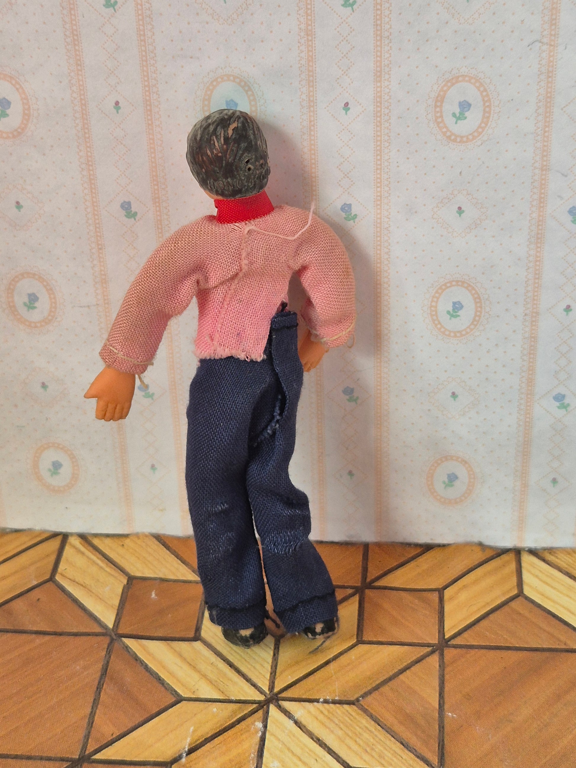 Gummi retro dukke herre 1:18. Den er brugt med patina og slidmærker. Han er godt brugt