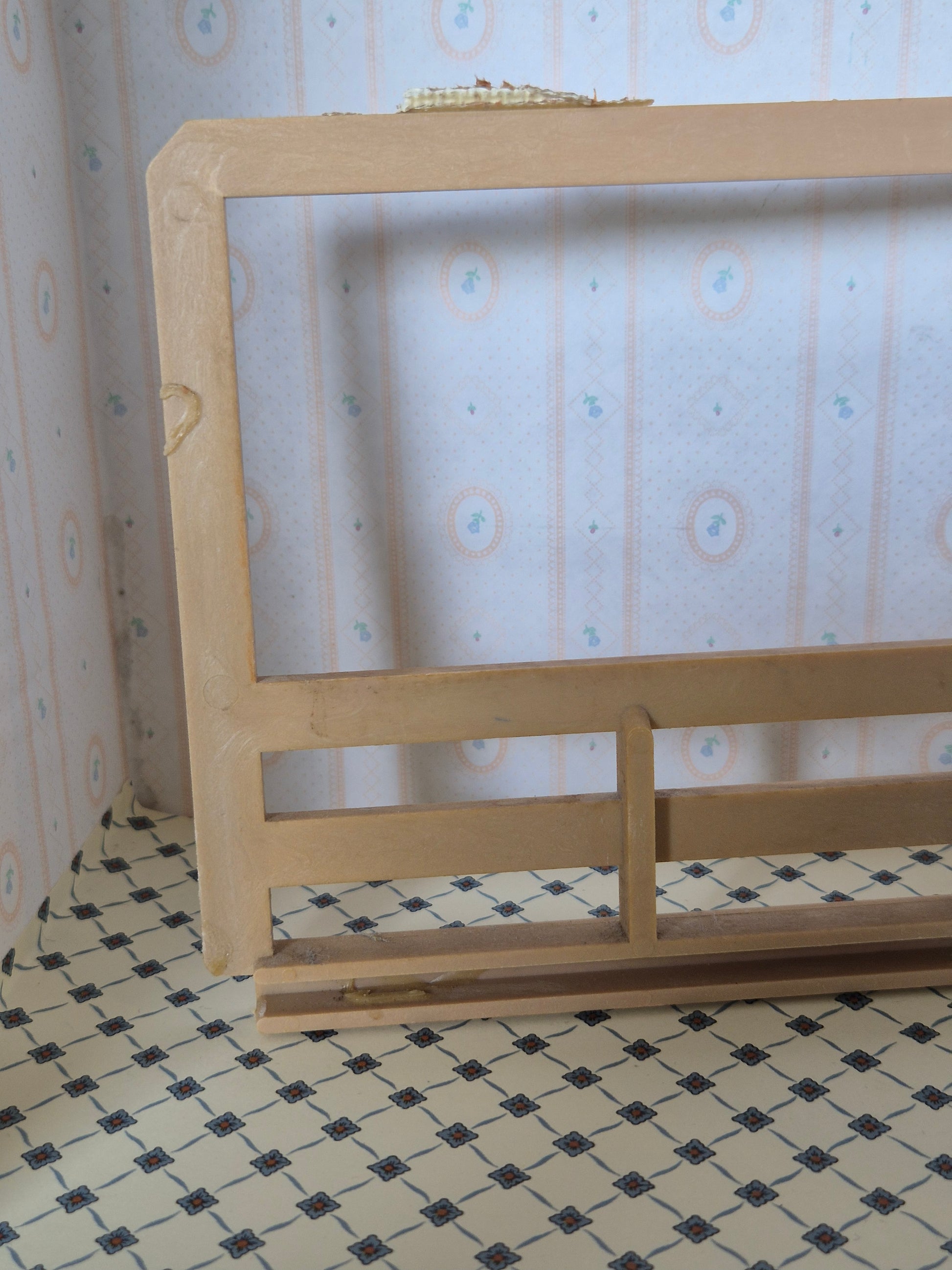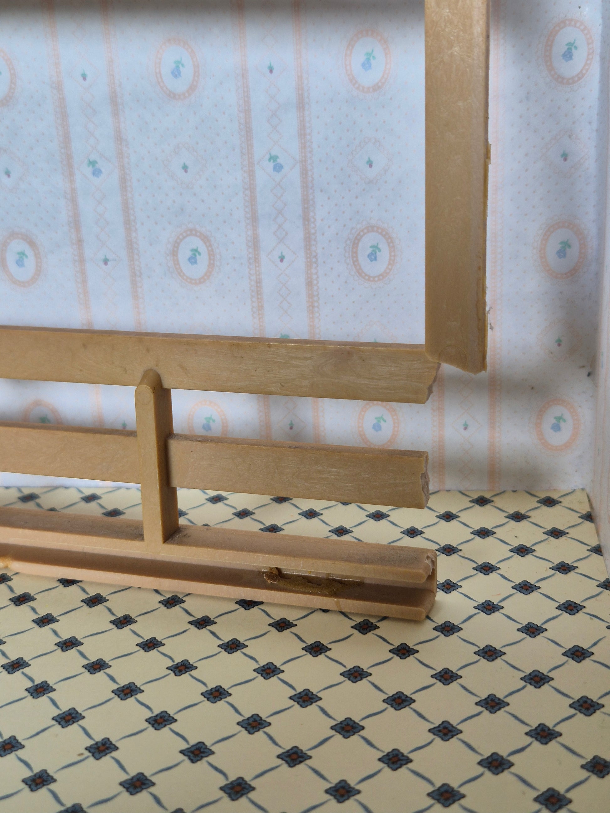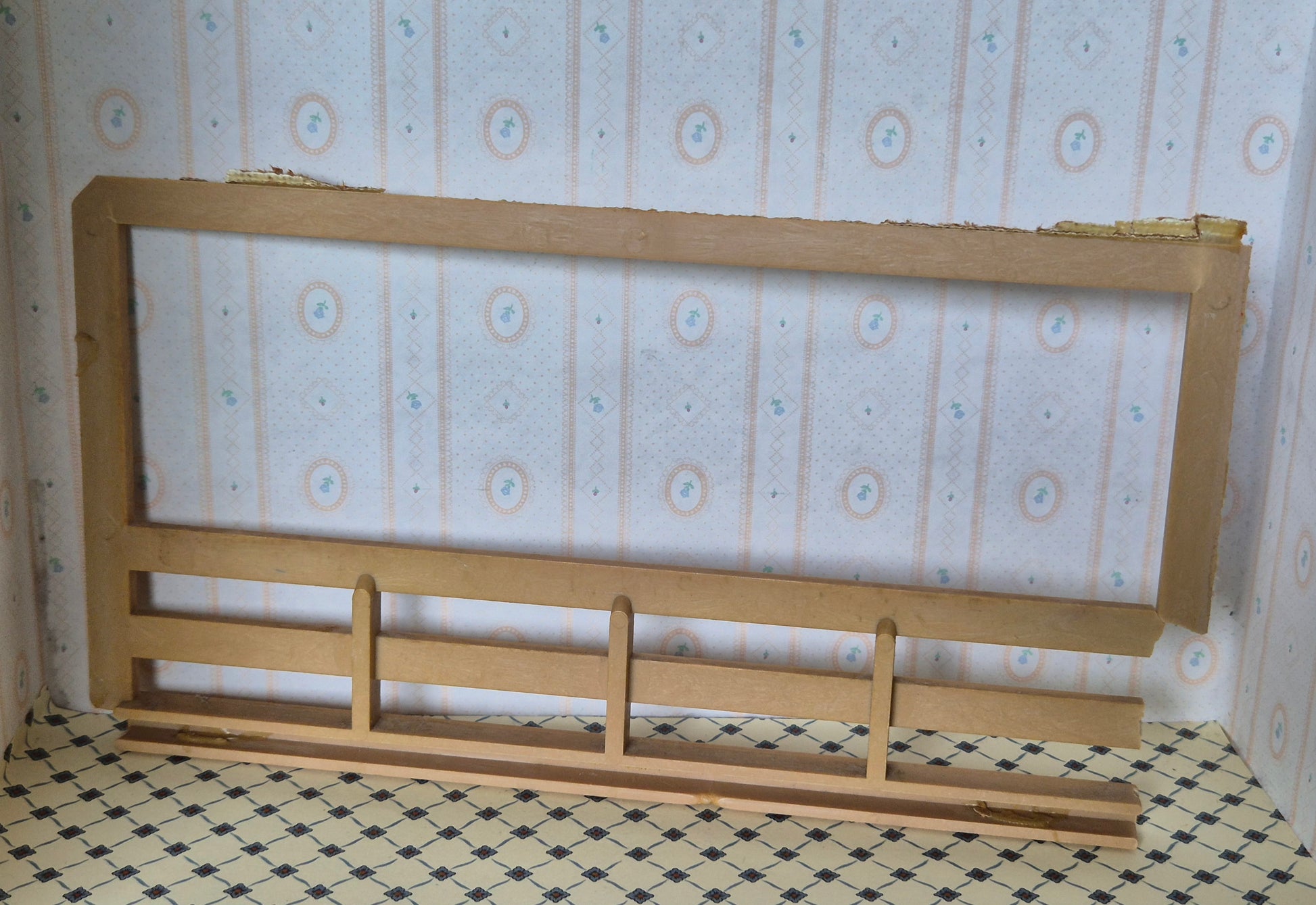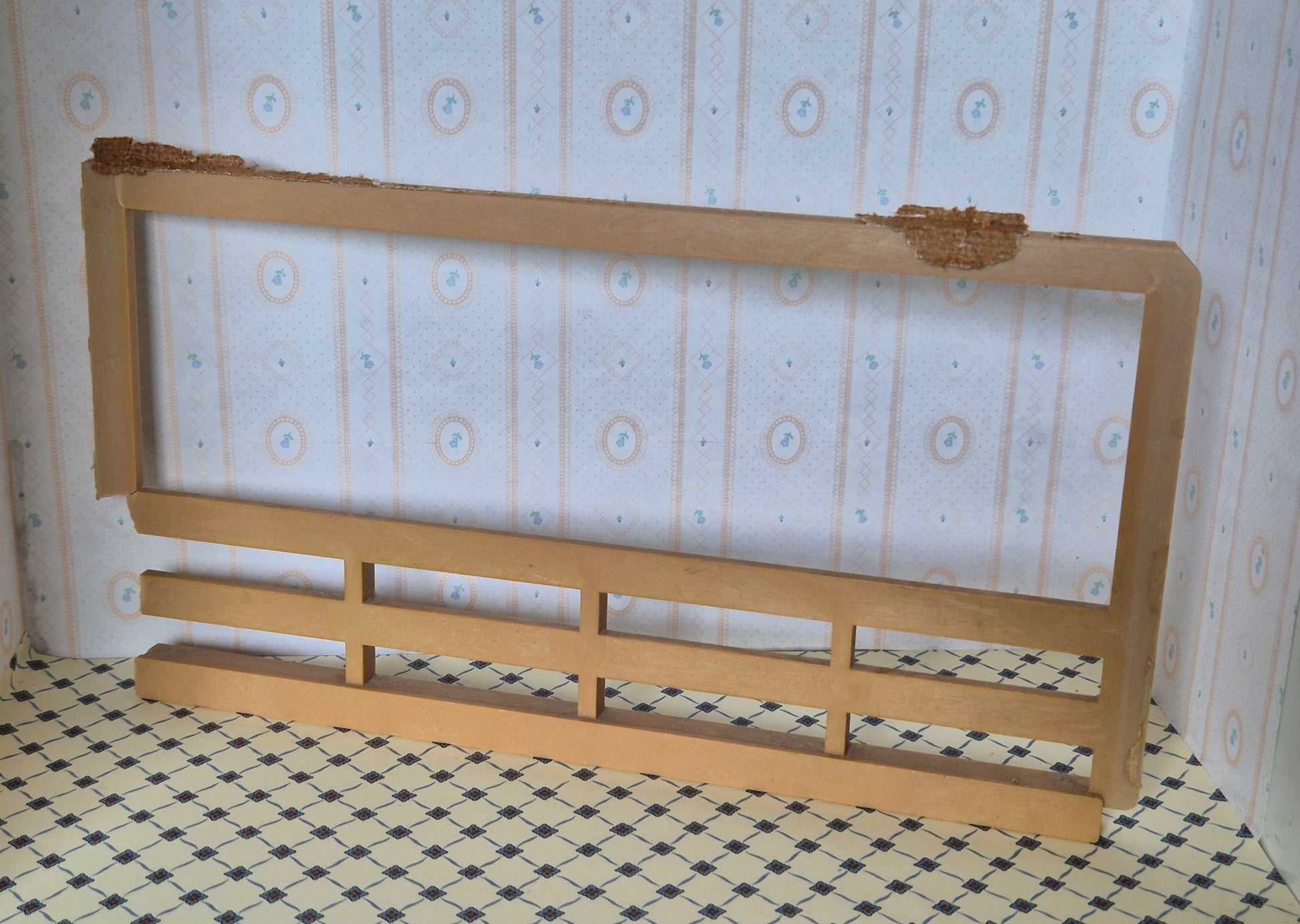 Vintage balkon rækværk, reservedel til Hanse af Skandinavien dukkehus. Det er knækket. Der er brugsspor og patina