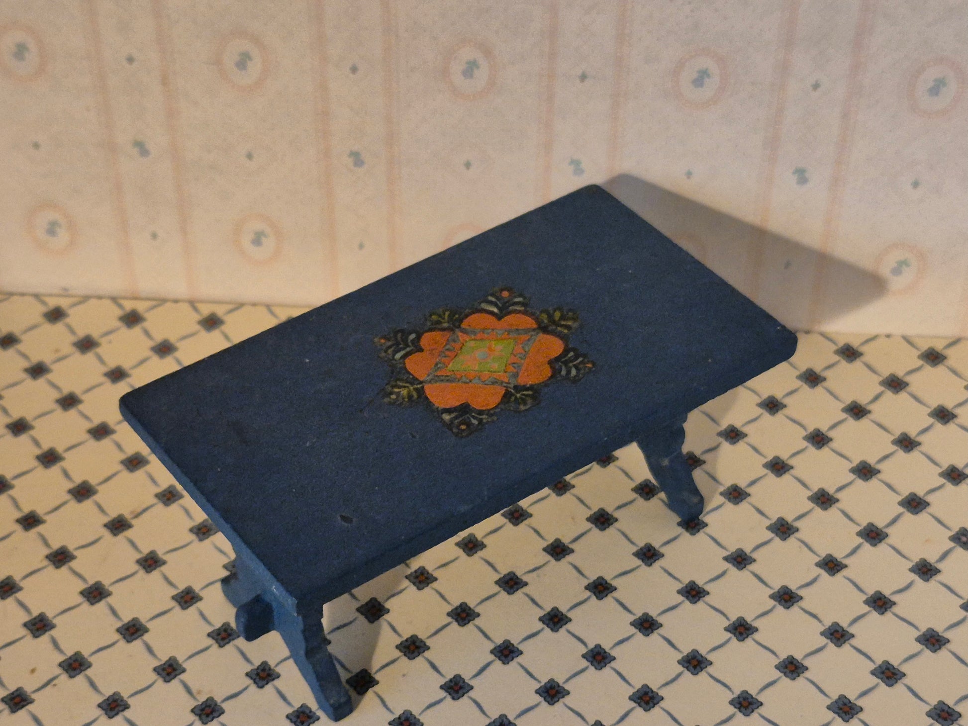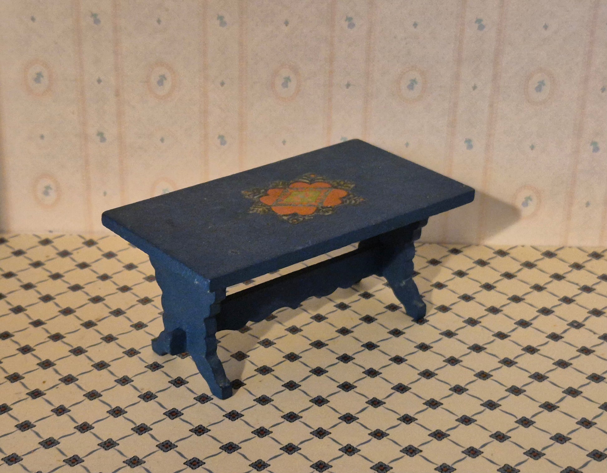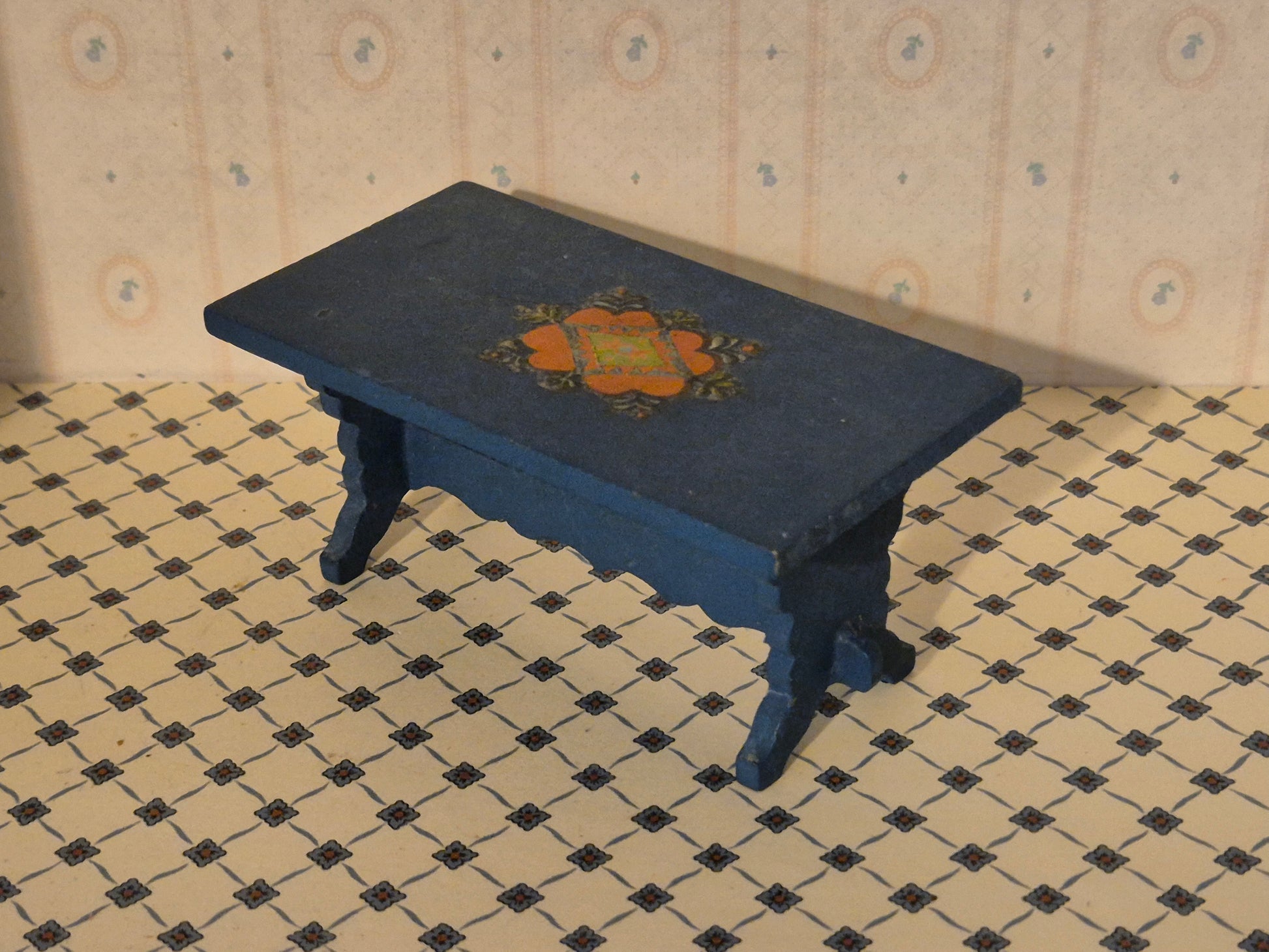 Pæn vintage bord i mørkeblå almue stil af mærket Hanse af Skandinavien. Udmærket stand med patina og brugsspor
