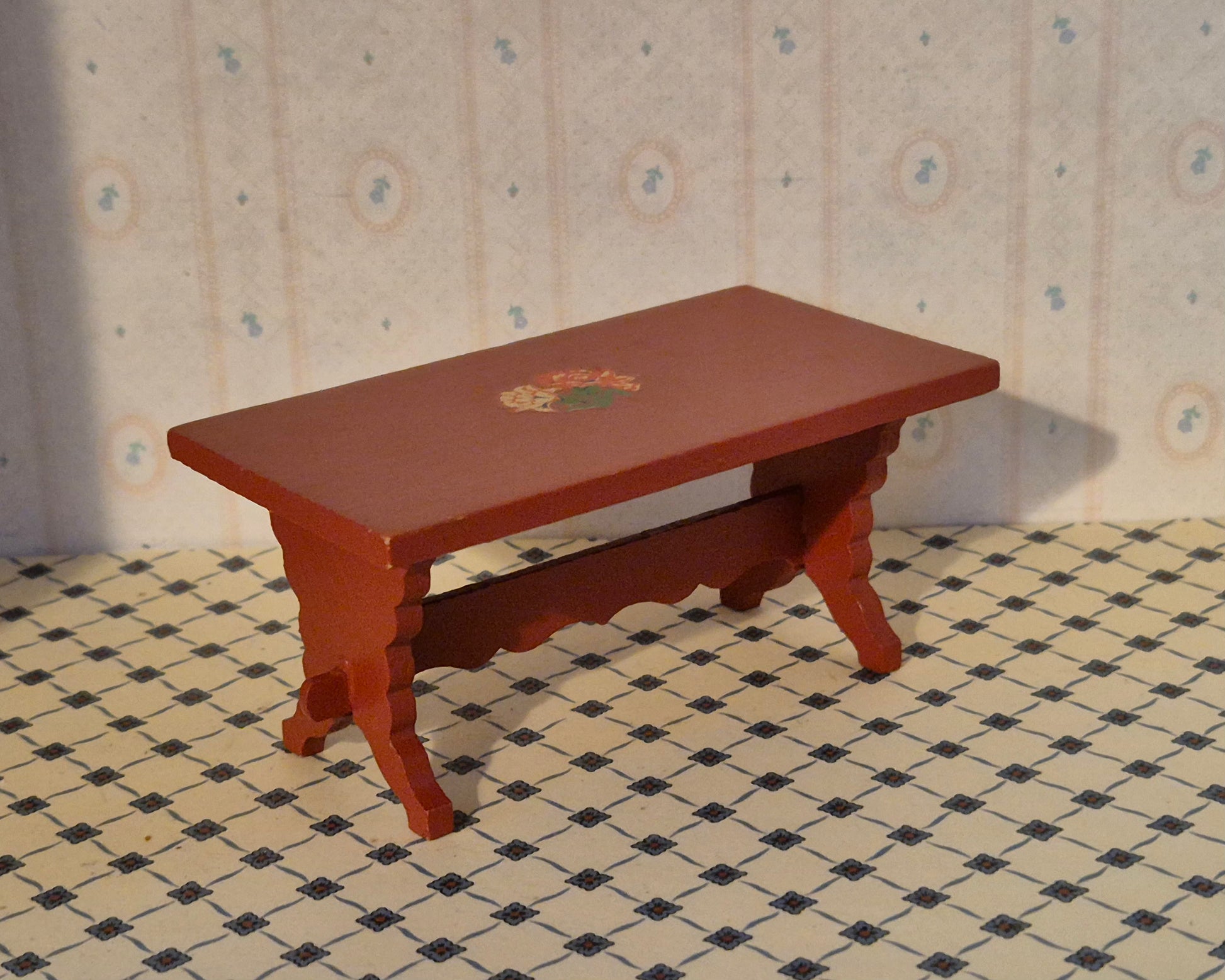 Sjældent rødt almue bord af Hanse af Skandinavien. Det er intakt og originalt.