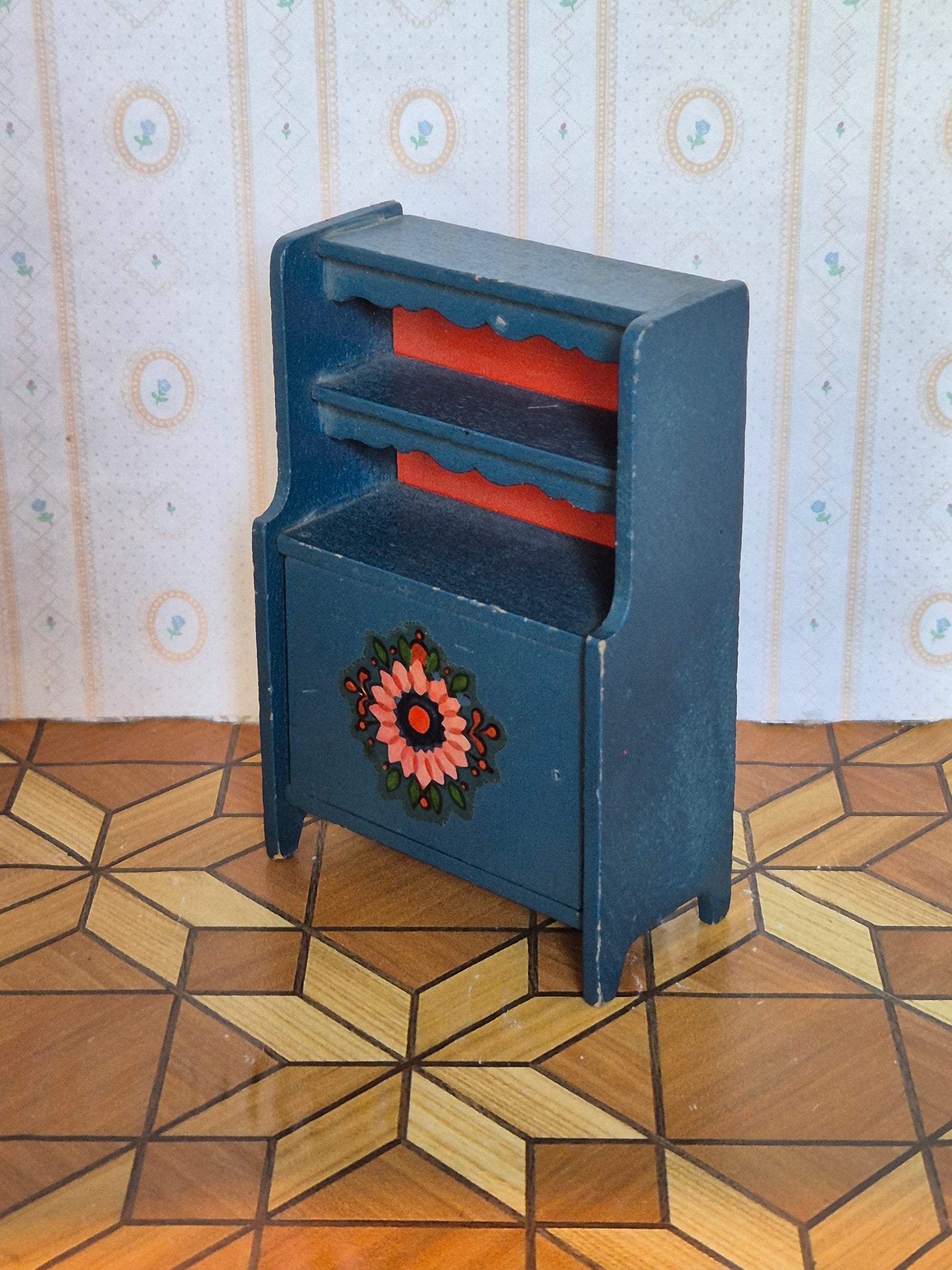 Vintage Mørkeblåt Hanse skab. Udmærket stand, patina må forventes og lågegreb mangler.