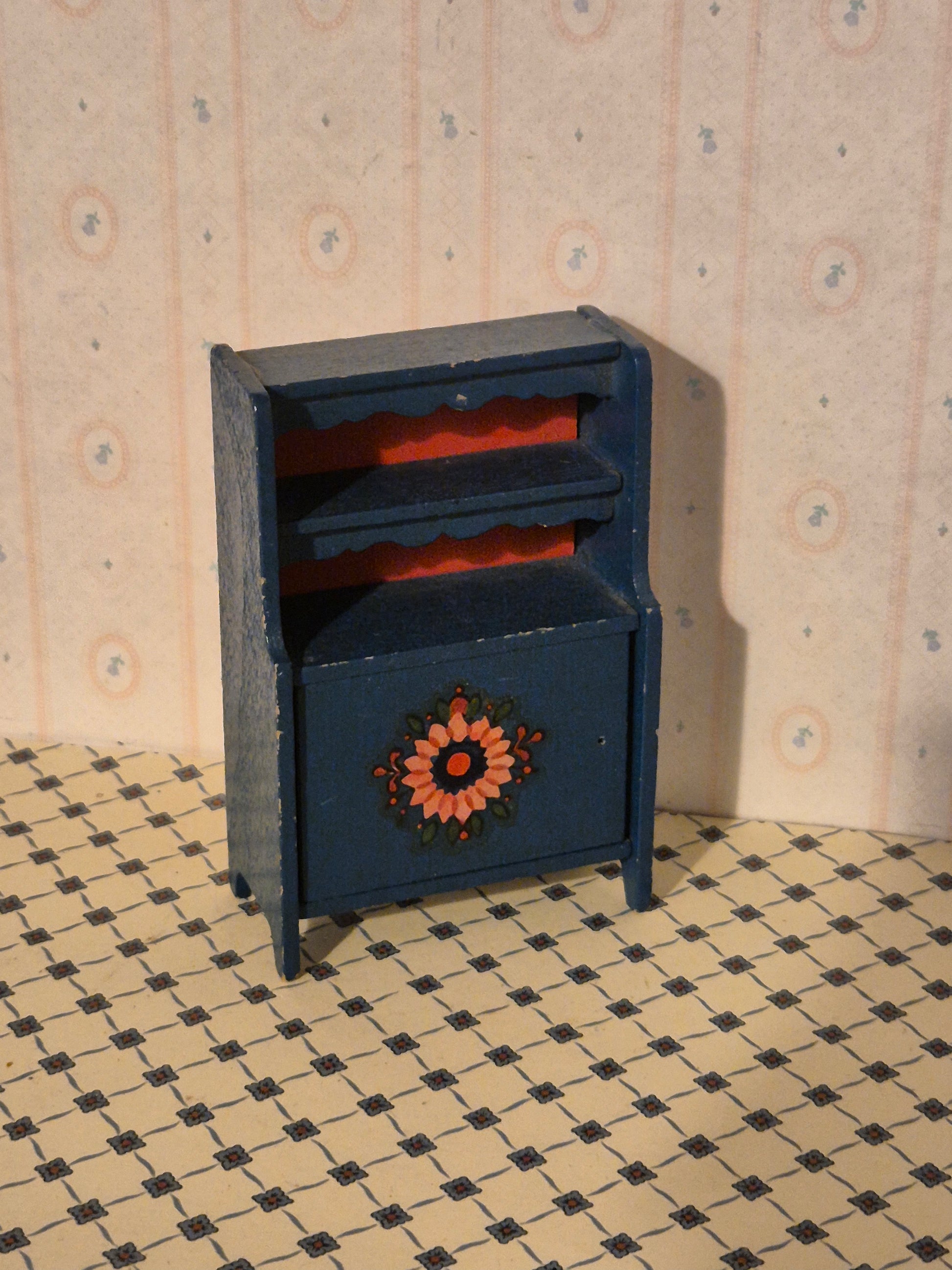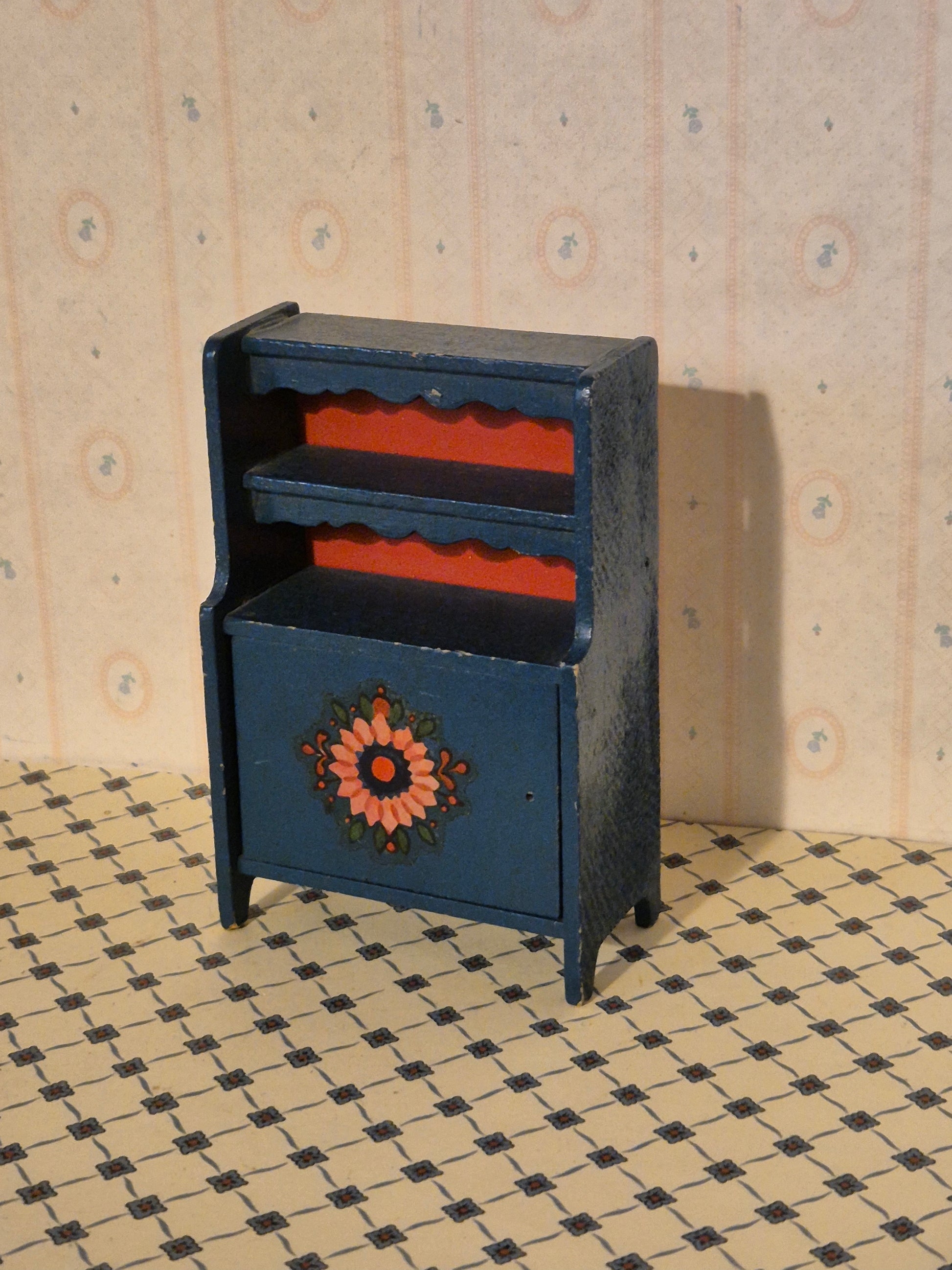 Pænt Mørkeblåt almue skab af træ.