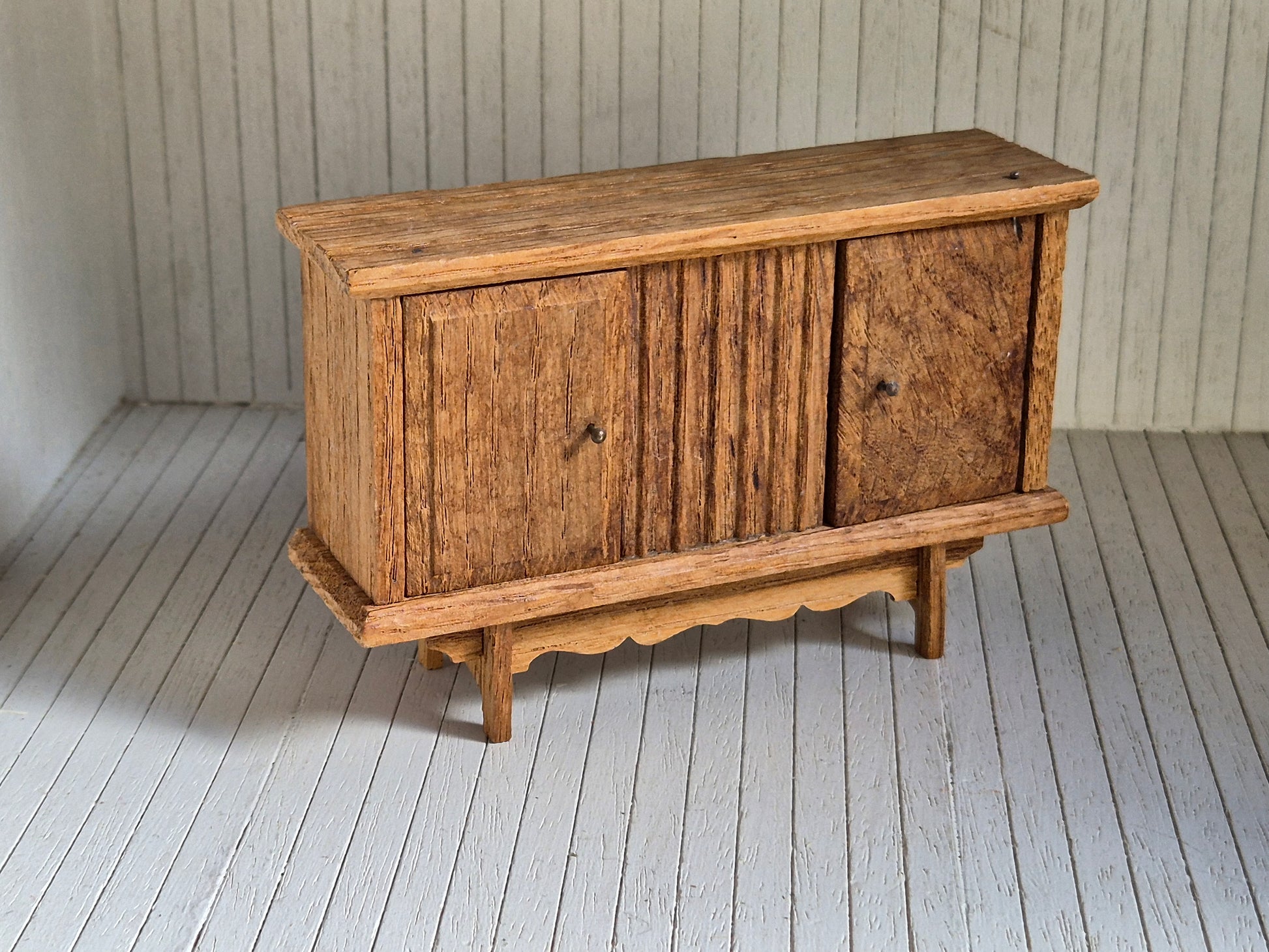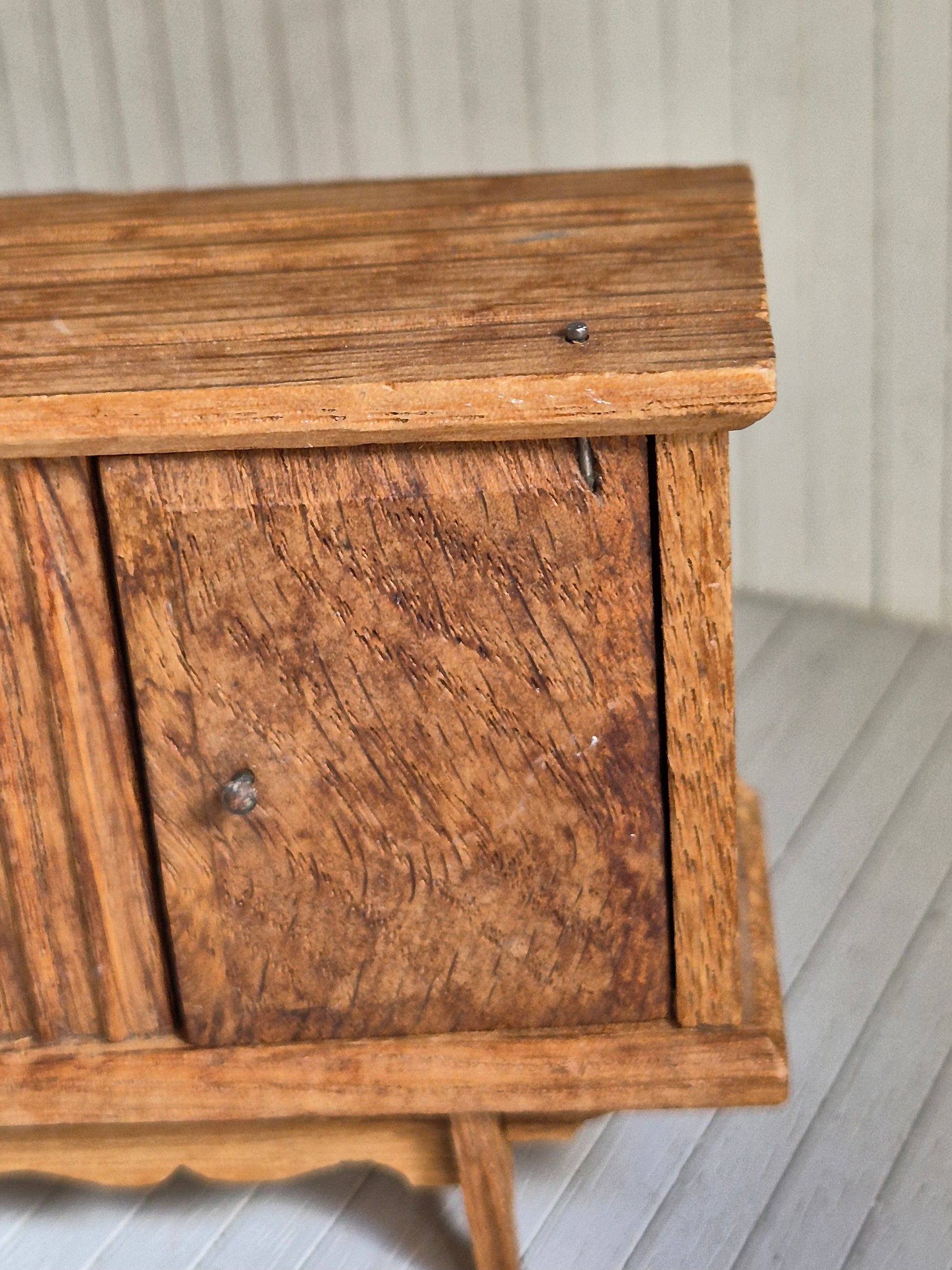 Den er brugt og der er en del patina. Ellers et pænt møbel.