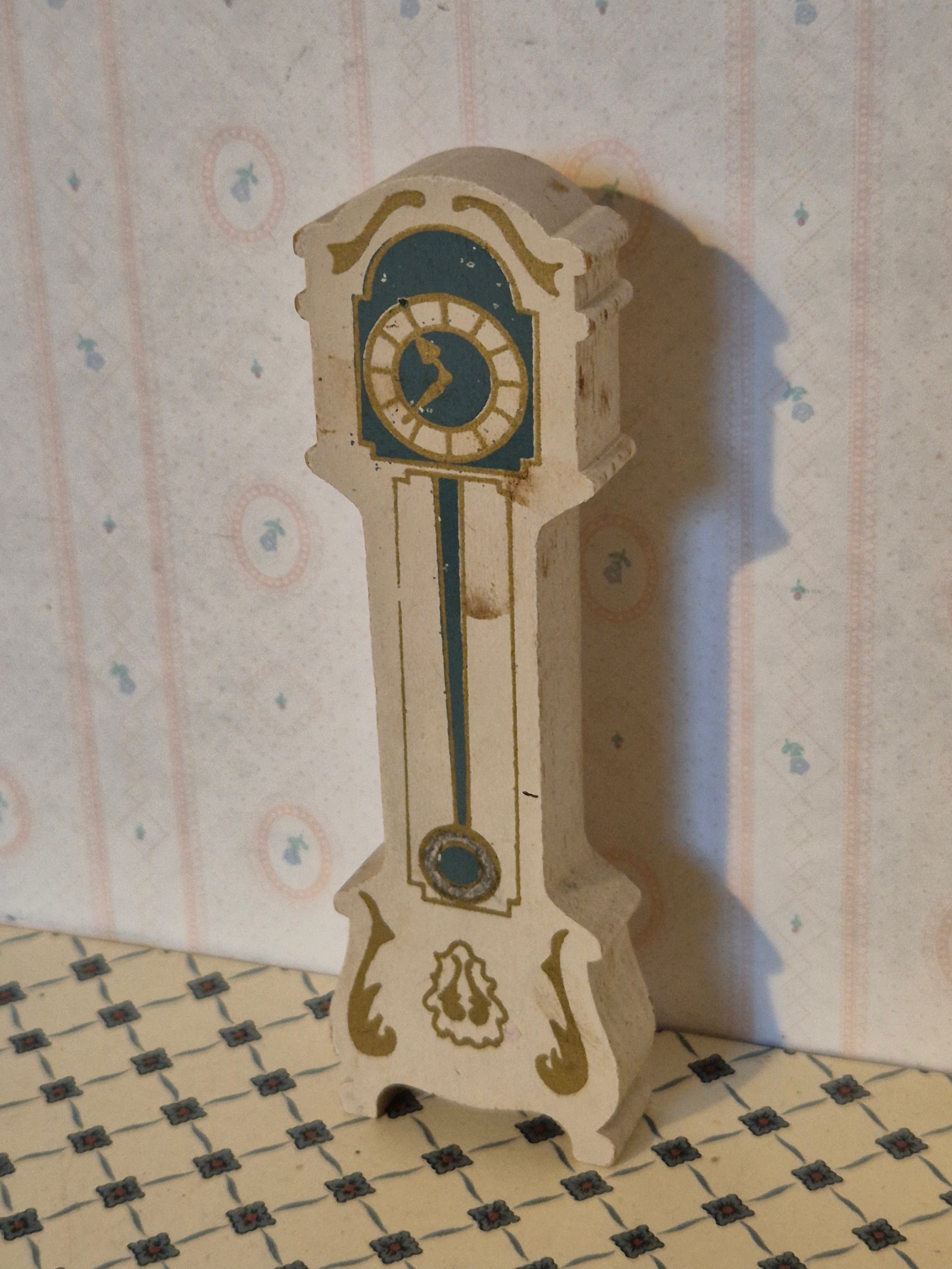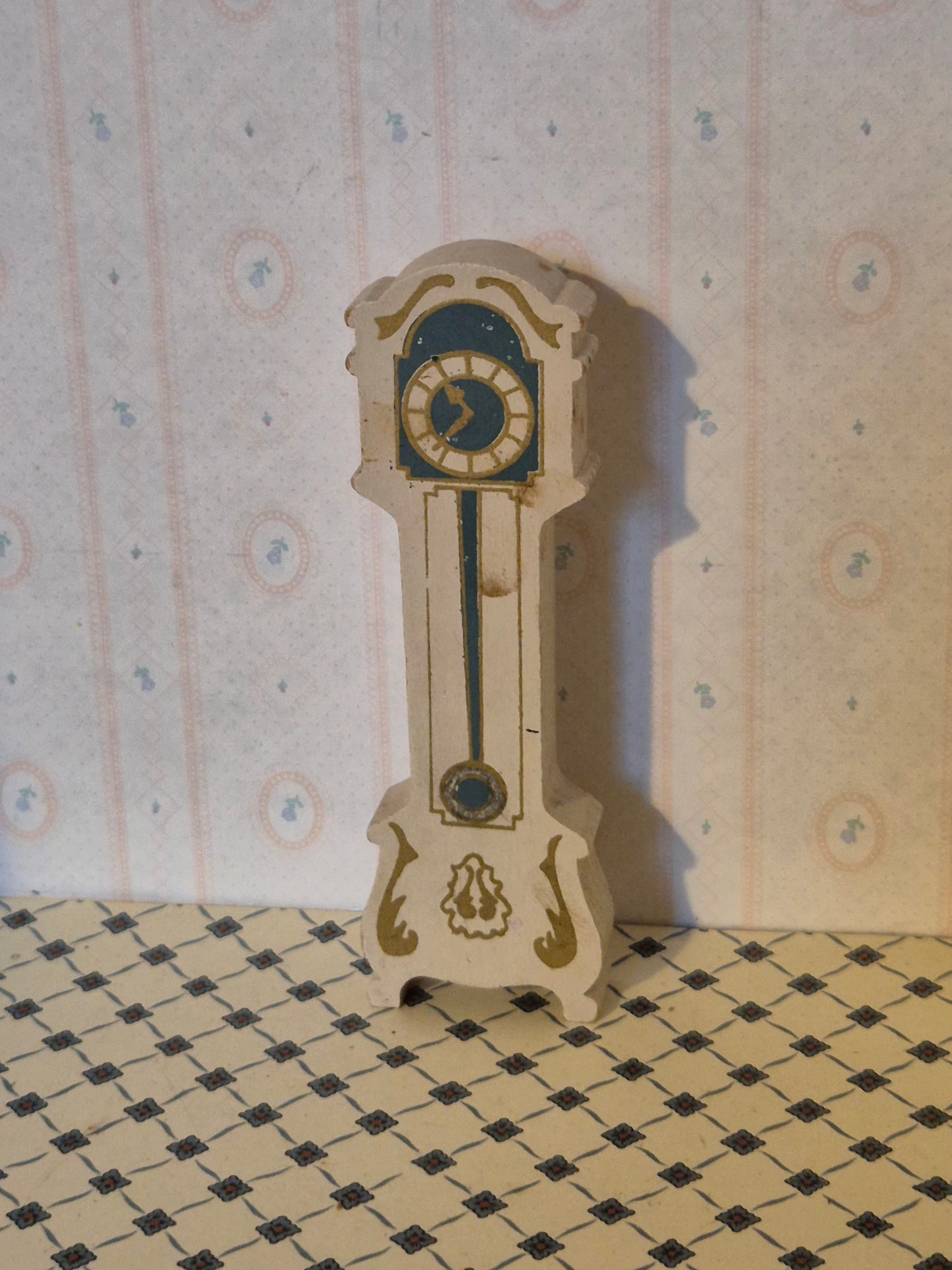 Pænt og godt 1:16 dukkehus Ur af mærket Hanse af Skandinavien. Det har pæn udskæring og fine detaljer. Udmærket stand med patina og brugsspor
