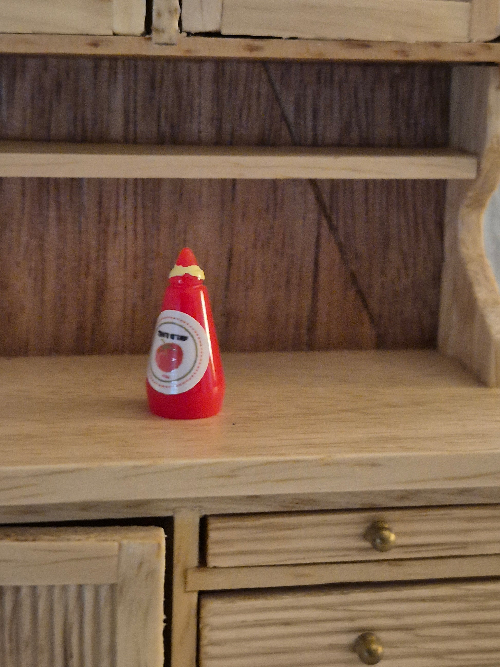 Tube / flaske ketchup til dukkehuset. Madvarer.