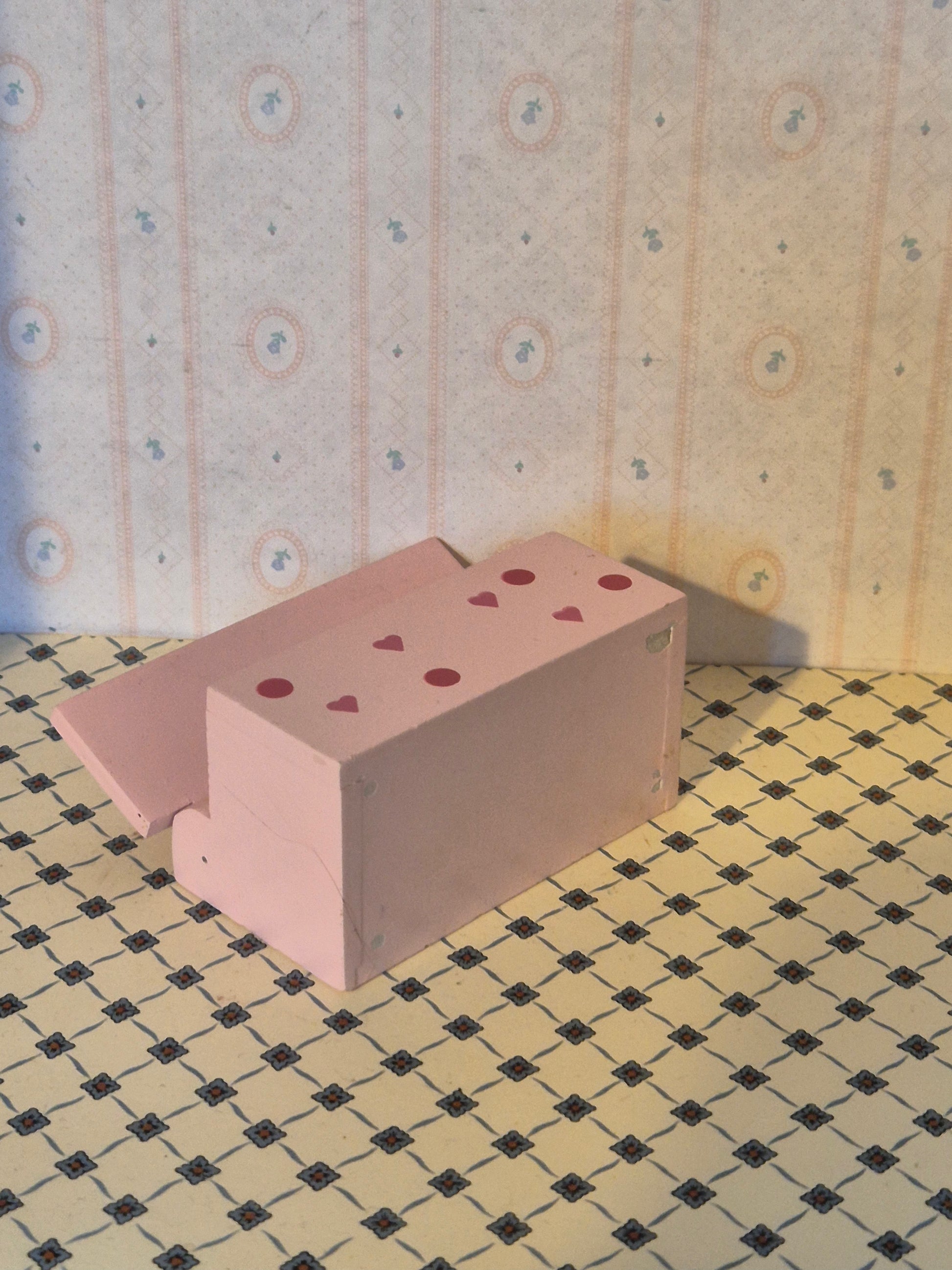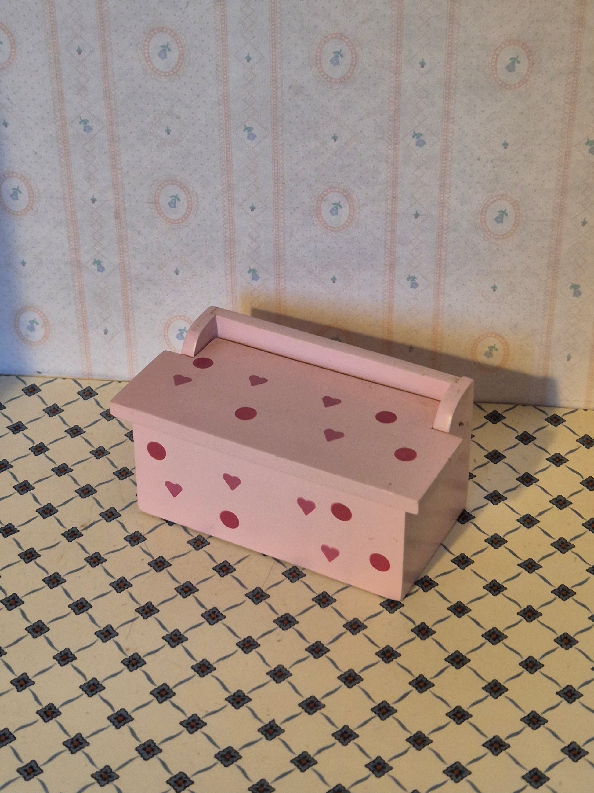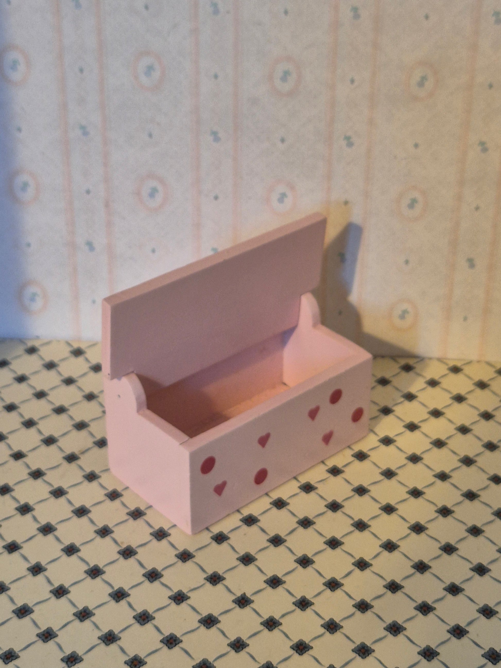 Kiste af træ med hjerter. Pæn. Passer til 1:16 - 1:12.