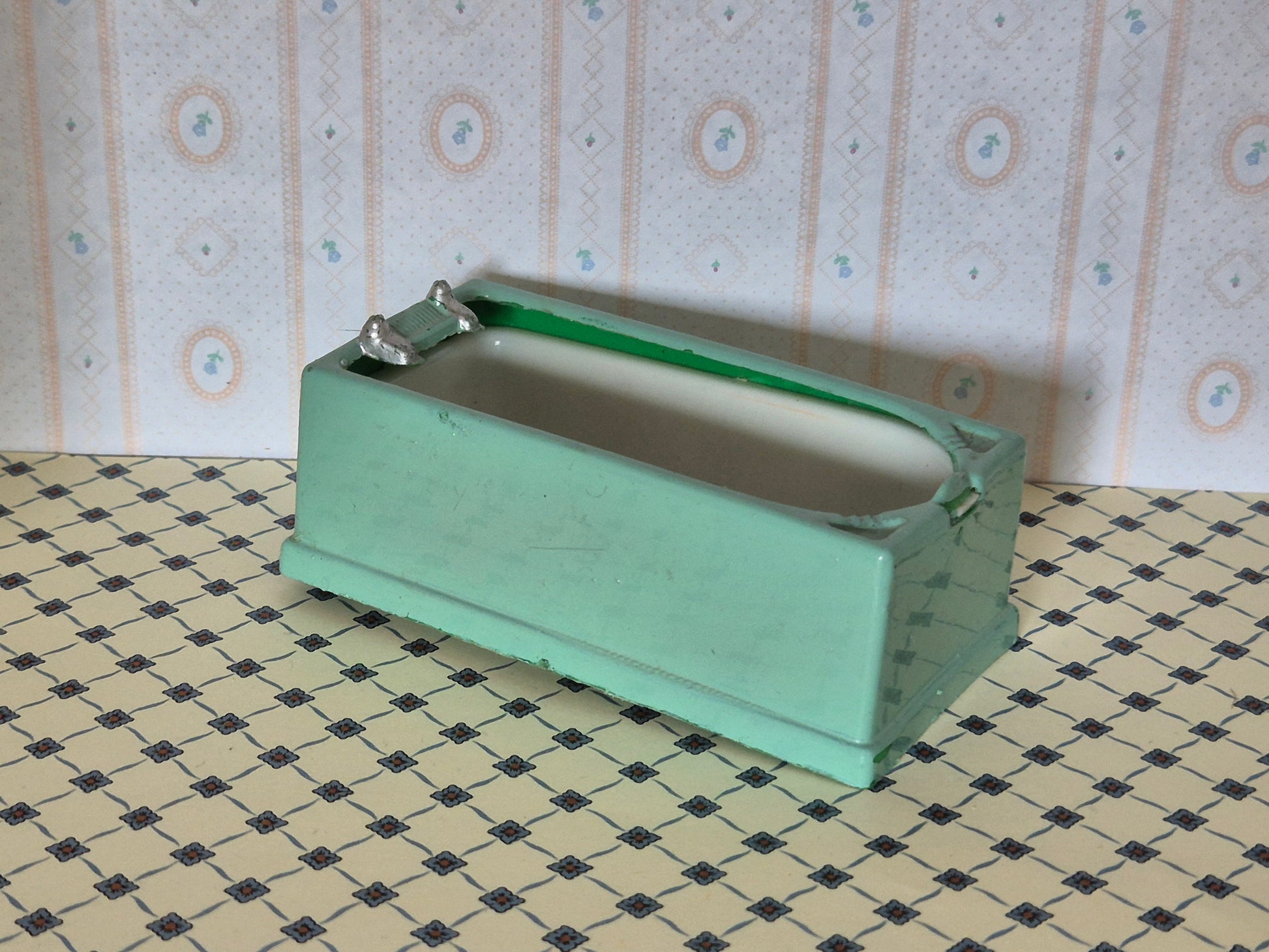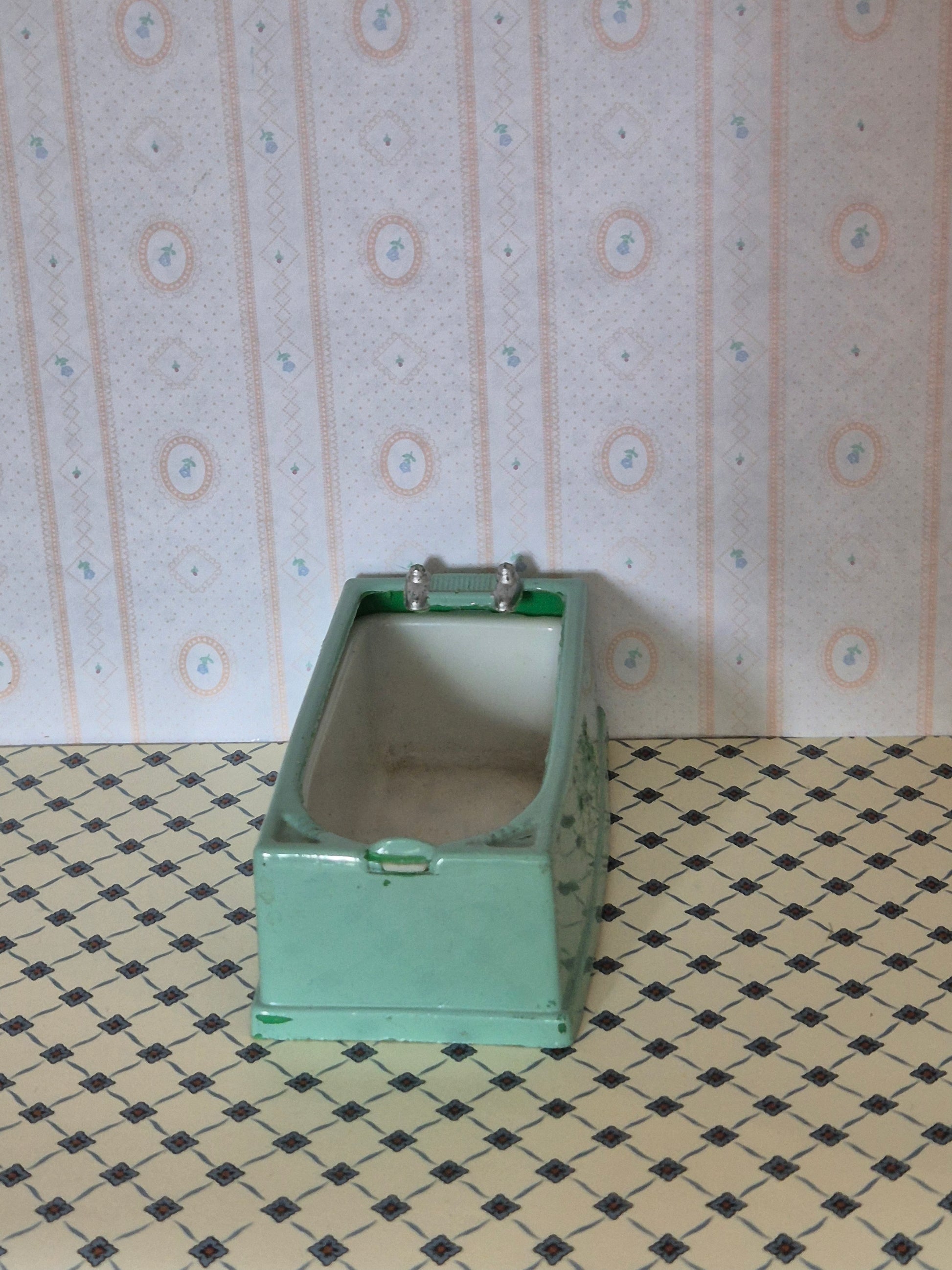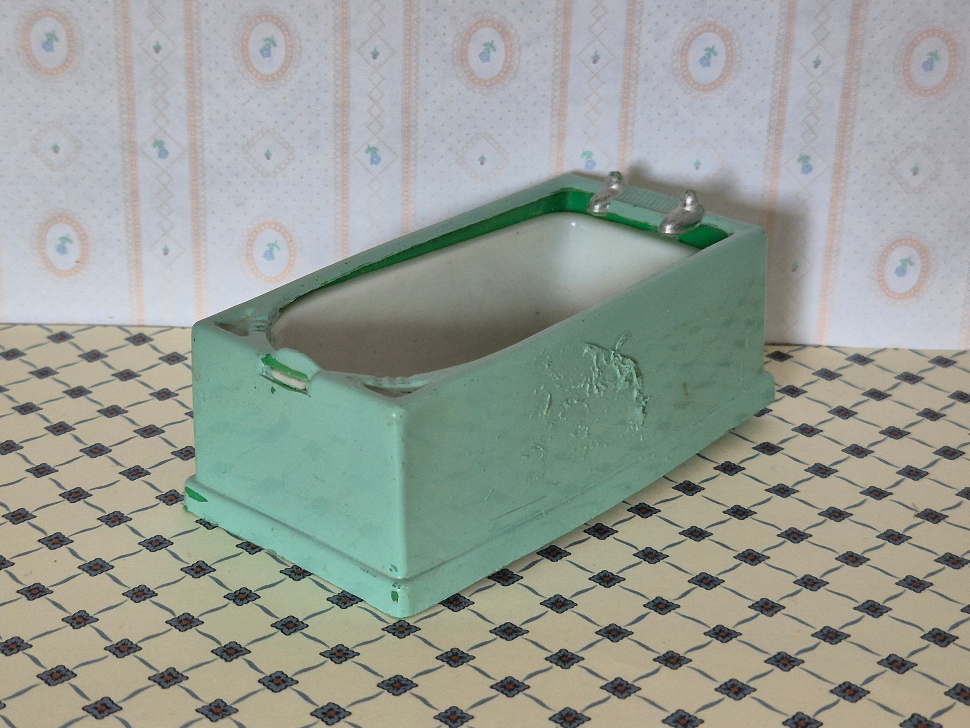 Vintage Kleeware badekar i 1:16. Det er blevet malet. Oprindeligt var det mørkegrønt, som kan ses flere steder.