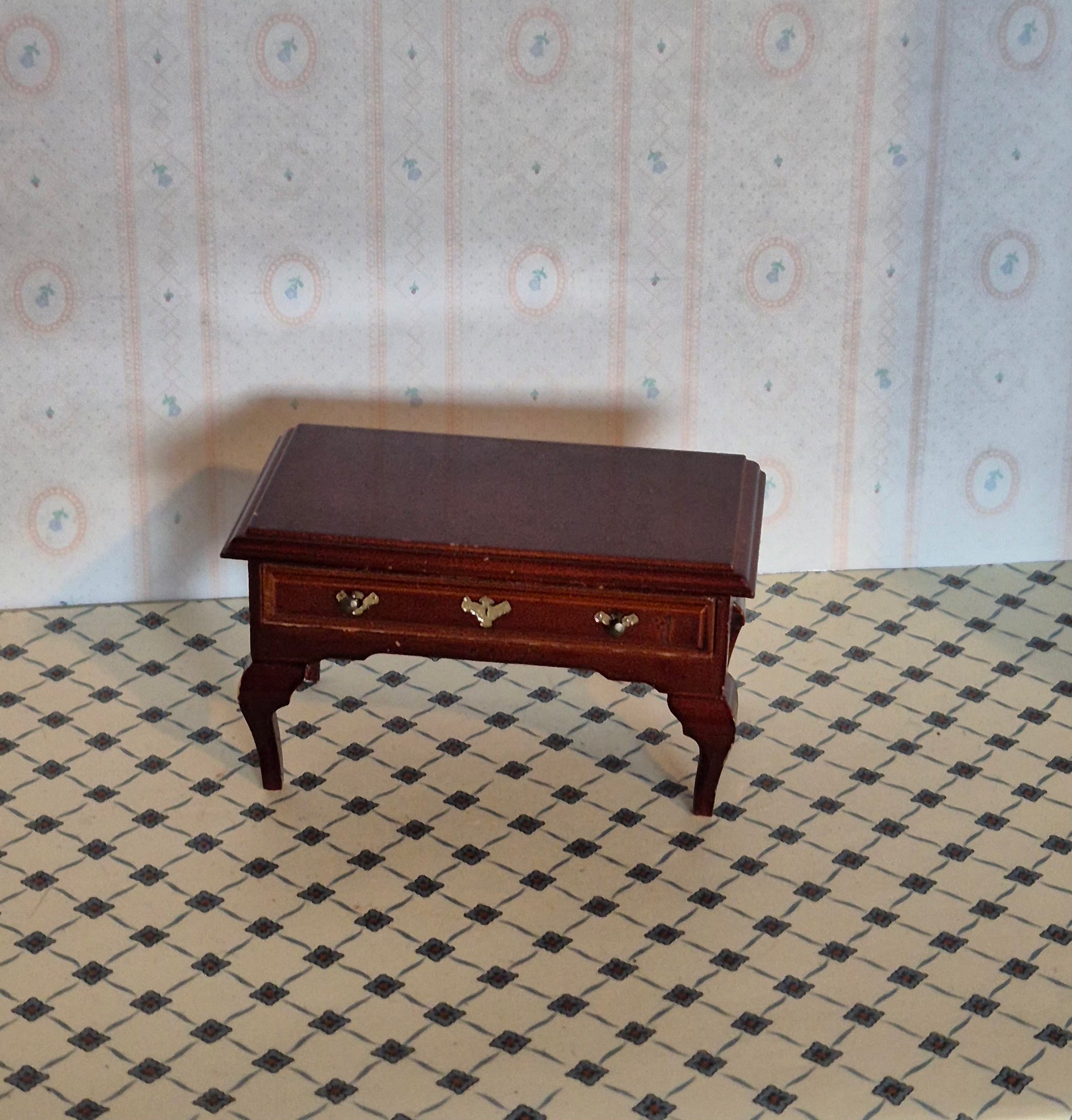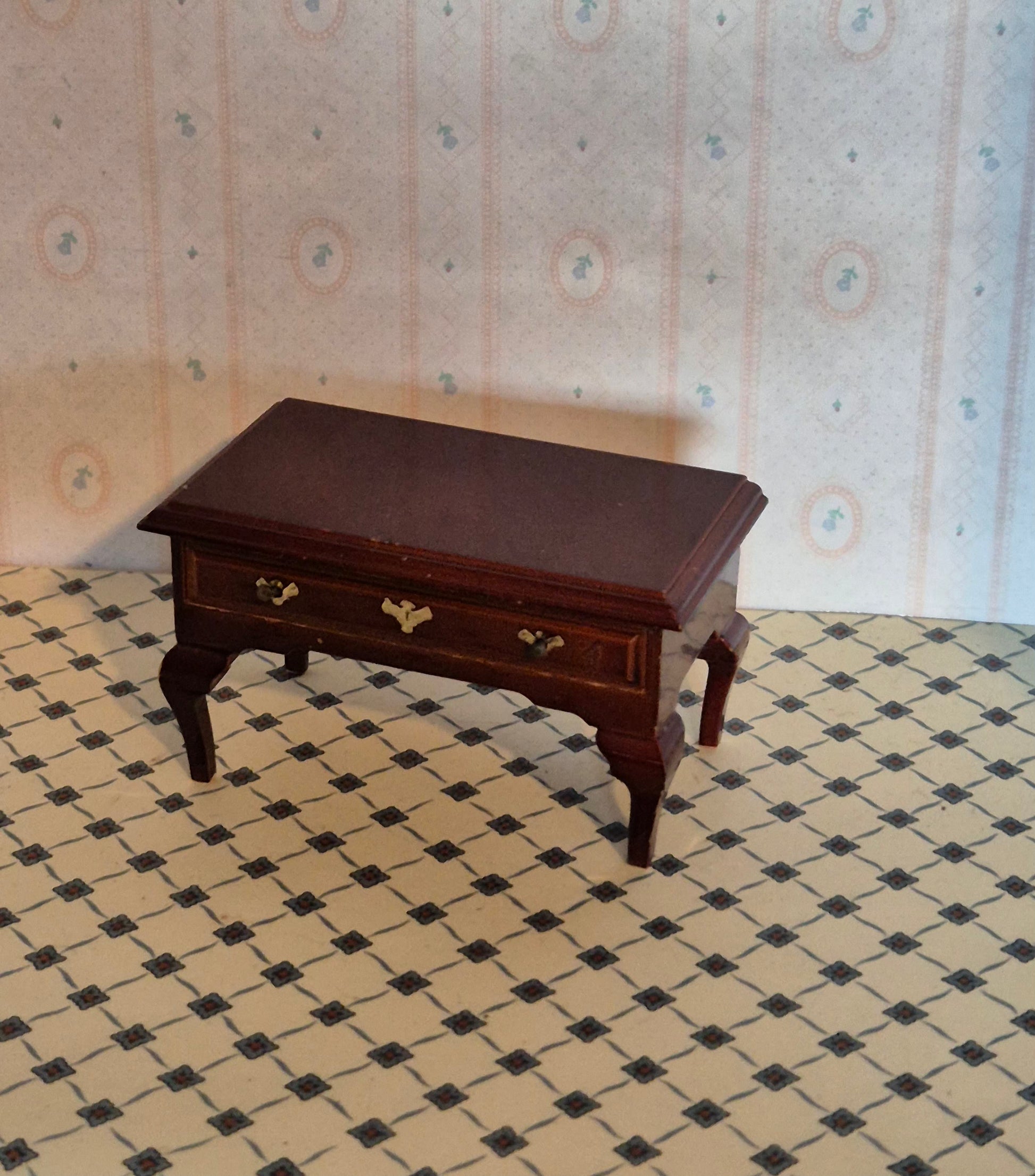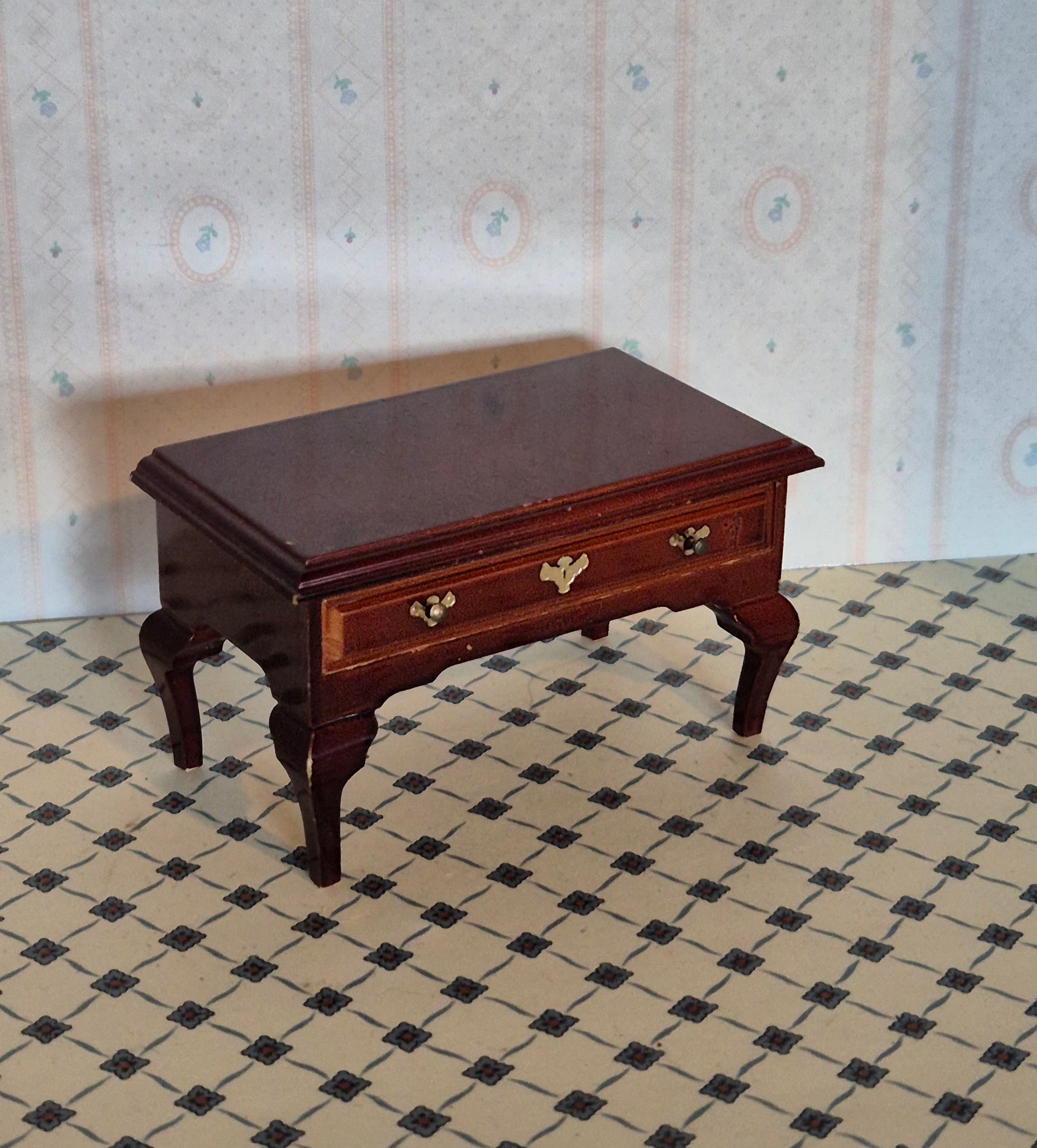 Pæn kommode af mørkebrunt træ med en skuffe. Udmærket stand. Kan bruges til flere størrelser fx 1:18, 1:16, 1:14 og 1:12, da den er ca 3,3 cm høj.