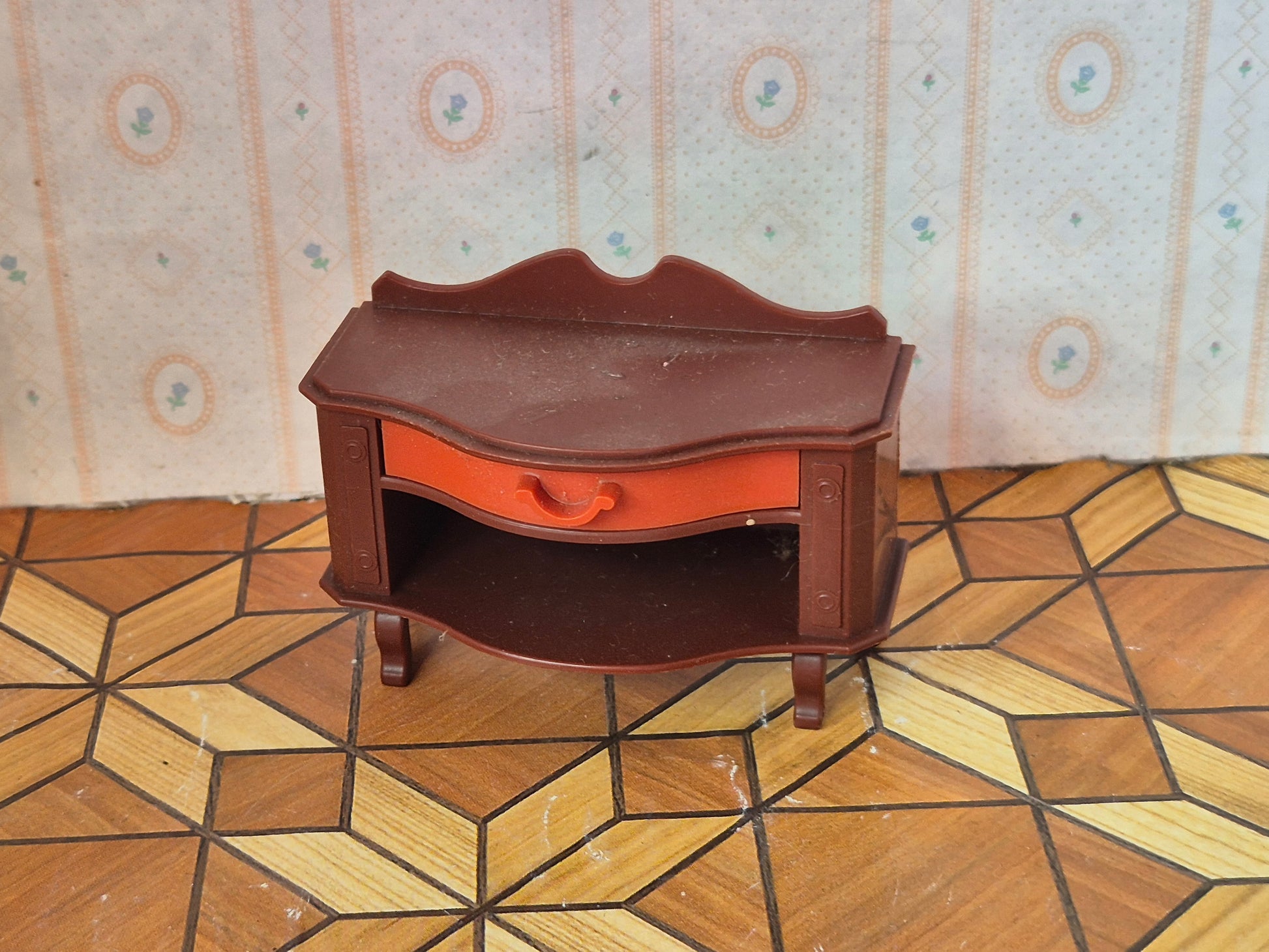 Brun plast kommode med skuffe af mærket Jean West Germany.