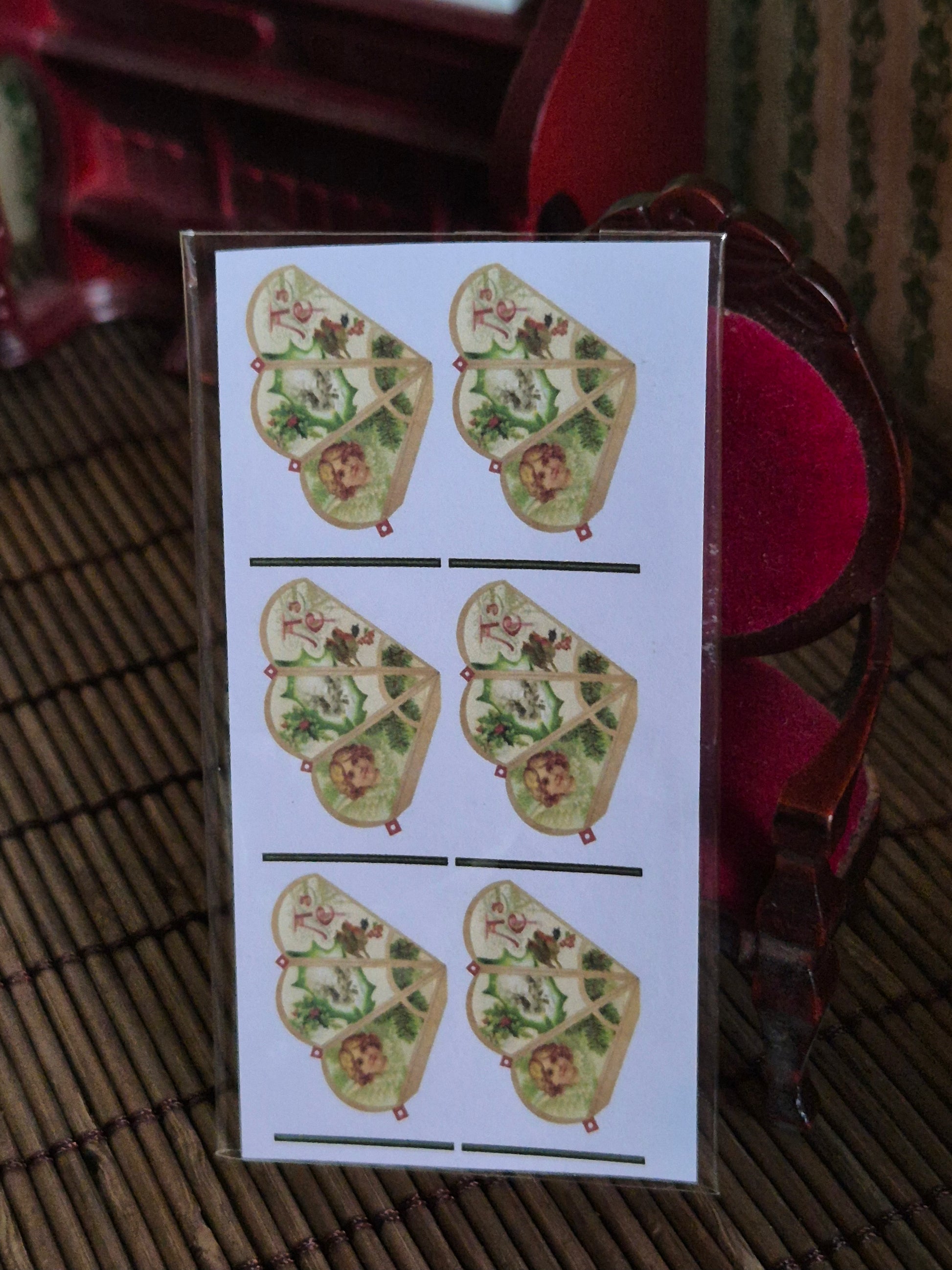 Fint ark med 6 pæne kræmmerhuse i str 1:12 til udklip. Kan sikkert bruges til andre størrelser også.
