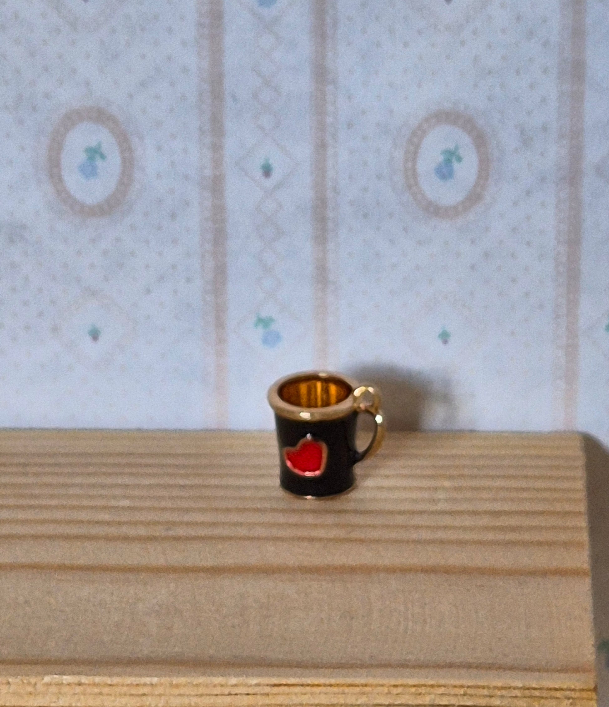 Pænt sort metal krus. God stand. Den er ca 1 cm høj.
