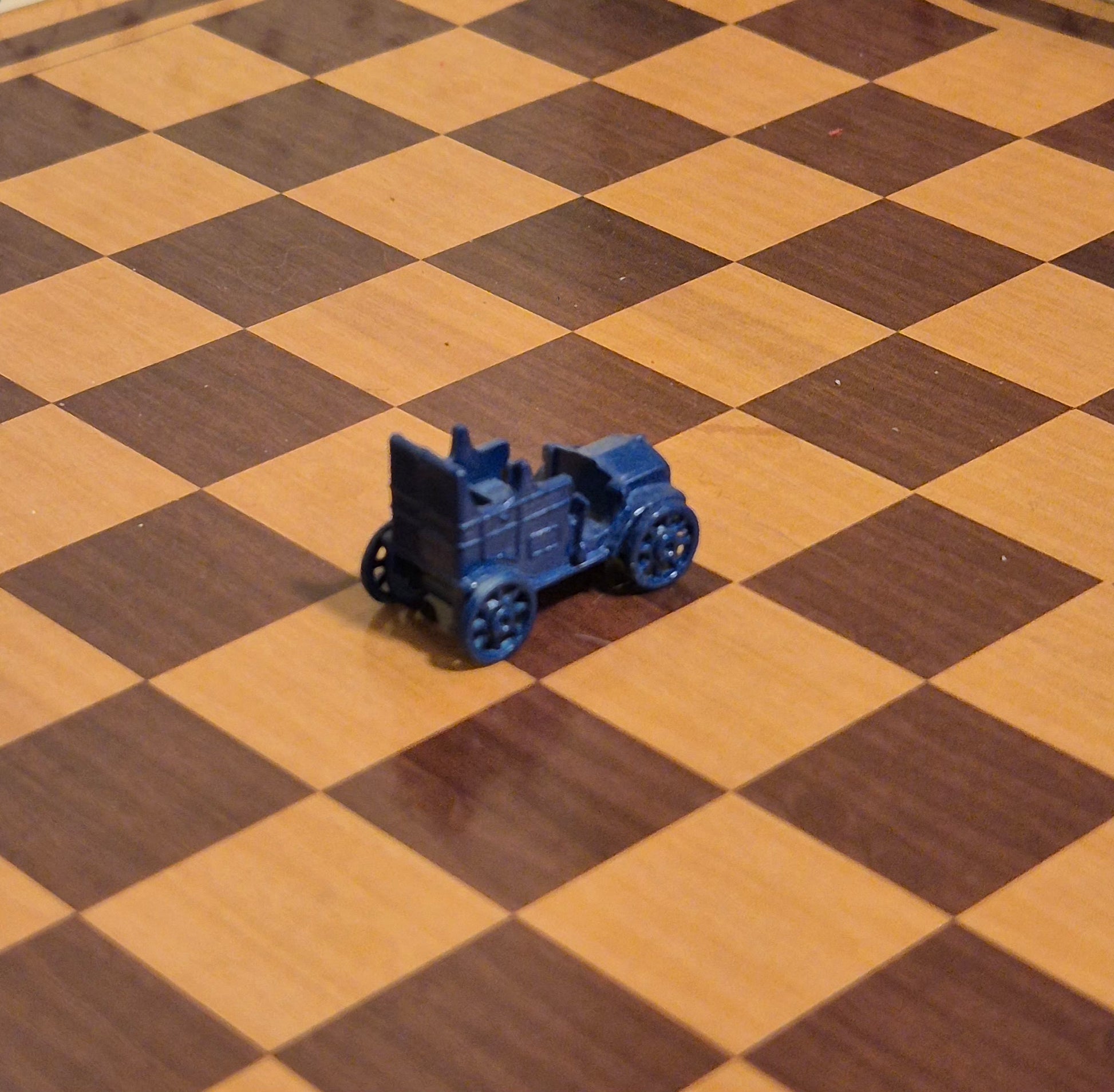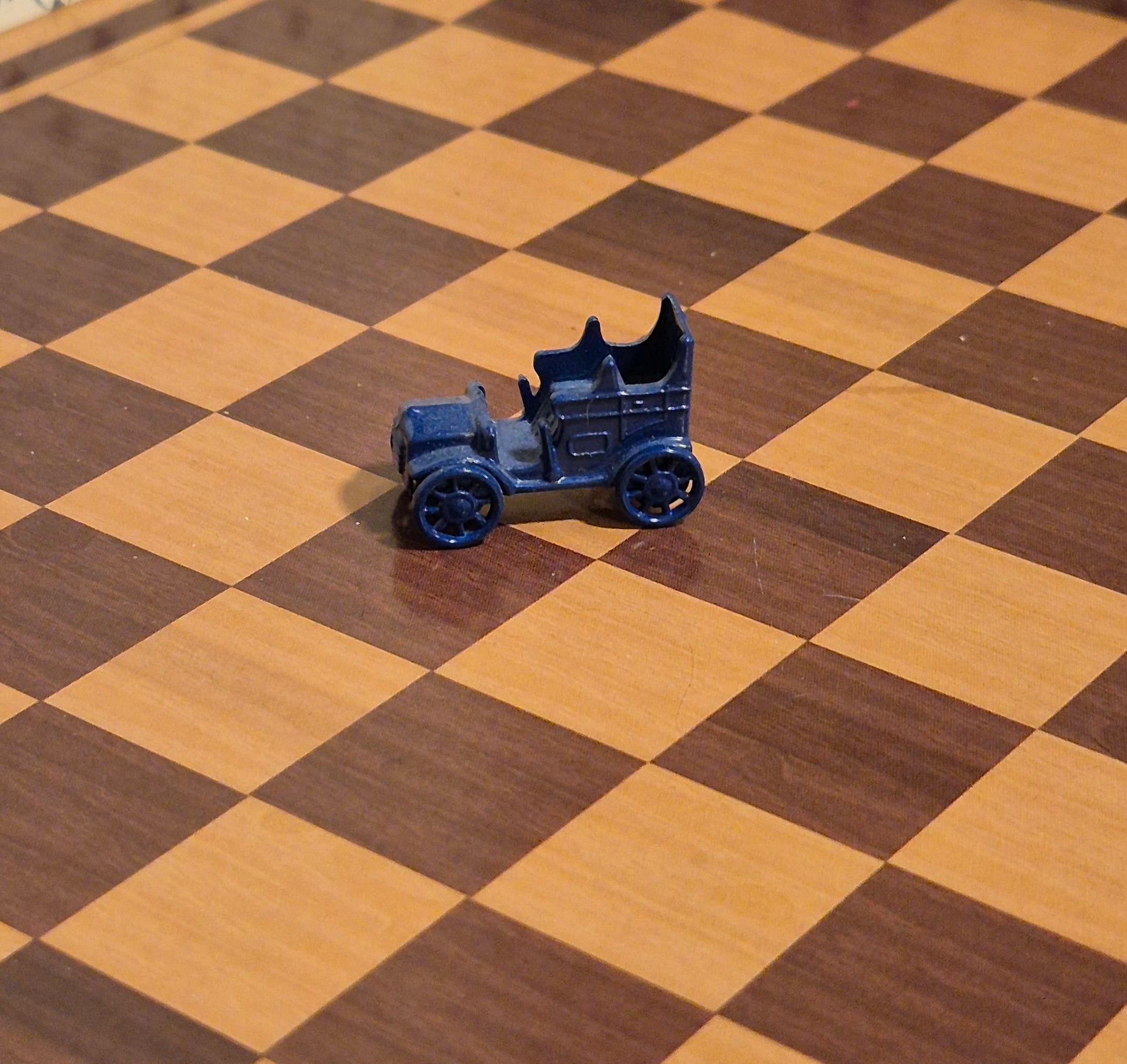 Pæn blå legetøjsbil af metal, den er ca 1,2 cm lang.