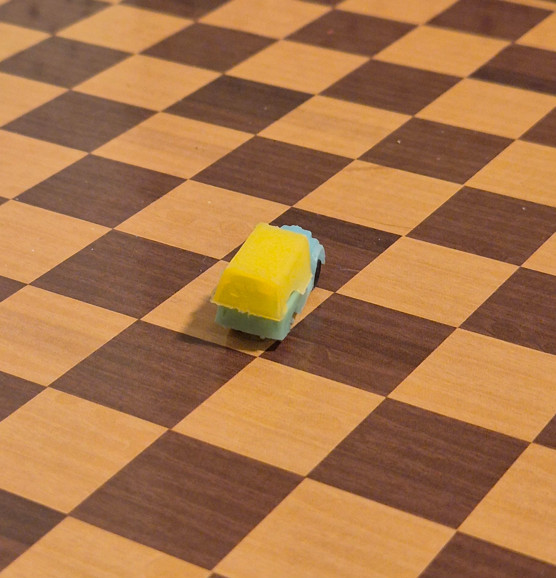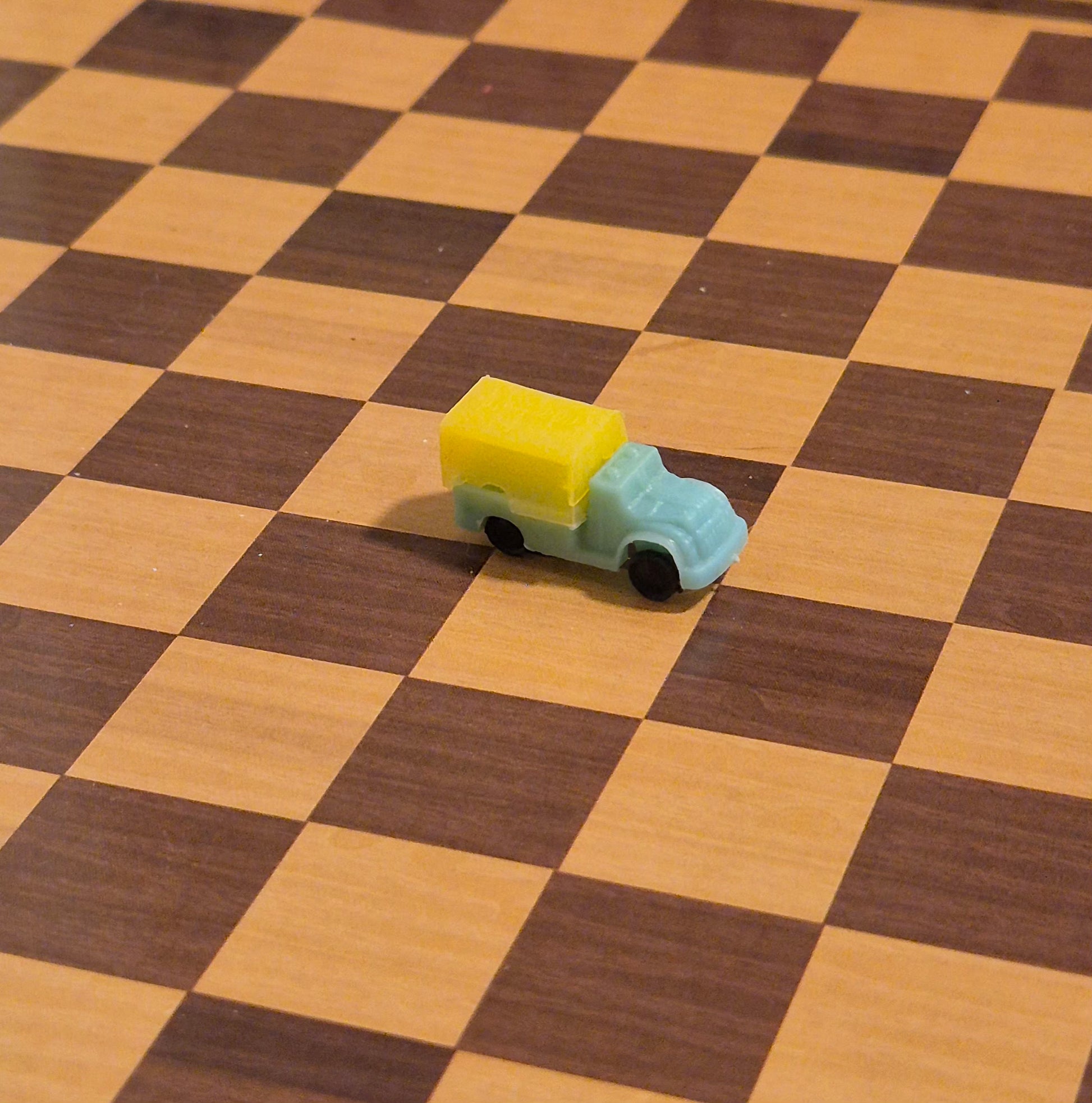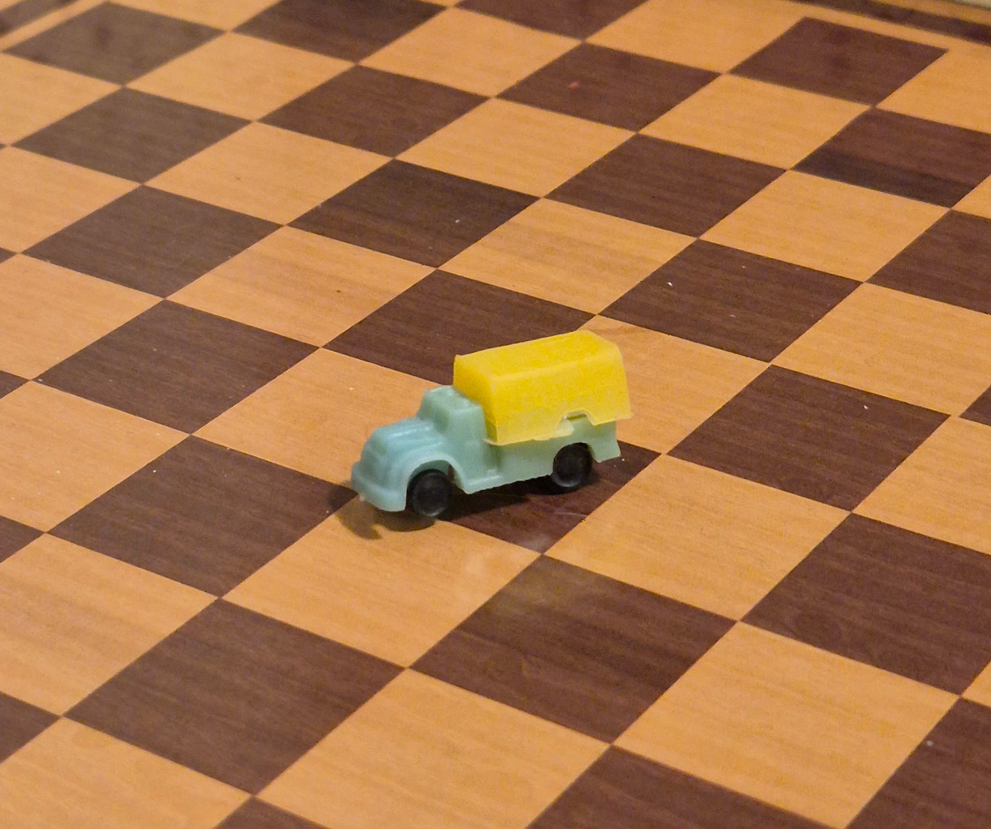 Retro legetøjsbil af plast. Den er ca 1,2 cm lang