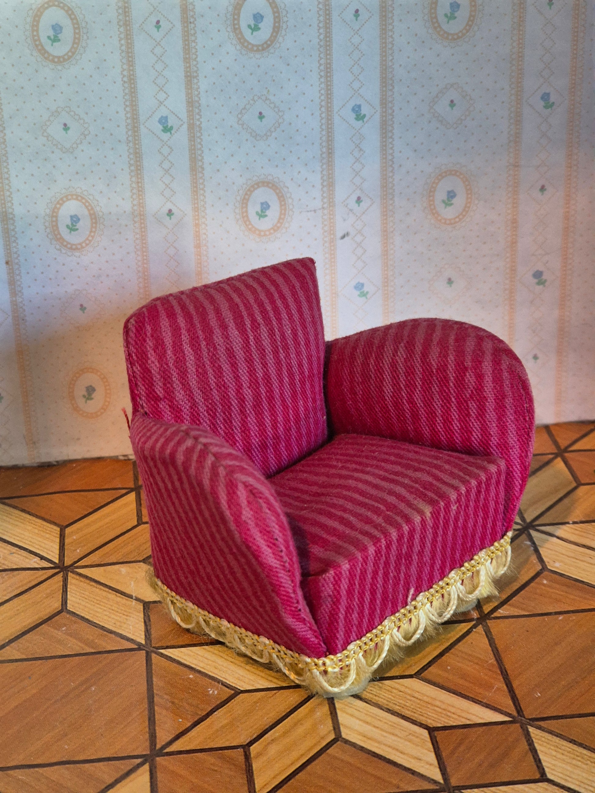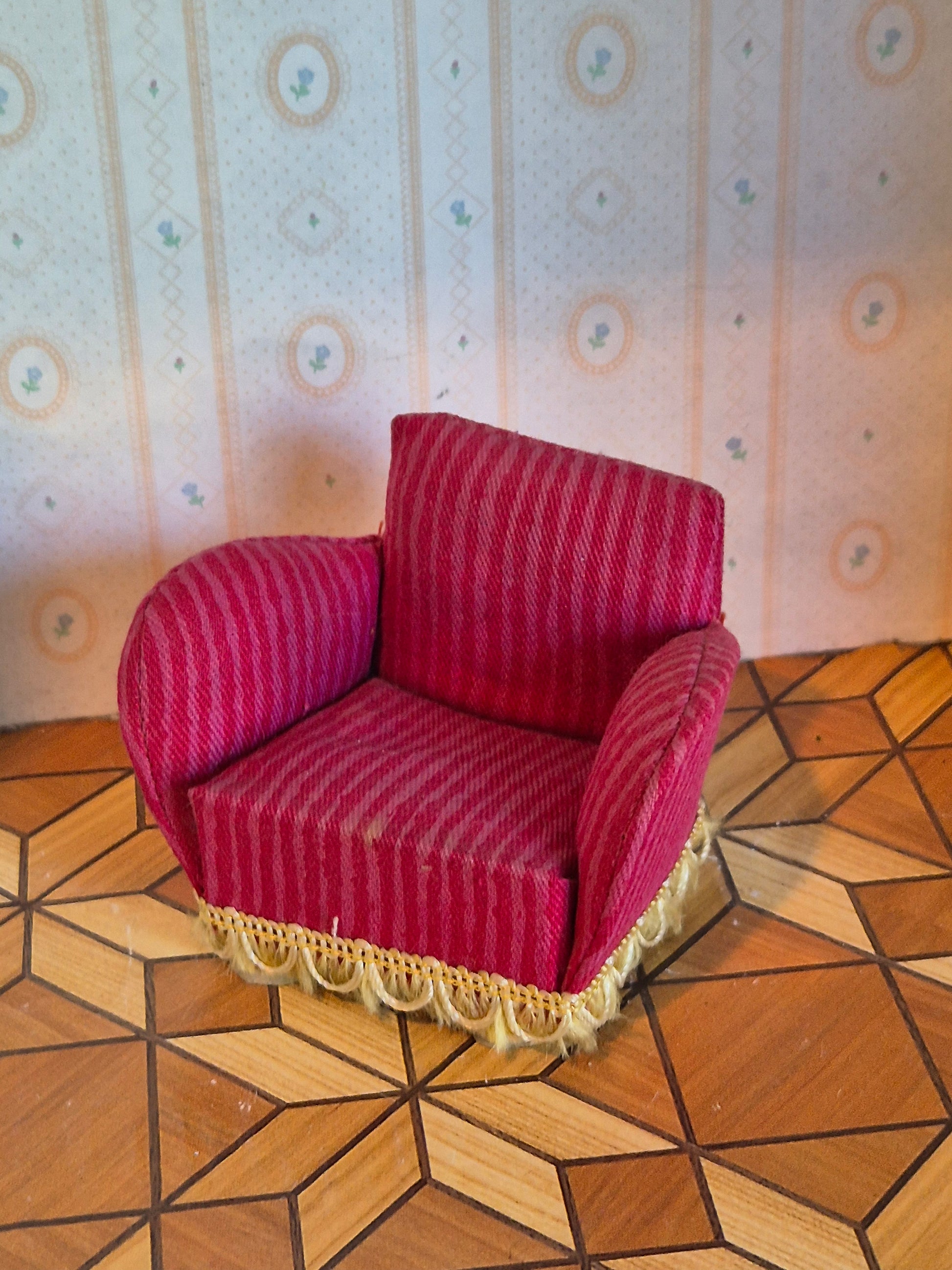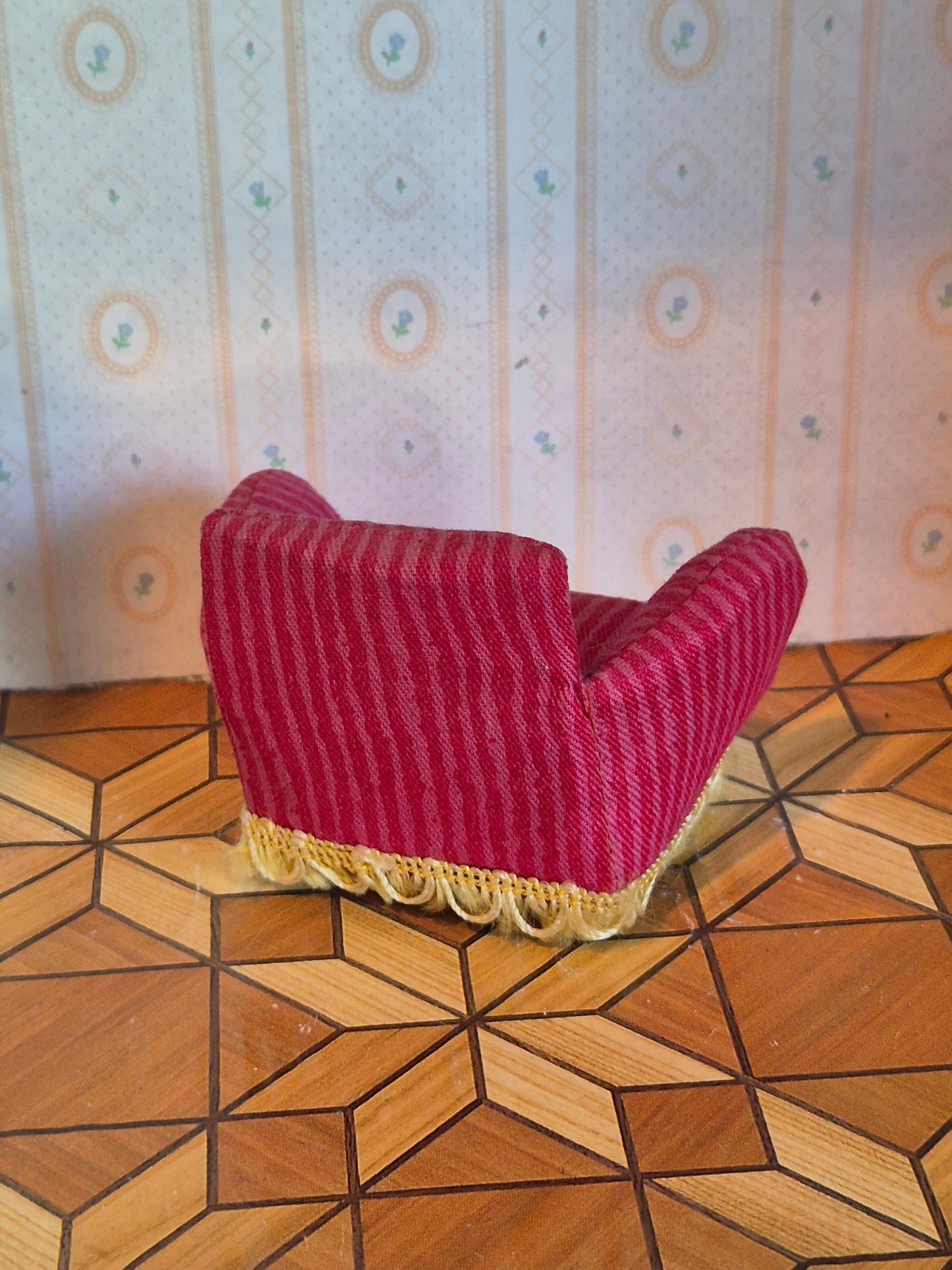 Fin ældre vintage Lerro lænestol i pink med striber. Udmærket stand